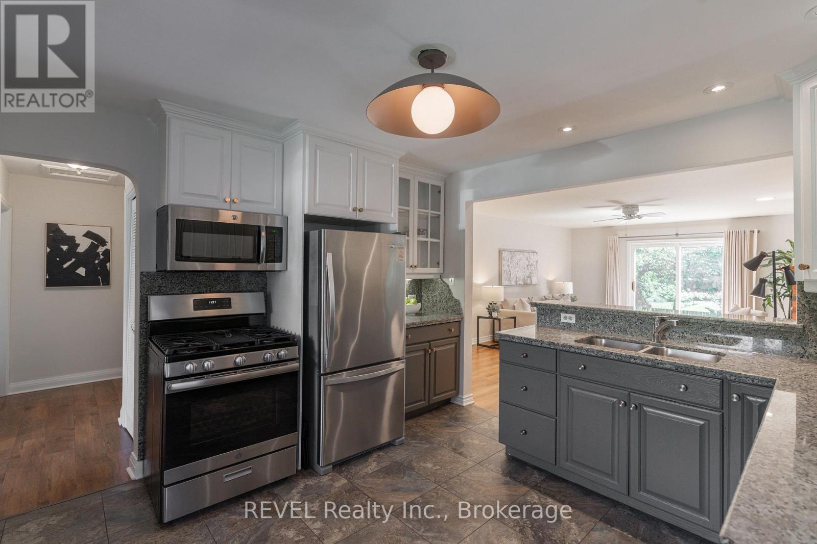 Amazing bungalow with warm flooring throughout the main floor, large room sizes, and a massive lot with stunning private cultured gardens for you to enjoy! Imagine sipping your morning coffee, sun rising over your private tall cedar lined property line, birds chirping, quiet, peaceful. That's what you get with this special property with extremely deep lot in the heart of Old Town. Two bedrooms on the main floor nicely separated for privacy with the main bath across from the primary bedroom. Separate step in shower and jacuzzi tub. So much natural light! This home is incredibly warm and inviting. Lovely updated kitchen with new built in dishwasher and professionally refinished cabinetry (2023.) The living room is large on the front of the home and the family room is on the back with an amazing brick hearth and natural gas fireplace as well as large sliding glass doors to the new composite deck (2025.) Side entry recently updated with composite deck as well (2025.) Furnace and AC replaced in 2022. The lower level has tons of space for you and/or the kids as a family room and the added lower level with basement walkout is massive and has so much potential to be an exercise room, family room, games room, bedroom, or even a small business area! There could be fantastic potential to live upstairs and use the 2nd lower level for your home based business (due diligence to be done by purchaser to ensure the zoning permits desired usage.) The grounds have been professionally groomed and cultured and they are very private. The garage is quite large with plenty of space for a workshop and storage. This bungalow is super cute and walking distance from the entertainment area, restaurants, golf, Shaw Theatre and so much more. You most definitely will not be disappointed! (id:64974)