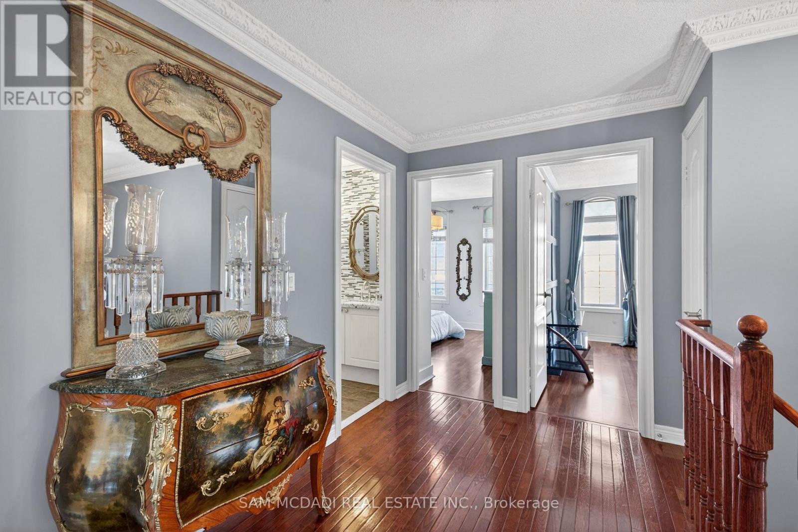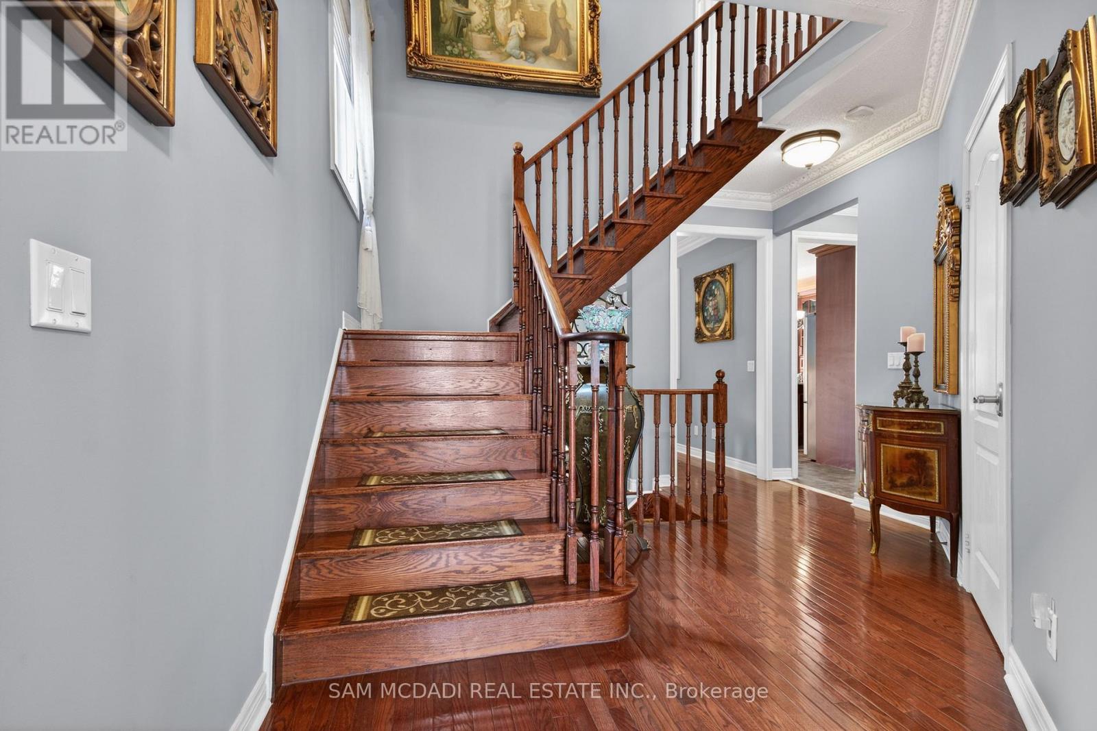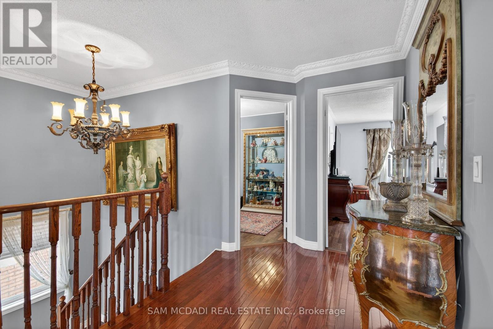 Welcome to one of the most private and beautifully maintained homes in Churchill Meadows. Set on a premium lot backing directly onto mature forested greenspace, this 4-bedroom, 4-bathdetached residence offers over 3000 sq ft of living space including a fully finished lower level designed for both comfort and entertaining. From the moment you step inside, the pride of ownership is unmistakable. Rich hardwood floors, crown moulding, pot lights and thoughtful upgrades throughout create a home that feels refined yet warm. The custom kitchen features granite counters, tile backsplash, stainless steel appliances and walkout access to a composite deck complete with a full retractable awning - the perfect space for summer dinners, weekend BBQs, and quiet evenings overlooking the treed backdrop. The cathedral-ceiling family room with gas fireplace and oversized picture windows fills the home with natural light while framing the private backyard views. Upstairs, four generous bedrooms offer space for a growing family, including a primary retreat with walk-in closet and 5-piece ensuite. The finished basement feels anything but below grade thanks to the luxurious finishes, extended windows, a 3-piece bath and ample space for recreation, fitness or media enjoyment. The professionally finished 2-car garage with tiled floor and paneled walls adds both function and polish - ideal for vehicles, storage, or a clean workshop setup. Located steps to parks, schools and transit in one of Mississauga's most sought-after family communities. This is one to see in person. (id:64974)