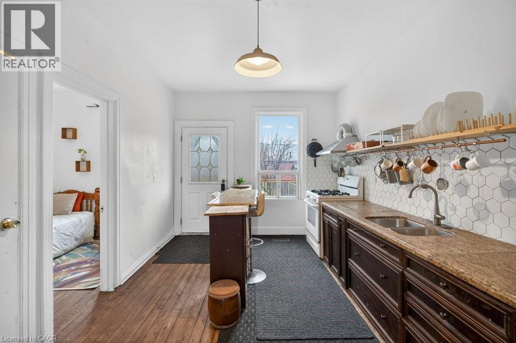 Are you looking to live in the bayfront community and be close to downtown shop and amenities? With Burlington Street access to the highways, bike lanes, loads of places to eat and great recreation? This brick 2 1/2 story home built in 1900 is impressive in size and stature, and is loaded with mindful upgrades and dripping with character. The unique main floor level features open concept, living dining with original pocket doors, and a unique main floor powder room and bedroom. The kitchen exits to a large backyard well over standard depth with an updated composite deck. The bedroom level features three large rooms and an oversized four piece bath, with an attic accommodating two additional bedrooms. You can’t replicate a butler staircase, or the fruit bearing orchard that they call a backyard here. Original hardwood floors have been hand sanded to maintain integrity. (id:64974)