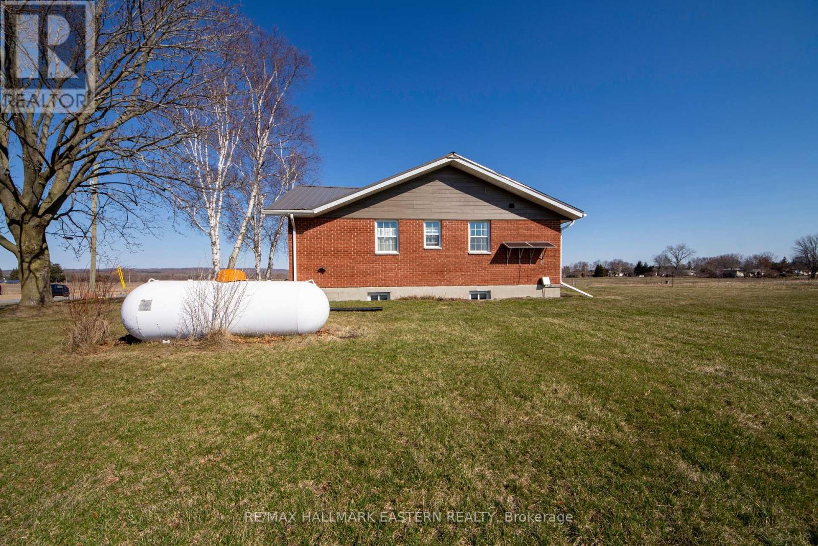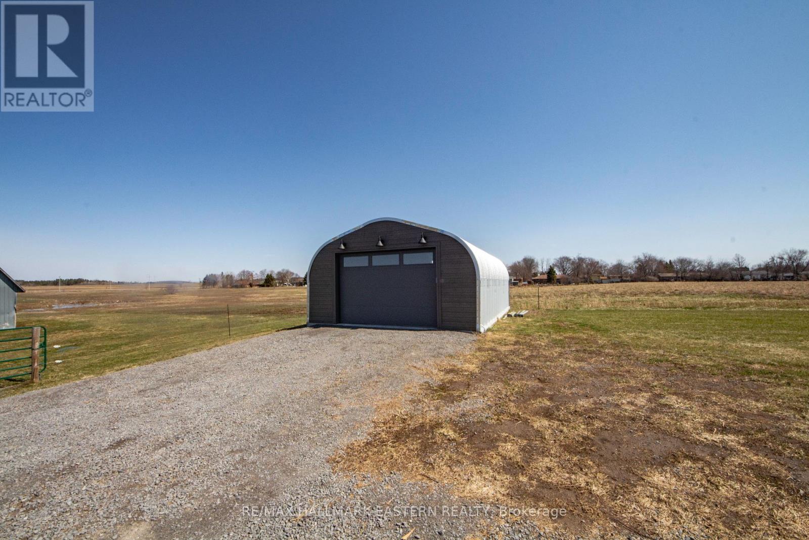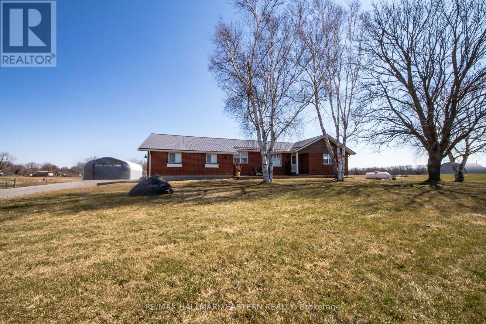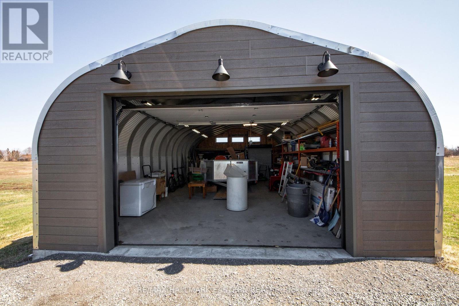 This well-maintained 4 bedroom, 4 bathroom bungalow sits on a private 1.1 acre lot surrounded by farmland, offering beautiful sunset views and just 6 minutes to downtown Trenton. The main level features a spacious kitchen with propane fireplace and walk-out to the rear deck, a primary bedroom with ensuite, and convenient main floor laundry. Large windows fill the home with natural light throughout. The fully finished basement includes a rec room with wet bar, providing great additional living space. Outside offers front and rear decks, a 20' x 30' Quonset hut for storage or workspace, and a backup sump pump connected to solar panels for added peace of mind. The home is complete with a durable metal roof and an attached double car garage for convenience. Enjoy the best of country living with easy access to town amenities. (id:64974)