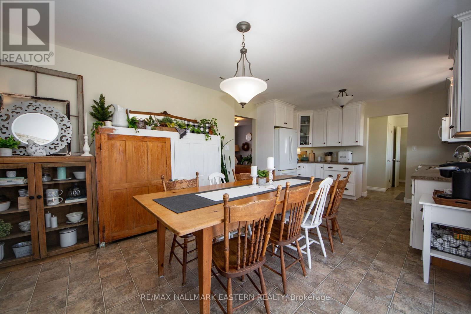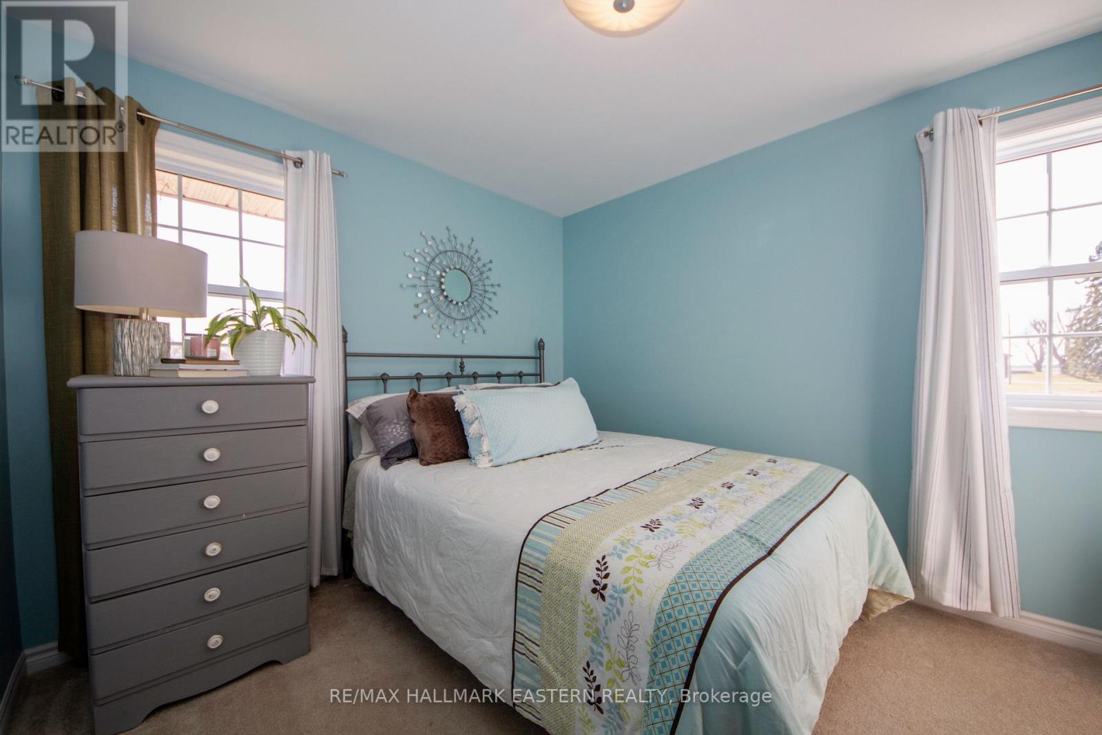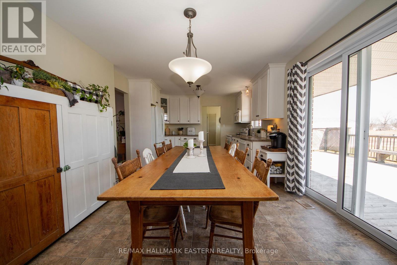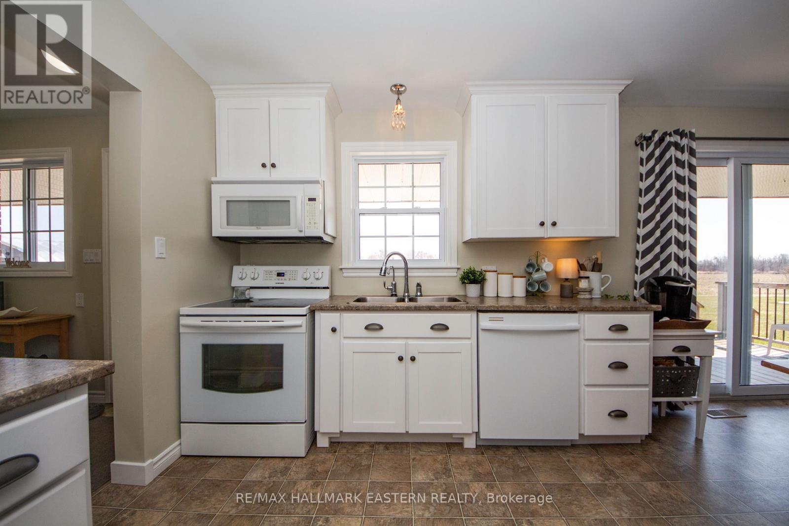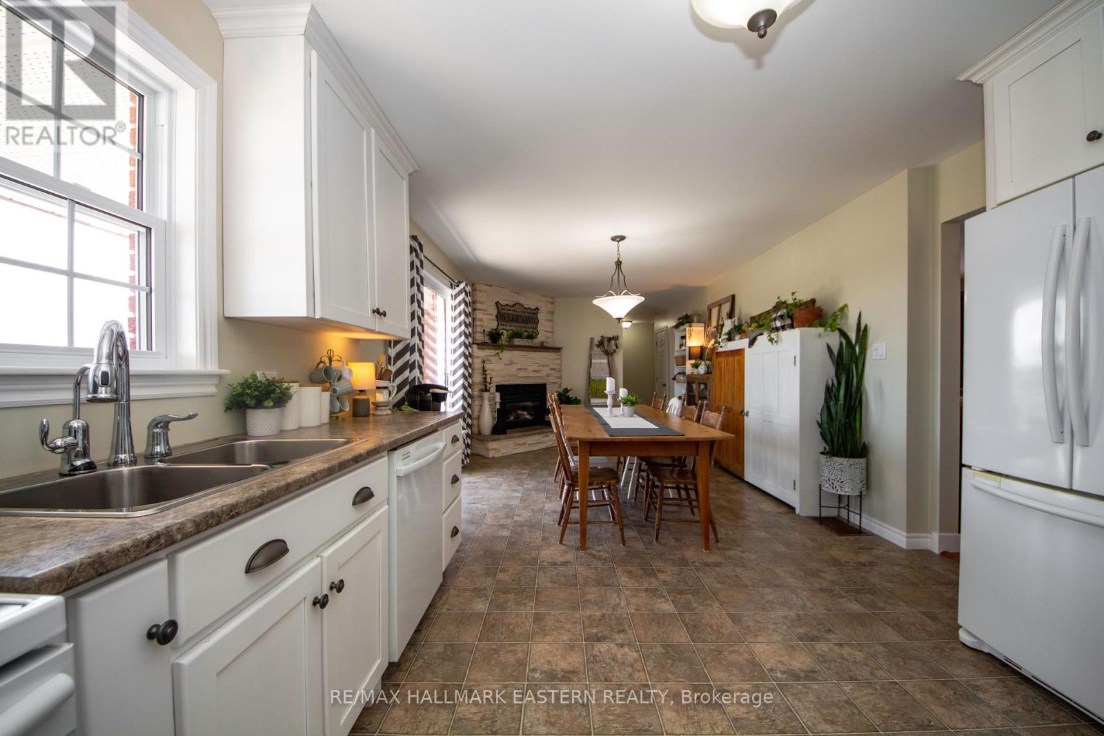 This well-maintained 4 bedroom, 4 bathroom bungalow sits on a private 1.1 acre lot surrounded by farmland, offering beautiful sunset views and just 6 minutes to downtown Trenton. The main level features a spacious kitchen with propane fireplace and walk-out to the rear deck, a primary bedroom with ensuite, and convenient main floor laundry. Large windows fill the home with natural light throughout. The fully finished basement includes a rec room with wet bar, providing great additional living space. Outside offers front and rear decks, a 20' x 30' Quonset hut for storage or workspace, and a backup sump pump connected to solar panels for added peace of mind. The home is complete with a durable metal roof and an attached double car garage for convenience. Enjoy the best of country living with easy access to town amenities. (id:64974)