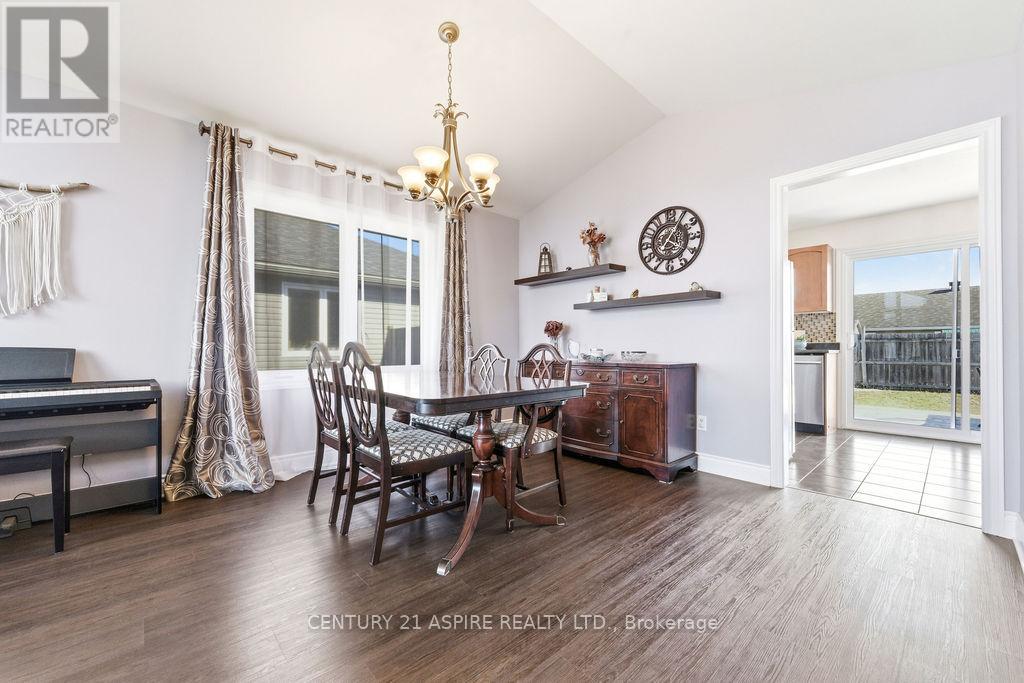 Nestled on one of the quietest crescents in the neighborhood, this beautiful bungalow offers a peaceful setting perfect for families-where kids can safely enjoy street hockey or bike rides just outside your door. The main level features updated laminate flooring (2020) throughout the main living areas, complemented by soaring cathedral ceilings, updated light fixtures, and an abundance of natural light streaming through large windows. Three generously sized bedrooms are located on the main floor, including a spacious primary suite with his-and-hers closets. The bright kitchen showcases classic cabinetry, a custom backsplash, and a window overlooking the fully fenced backyard. An adjoining eat-in area with a brand new patio door (2025) leads to a deck and BBQ space-ideal for entertaining or relaxing outdoors. Convenience meets functionality with main floor laundry and direct access to the garage through a mudroom. The fully finished lower level expands your living space with a large recreation room featuring a cozy gas fireplace, a fourth bedroom, and a full four-piece bathroom-perfect for guests seeking privacy. Basement carpet was replaced in 2019 for added comfort. Thoughtfully designed with ample storage throughout, this home is as practical as it is inviting. Please note: All offers require 24-hour irrevocable. (id:64974)