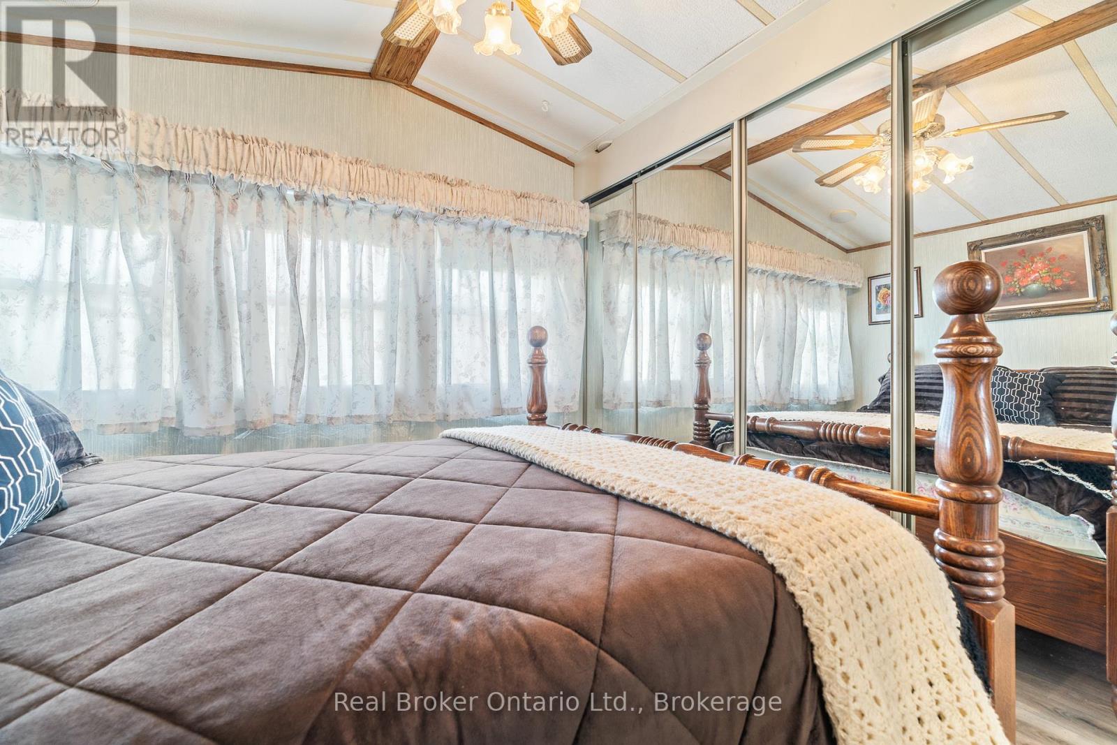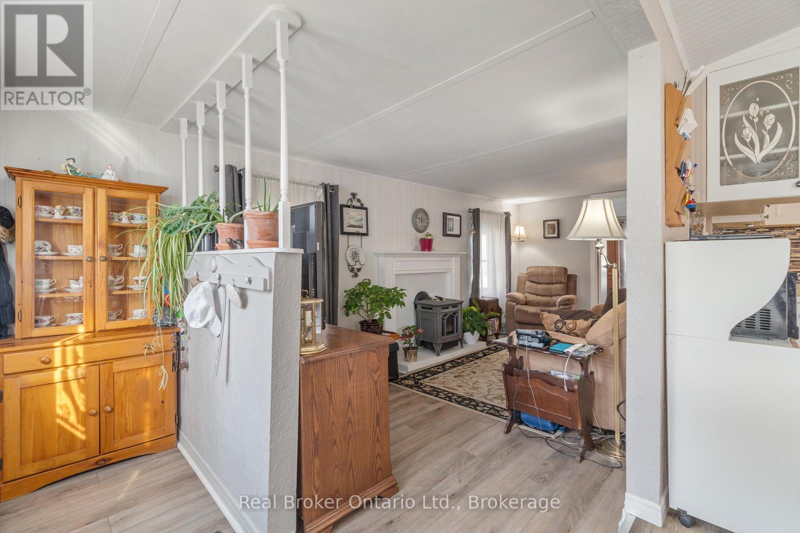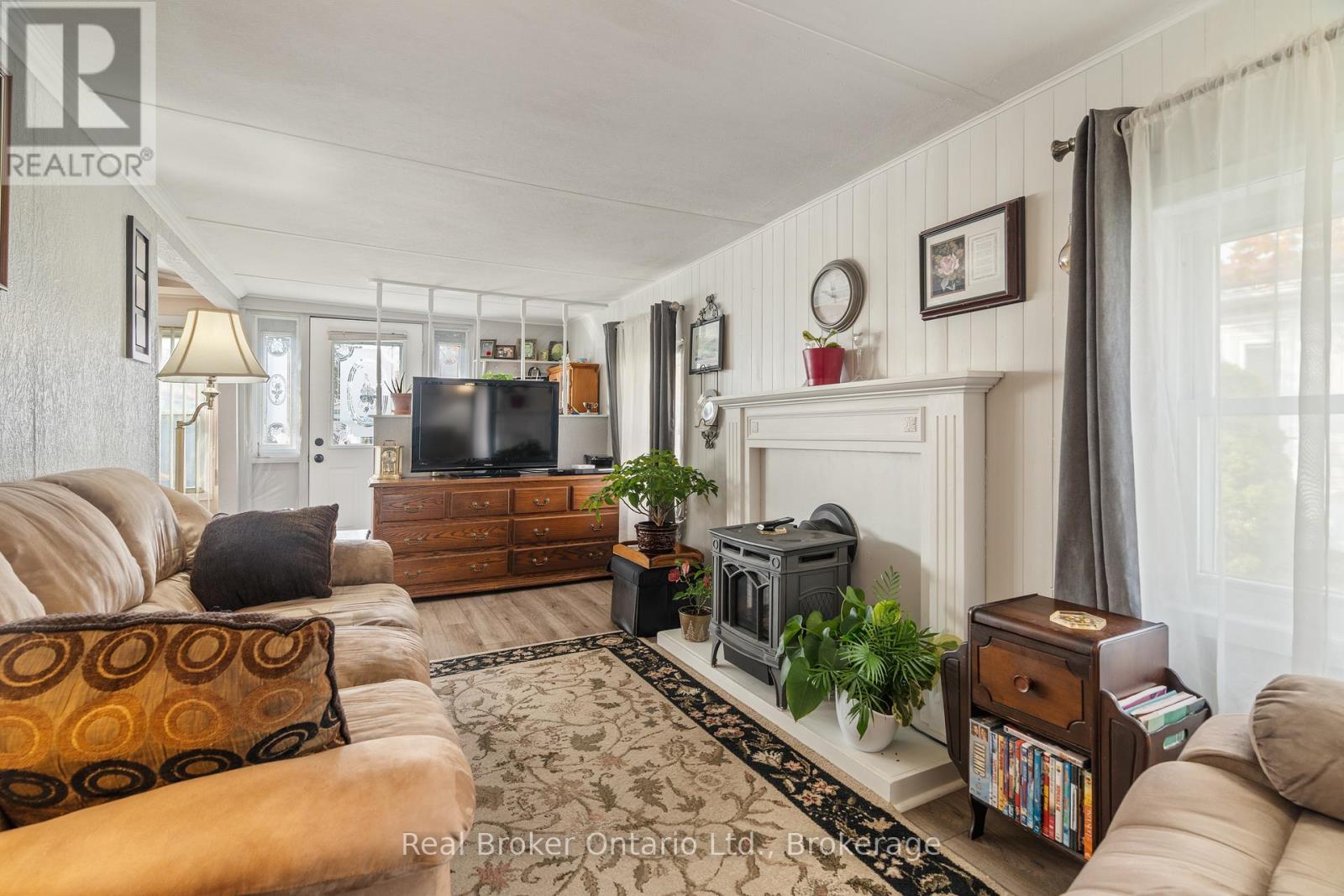 Nestled in the all-season section of Maple Leaf Acres Park, this cozy 2-bedroom, 1-bathroom residence offers a peaceful lifestyle with year-round park amenities. Step inside to find a welcoming living area with a beautiful fireplace and a kitchen updated with fresh flooring in 2024, pairing beautifully with recent flooring throughout the home (last 5 years) to create a modern yet inviting ambiance. The bathroom features a lovely skylight, filling the space with natural light and enhancing your daily routine. Both bedrooms provide comfort and tranquility, with thoughtful details like bright windows (replaced within the last 10 years) and ample closet space. Outside, the property includes a versatile shed equipped with hydro, ideal for storage or a workspace. Enjoy year-round efficiency with rental propane tanks, with the sellers 2023 propane costs totaling $1,260. The homes 2014 roof and additional features, such as a remote-controlled fireplace, reflect careful upkeep and comfort. Maple Leaf Acres offers two recreational centers, an outdoor swimming pool, a gated playground, and a sports field. Residents enjoy access to an indoor pool, hot tub, baseball diamond, and a take-out restaurant. The park provides lovely walking trails, a community garden, and even a boat launch onto Belwood Lake. Electric golf carts are permitted, making it easy to explore the grounds. Roads and common areas are maintained year-round, with active participation in local recycling programs. Surrounded by a close-knit community, this property offers easy access to the park's extensive amenities perfect for relaxed, all-season living. (id:64974)