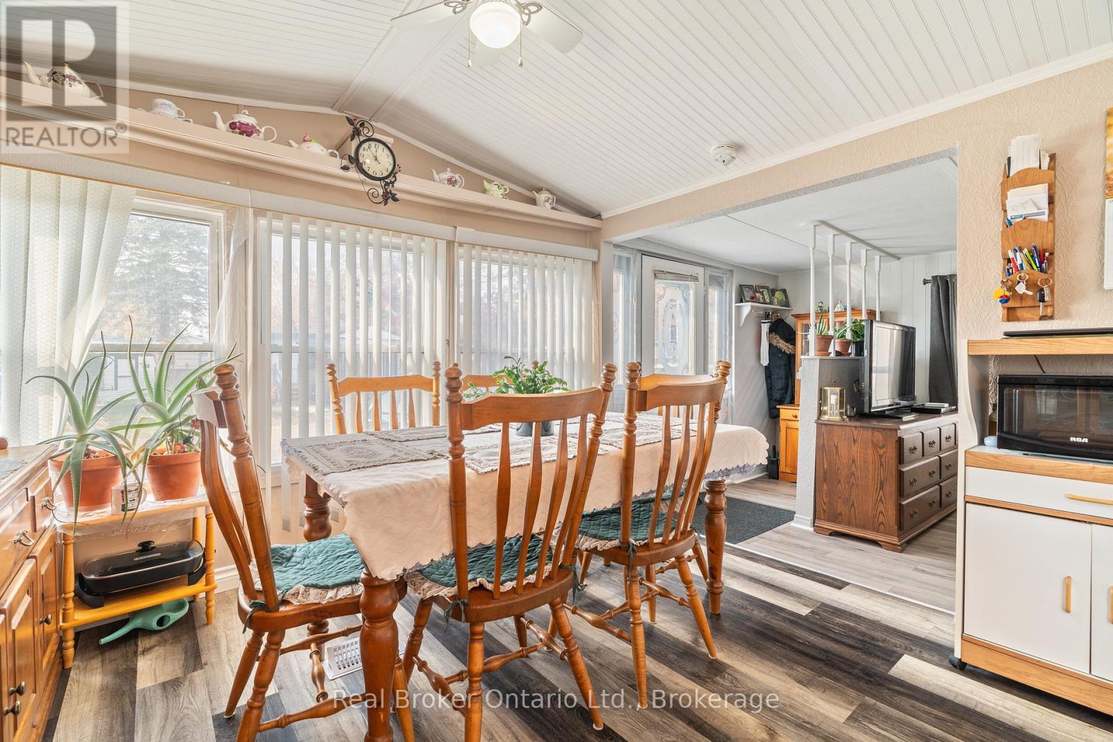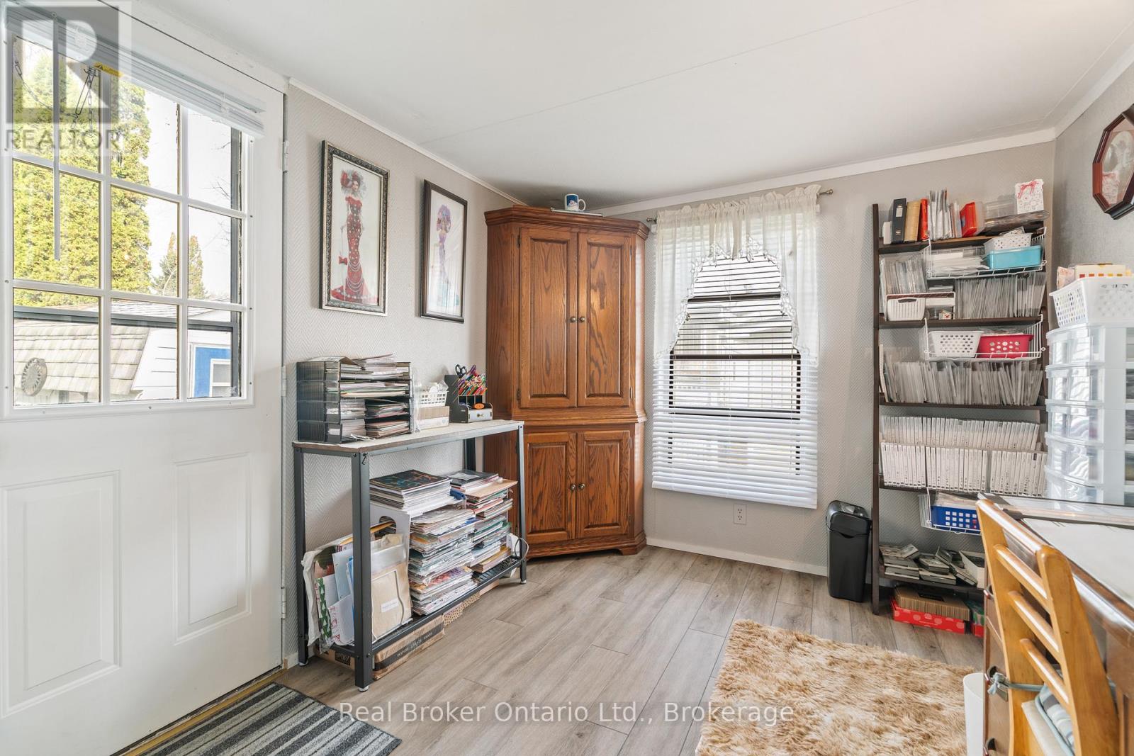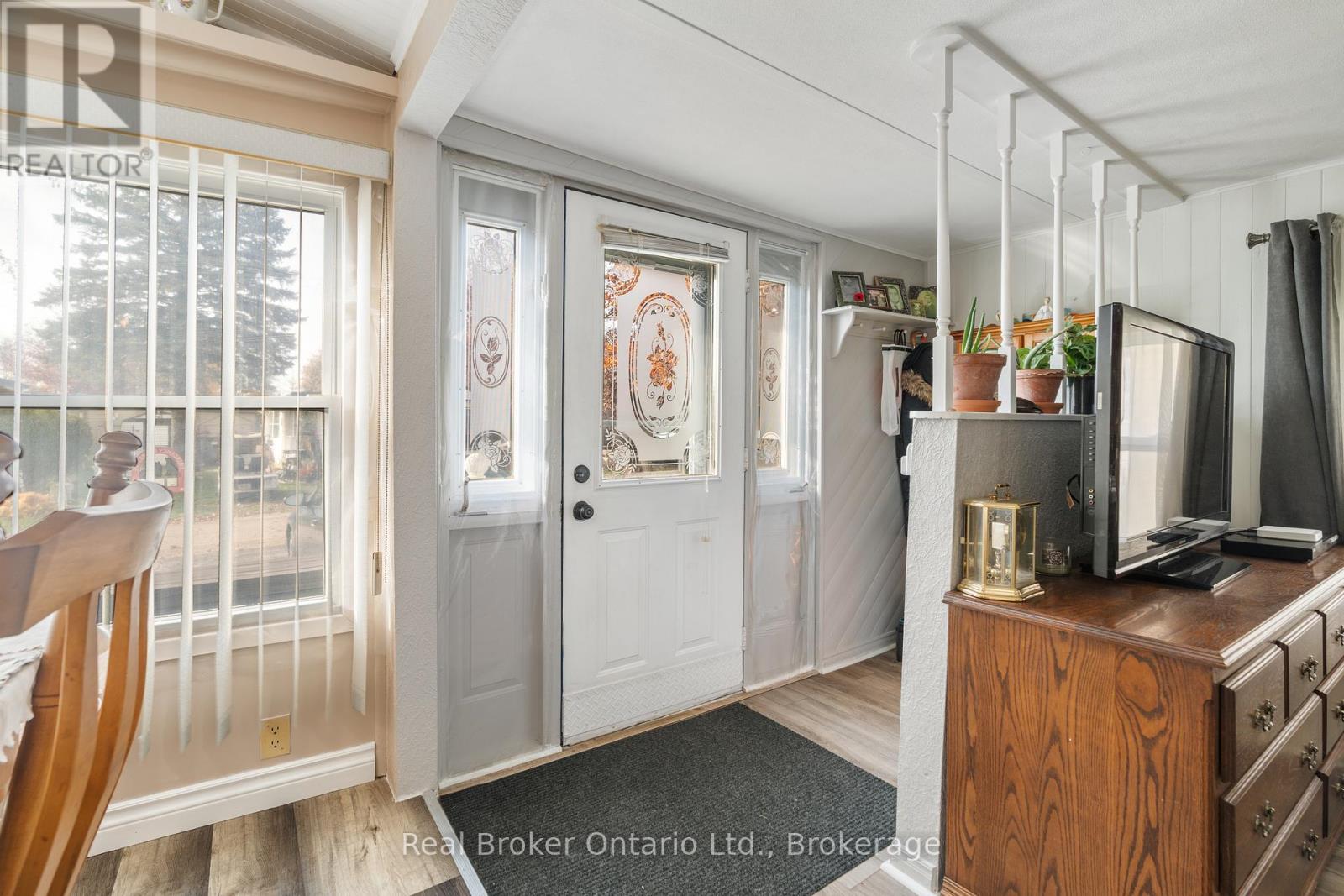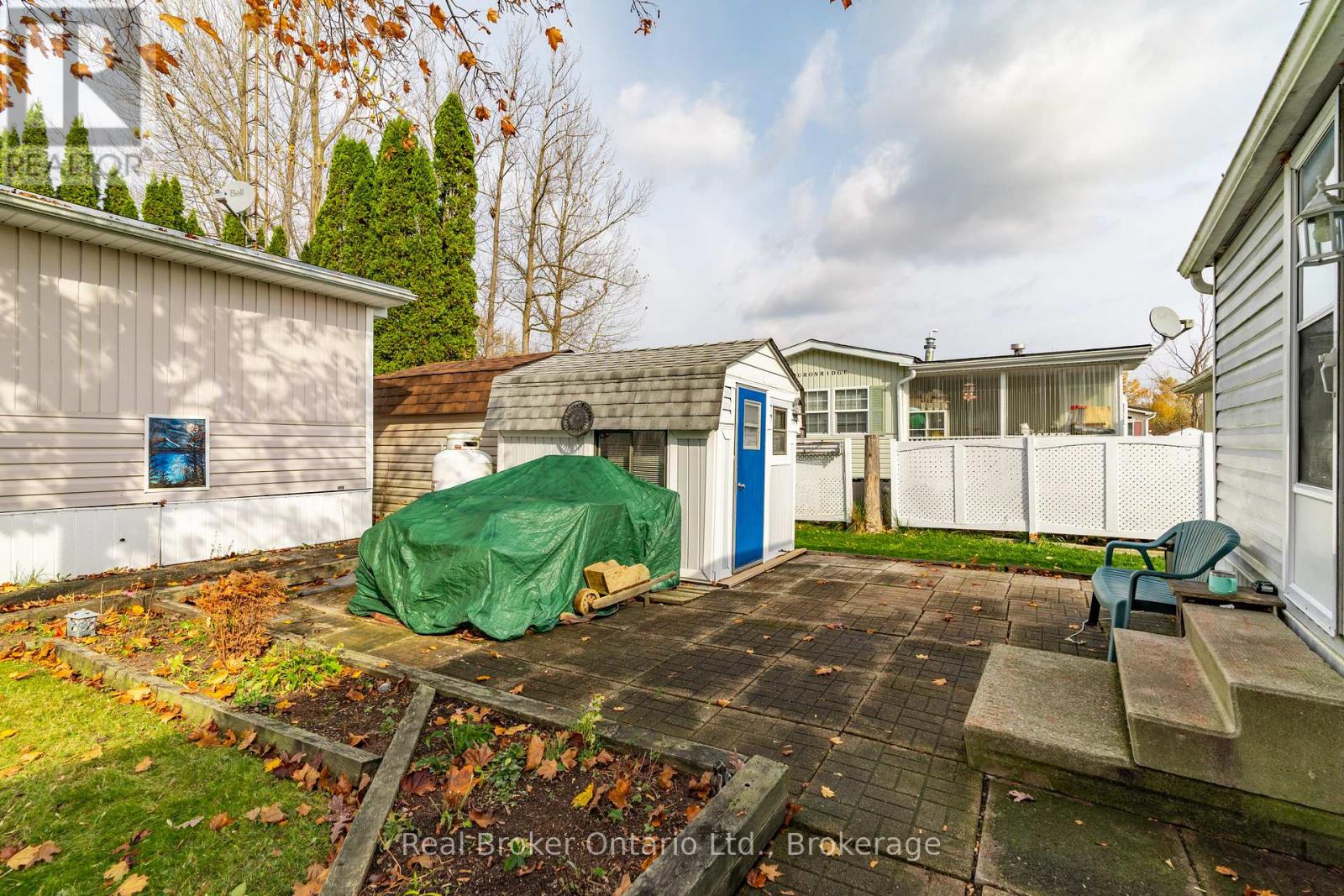 Nestled in the all-season section of Maple Leaf Acres Park, this cozy 2-bedroom, 1-bathroom residence offers a peaceful lifestyle with year-round park amenities. Step inside to find a welcoming living area with a beautiful fireplace and a kitchen updated with fresh flooring in 2024, pairing beautifully with recent flooring throughout the home (last 5 years) to create a modern yet inviting ambiance. The bathroom features a lovely skylight, filling the space with natural light and enhancing your daily routine. Both bedrooms provide comfort and tranquility, with thoughtful details like bright windows (replaced within the last 10 years) and ample closet space. Outside, the property includes a versatile shed equipped with hydro, ideal for storage or a workspace. Enjoy year-round efficiency with rental propane tanks, with the sellers 2023 propane costs totaling $1,260. The homes 2014 roof and additional features, such as a remote-controlled fireplace, reflect careful upkeep and comfort. Maple Leaf Acres offers two recreational centers, an outdoor swimming pool, a gated playground, and a sports field. Residents enjoy access to an indoor pool, hot tub, baseball diamond, and a take-out restaurant. The park provides lovely walking trails, a community garden, and even a boat launch onto Belwood Lake. Electric golf carts are permitted, making it easy to explore the grounds. Roads and common areas are maintained year-round, with active participation in local recycling programs. Surrounded by a close-knit community, this property offers easy access to the park's extensive amenities perfect for relaxed, all-season living. (id:64974)