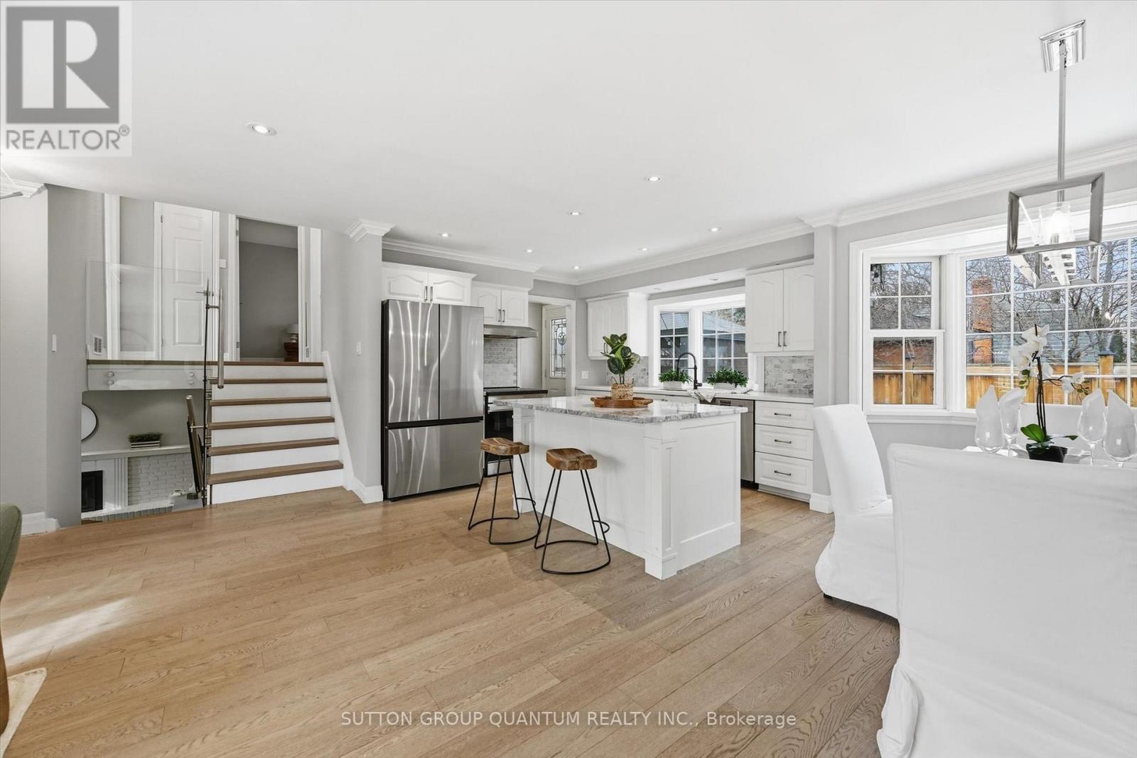 Finally! An open concept, completely renovated detached home in Elizabeth Gardens with a garage!! Which brings me to the top 7 reasons to buy this home: 1. Open concept renovated kitchen featuring timeless white cabinets, quartz counters, large eat-in island, matching backsplash, and s/s appliances. 2. Four total levels of space totalling over 2200 sqft 3. Quiet, family friendly location in Elizabeth gardens near parks, trails, only a 10 min walk down to the lake, and 8 min drive to the Appleby GO Train/QEW 4. Garage with 2 side by side driveway parking; no more juggling cars in the morning! 5. The essential 2 full bathrooms both renovated with new vanities, modern tile and light fixtures. 6. Large 65 by 115ft lot totally over 7400 sqft or .171 acres. 7. Move-in-ready condition with engineered hardwood, matching hardwood stairs, trendy glass railings, updated light fixtures and pot lights, california shutters, gas fireplace in huge lower-level family room, upgraded fencing (2019) around the whole back and side yard, large deck (2018) with pergola, roof replaced in 2018, upgraded light switches and polished nickel hardware, crown mouldings and upgraded window casings. The Seller is even offering a $5k credit on closing for landscaping improvements! But don't delay, these renovated open concept homes are very rare under 1.3m and may never be seen again! (id:64974)