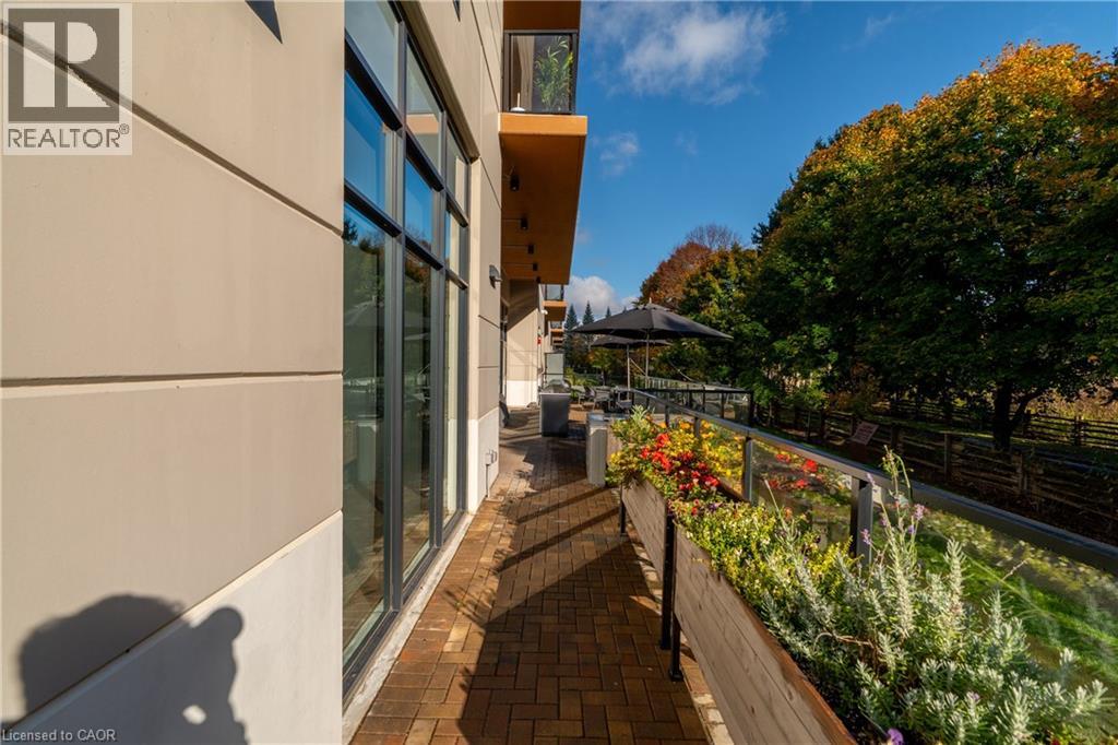 Welcome to 525 New Dundee Road, Unit 101. A modern and bright one-bedroom condo located on the main floor of a newly built building. This spacious unit features impressive 10-foot ceilings and a thoughtfully designed open-concept layout, creating an airy and inviting living space. Step out onto your private balcony, where you can enjoy peaceful views of the forest and walking trail just beyond. The stylish kitchen is equipped with stainless steel appliances, sleek cabinetry, and a reverse osmosis water system, offering both functionality and modern appeal. The living area is enhanced with power remote-control blinds, providing effortless comfort and convenience. This well-appointed unit also includes in-suite laundry, ample storage, and contemporary finishes throughout. Residents enjoy access to exceptional building amenities including a fitness centre, sauna, party room, library, pet wash station, and a beautifully designed outdoor patio with BBQs. Perfect for entertaining or unwinding. Ideally located just minutes from Highway 401, Conestoga College, shopping, restaurants, and scenic walking trails, this home offers the perfect balance of comfort, nature, and accessibility. A fantastic opportunity for first-time buyers, down-sizers, or investors looking for low-maintenance living in a growing community. (id:64974)