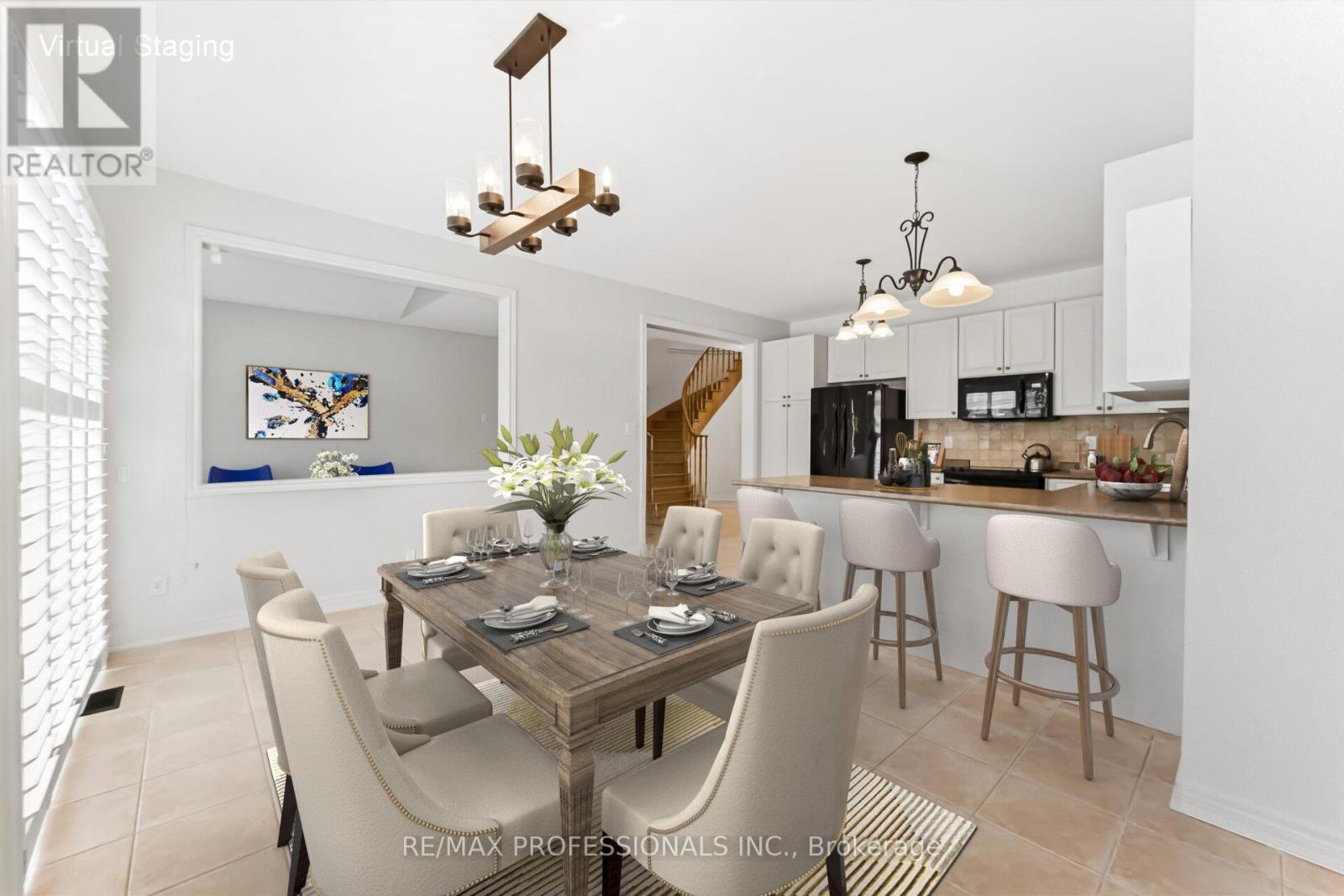 Welcome to 525 Scott Boulevard in Milton's sought-after Scott neighbourhood. This well-maintained 3-bedroom, 3-bathroom, double car garage detached home offers a functional layout in a family-friendly, walkable community close to shopping, parks, schools, hiking on the Bruce trail system, Hospital and major commuter routes. The main floor features hardwood flooring, California shutters, and a family room with a gas fireplace. The open-concept kitchen includes modern appliances, a breakfast bar and ample cabinetry. The dining room features a walkout to a fully fenced backyard with a concrete patio. Upstairs, the primary bedroom offers hardwood floors, a spacious 4-piece ensuite, a walk-in closet, while two additional bedrooms with hardwood flooring share a 2 floor main full 4 piece bathroom. Additional features include a main floor powder room, inside garage entry, central air conditioning and parking for four vehicles. The full unfinished basement with R/I Washroom, storage area and cold room provides potential for a future rec room, gym, or in-law suite. Move-in ready in a high-demand Milton location. Virtually Staged Photos (id:64974)