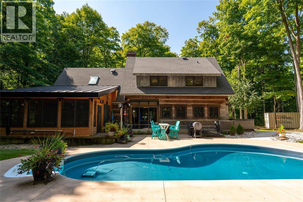 This custom square-hemlock home sits on 20+ acres of the Wyoming Glacier Moraine, where everyday life feels like a retreat. Imagine your family gathering around the wood-burning fireplace, sharing meals at the 11' island, or watching the kids splash in the saltwater pool. Sunlight fills the home through hybrid wood/aluminum windows, highlighting pine floors and character beams. Upstairs, the spacious primary suite with arched window, skylights, and walk-in closet creates a bright and restful escape. The lower level offers ample storage, a grade entrance, and a cozy rec room. Surrounded by mature sugar maples, a spring-fed creek, and walking trails, the property provides unmatched privacy and a deep connection to nature. Outdoors, enjoy skating on the pond, exploring trails, or movie nights in the 3-season sunroom. Here, seclusion and luxury blend into a lifestyle your family will treasure. (id:64974)