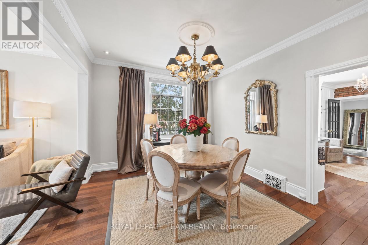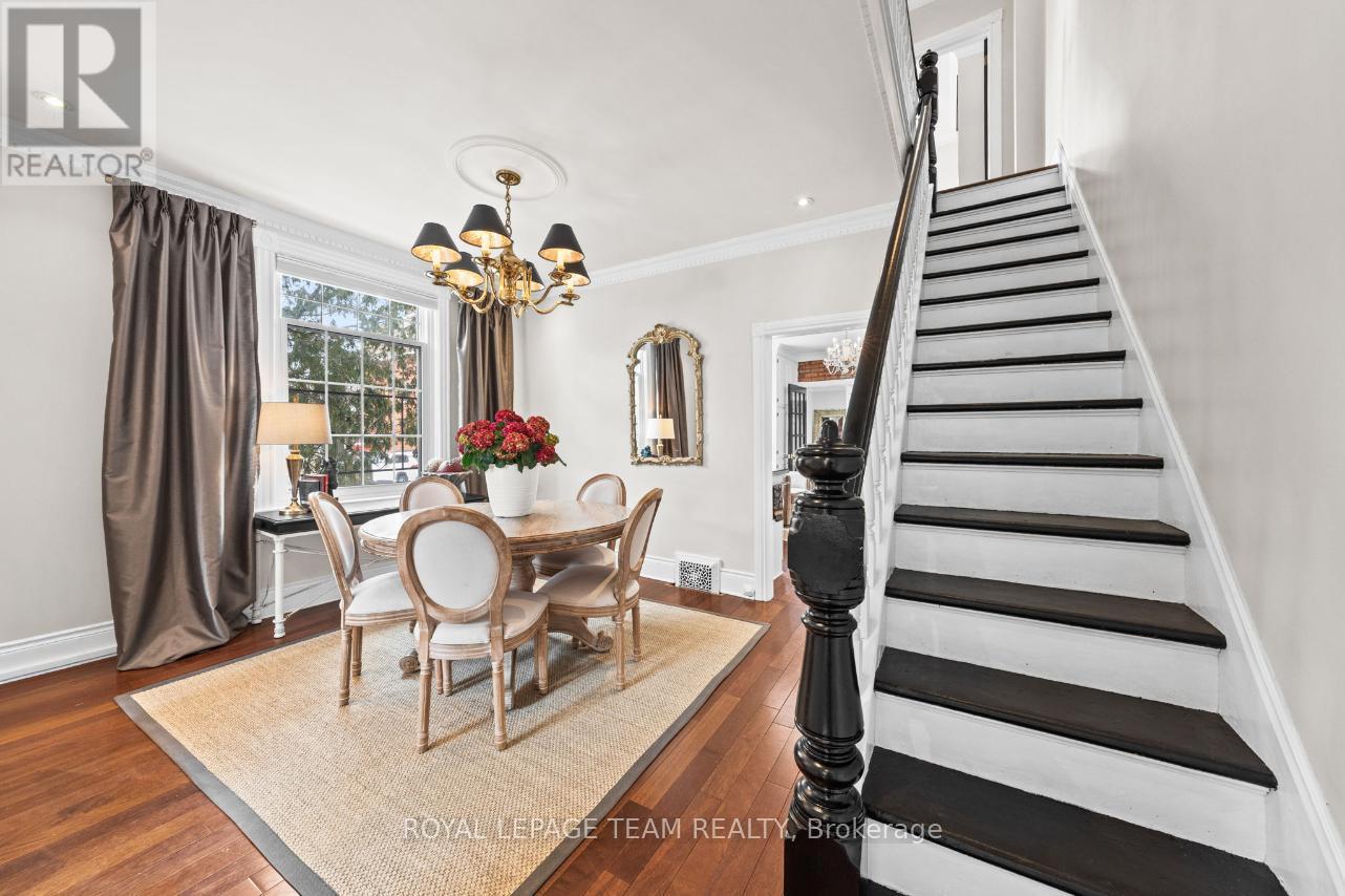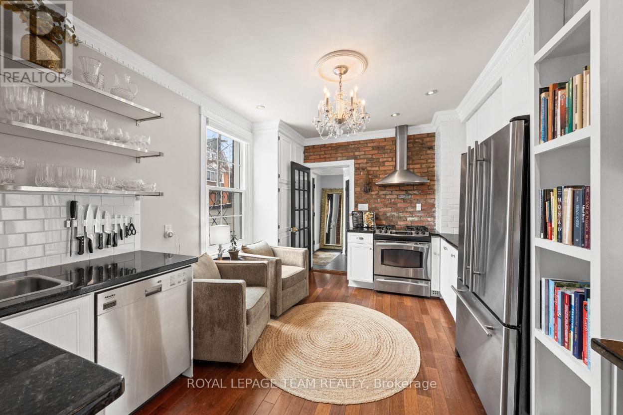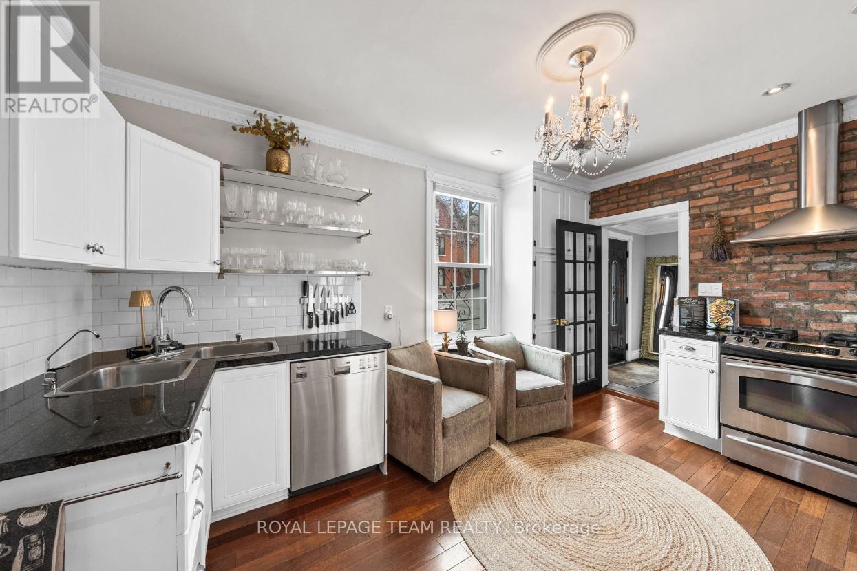 Nestled in the heart of Centretown, this semi-detached home offers an unrivalled downtown location just steps from McNabb Park, with shops, restaurants, cafés, green spaces, and everyday conveniences all nearby. Blending classic charm with contemporary finishes, the home delivers an elevated urban lifestyle. The main level features a flowing open-concept layout with bright, natural light-filled interiors throughout. Details include Brazilian hardwood flooring, crown mouldings with dentil detailing, and a stylish kitchen with granite countertops, stainless steel appliances, and an exposed brick feature wall that serves as a striking architectural accent. The main level includes a powder room with laundry amenities, and a practical secondary entrance, adding everyday ease and versatility. Upstairs, you will find three bedrooms and a full bathroom. One secondary bedroom features a balcony, offering a private space to unwind and enjoy the outdoors. The finished lower-level highlights two versatile flex spaces, a wet bar, and a full bathroom. Two parking spaces complete this exceptional offering. (id:64974)