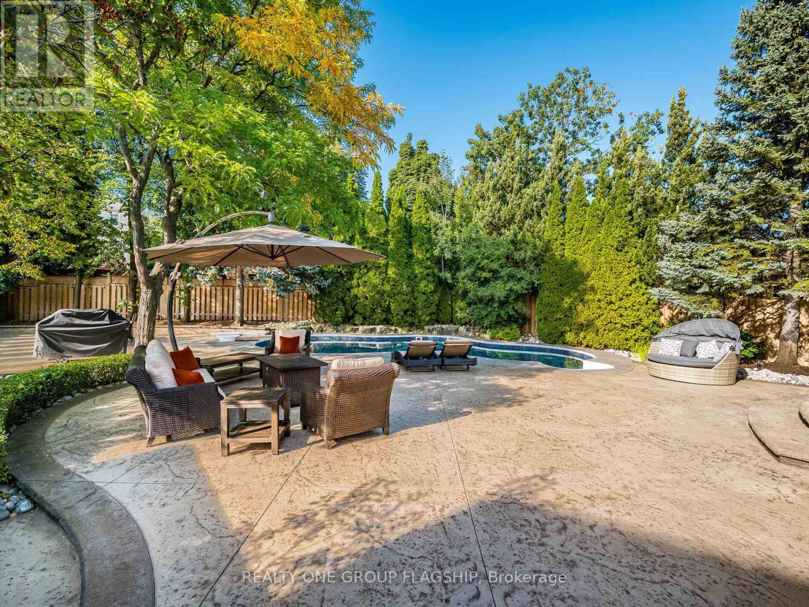 Welcome to 5290 Hilton Court, a rare and distinguished residence nestled in the most private and prestigious cul-de-sac in Credit Mills. With properties on Hilton Court seldom offered for sale, this is an exceptional opportunity to own a true gem. This stunning estate spans nearly 10,000 sq ft. situated on a 65.12 x 166.38 ft. private, resort-style oasis that features a heated saltwater inground pool, landscape lighting and surrounded by towering cedar and pine trees for total seclusion and serenity. This New Classic Style home blends timeless architectural elegance with modern family comfort boasting approx. 4,300 sq. ft. above grade and an additional 1,700 sq. ft. in the lower level for a total of an approx. 6,000 sq. ft. of living space. The main level welcomes you with a grand custom-made Solid Mahogany Amberwood door, Expansive formal living and dining rooms with oak hardwood flooring, two solid oak staircases adding architectural distinction and flow and a versatile Gym (can be converted to a main floor Master bedroom), The heart of the home is the custom-designed kitchen, a true gathering place for family and guests alike with Oversized center island, Wrap-around cabinetry for ample storage and Full slabs of granite countertops and backsplash for a sleek, upscale finish, The kitchen opens into a sun-filled family room anchored by a modern wall-mounted gas fireplace, with stunning views of the lush, cedar-lined backyard the perfect setting for year-round entertaining. The second-floor features 4 spacious bedrooms, 3 full bathrooms, all beautifully appointed Plus an executive office (can be converted to a 5th Bedroom) with custom wrap-around bookshelves and a cozy gas fireplace with Rich oak engineered hardwood flooring throughout. The lower floor includes a direct exit to the 3-car garage, a second full kitchen with an attached Pantry room, massive TV room, full Billiard Room, wet bar, and a residence suite with a 3 PC washroom and attached Family Sauna. (id:64974)