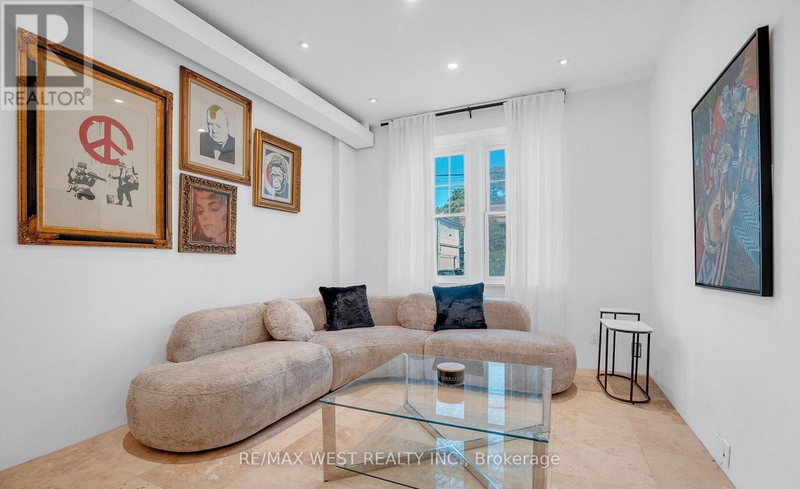 A Rare Opportunity in the Heart of the Ossington District. Step inside this 4,500+ sq. ft. architectural treasure, where historic character meets modern luxury. Built in 1933 as a community centre, 53 Argyle Street has been reimagined into a one-of-a-kind residence with commercial + residential zoning - ideal for live/work flexibility or a creative entrepreneurial vision. Located in the Soho of Toronto - Vogue's pick as the World's 2nd Hippest District - you're just steps from Trinity Bellwoods Park, Queen West, Ossington's vibrant café culture, art galleries, and award-winning restaurants. The main floor impresses with open-concept living and dining, a chef's kitchen with granite counters and extra-large fridge, sun-filled atrium and office space. Heated floors and skylights add comfort and light throughout. The second floor features a serene primary suite with walk-in closet, ensuite spa (Roman bath, bidet, sauna), plus three additional bedrooms and a luxe five-piece bath. Upstairs, discover a third-floor retreat - two bedrooms linked by a secret passage that kids will love it, and a copper soaking tub. The finished basement offers 8'5" ceilings, a second kitchen, bathroom, and elevator access - perfect for an artist's studio, guest suite, or private office. Step outside to a private courtyard oasis that you can turn into an entertainer's dream. Additional features include marble and hardwood finishes, central air, alarm system, and a 12,000-watt generator. This property is more than a home - it's a lifestyle, a statement, and an investment in Toronto's most coveted urban playground. Art and furniture available for purchase. (id:64974)