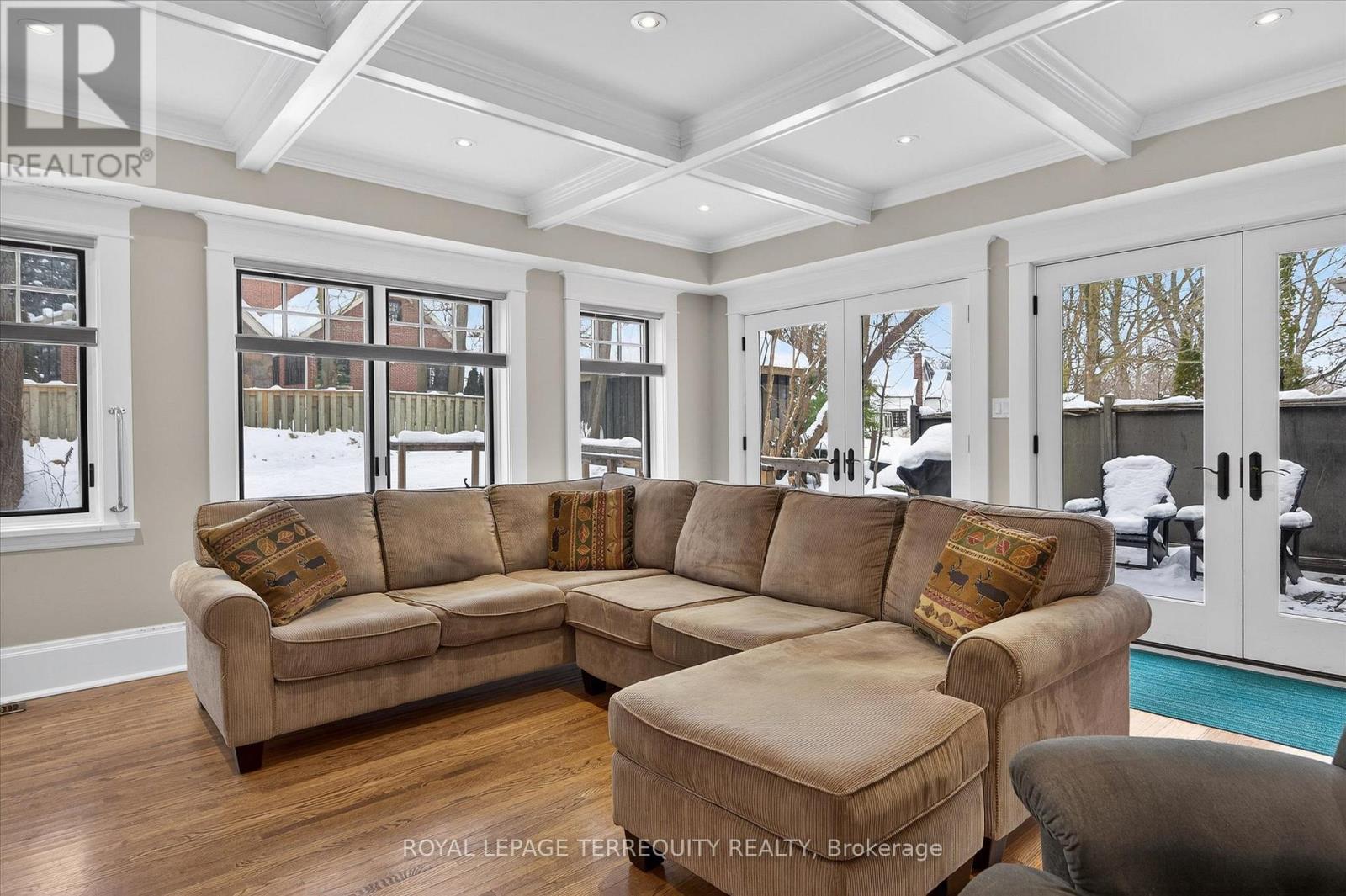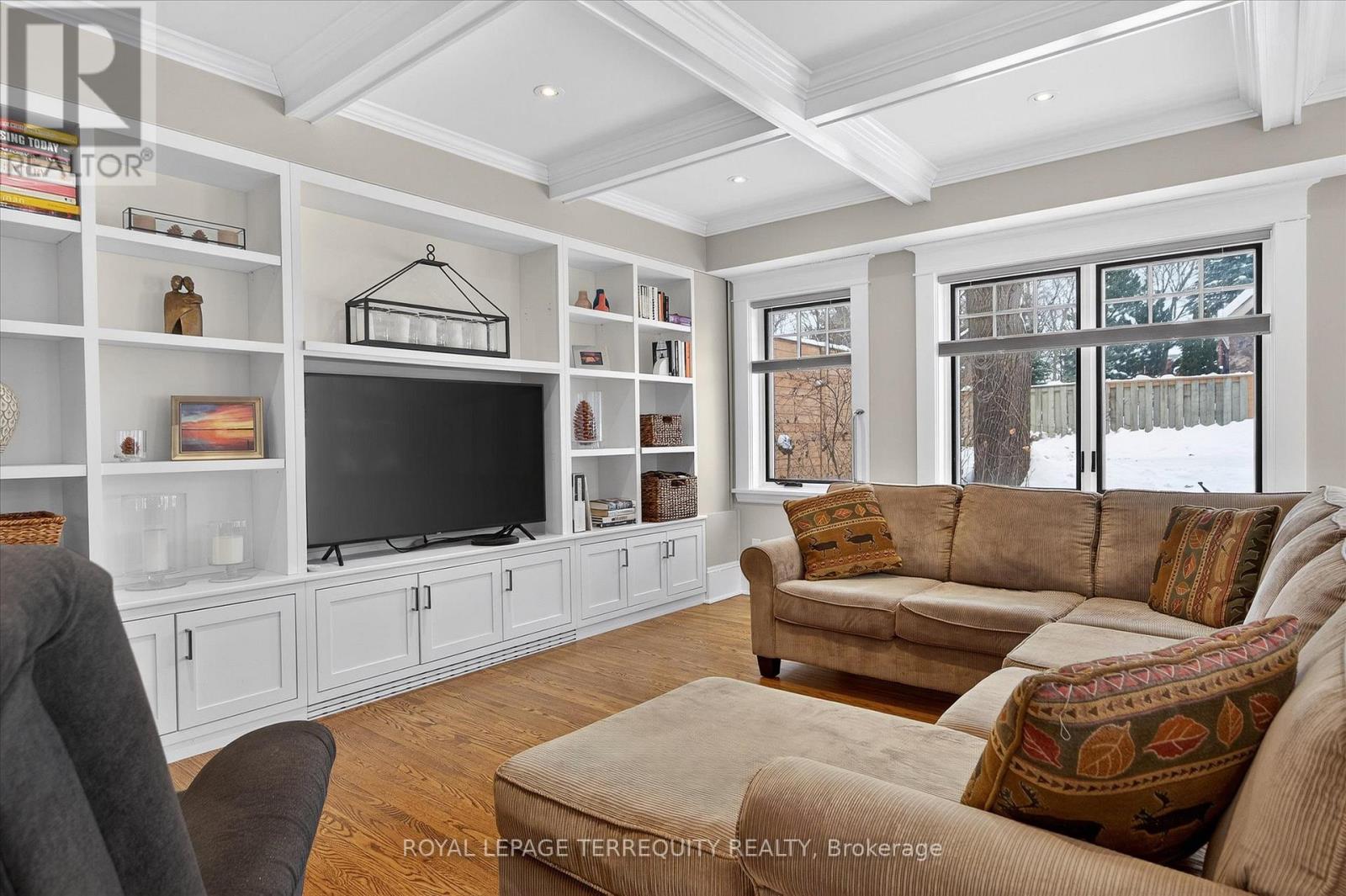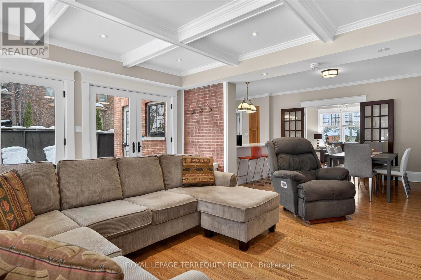 Welcome to this beautiful inviting character home, perfectly situated on a quiet, tree-lined street in the highly sought-after Teachers College neighbourhood of Peterborough. This prime location offers the rare combination of peaceful residential living with the convenience of being able to walk, bus or drive just minutes to downtown amenities. This spacious four-bedroom, three-bathroom home, plus a main floor powder room, blends timeless charm with thoughtful modern updates. The large living room features a wood-burning fireplace, creating a warm welcoming space for relaxing evenings. From here, the home flows seamlessly into an open-concept kitchen, dining and living area, ideal for entertaining family and friends. A standout feature is the 2-storey addition completed in 2015, designed to enhance both comfort and connection to the outdoors. The expansive family room boasts coffered ceilings, built-in cabinetry and shelving, large windows and two walk-out doors leading to a generous patio deck with wide views of the rear property. The home also offers wheel-chair accessibility through the rear entrance and deck adding versatility and thoughtful design. Hardwood flooring extends throughout the home.The primary bedroom retreat offers a spacious walk-in closet and four-piece ensuite bathroom. Enjoy the exceptional lifestyle with the Rotary Trail, Parks, biking paths, and river just steps away. A short walk brings you to downtown Peterborough's restaurants, shopping, hockey and sports facilities. ** This is a linked property.** (id:64974)