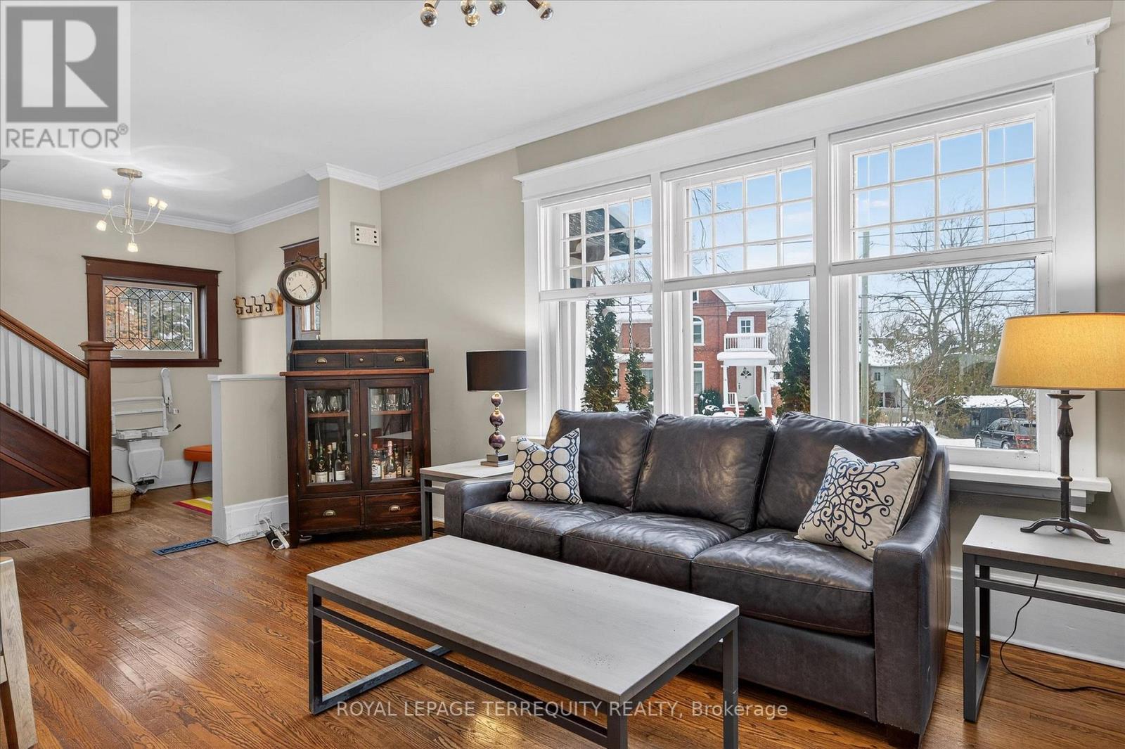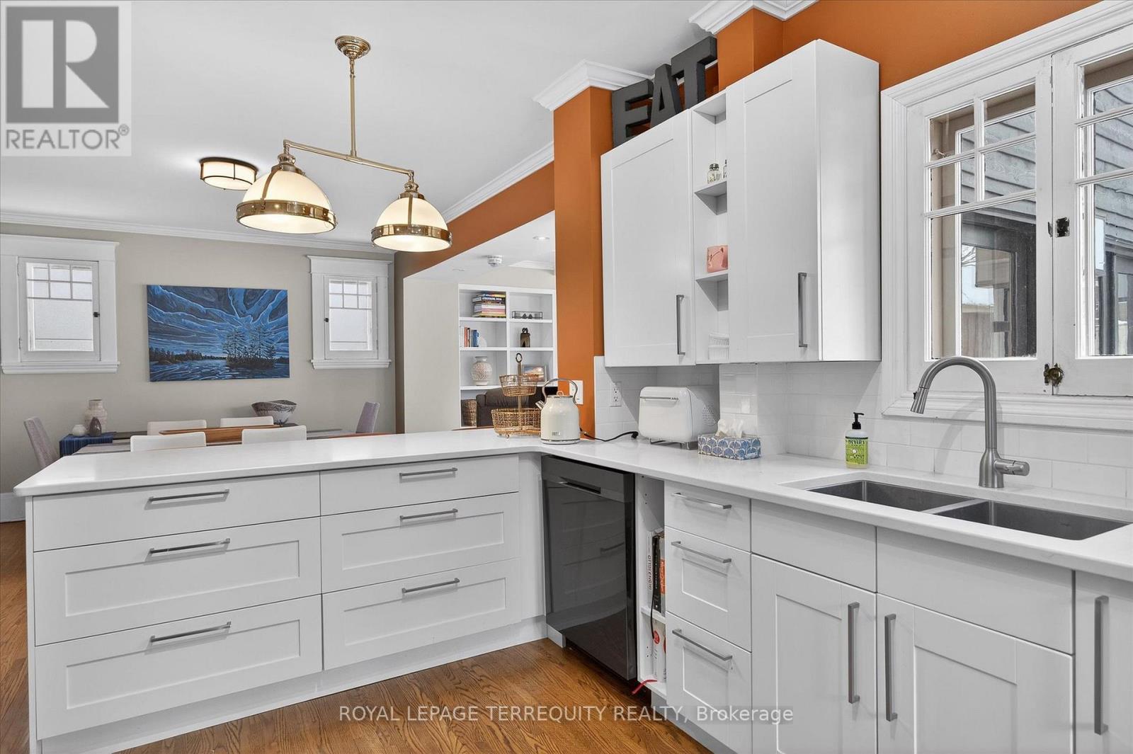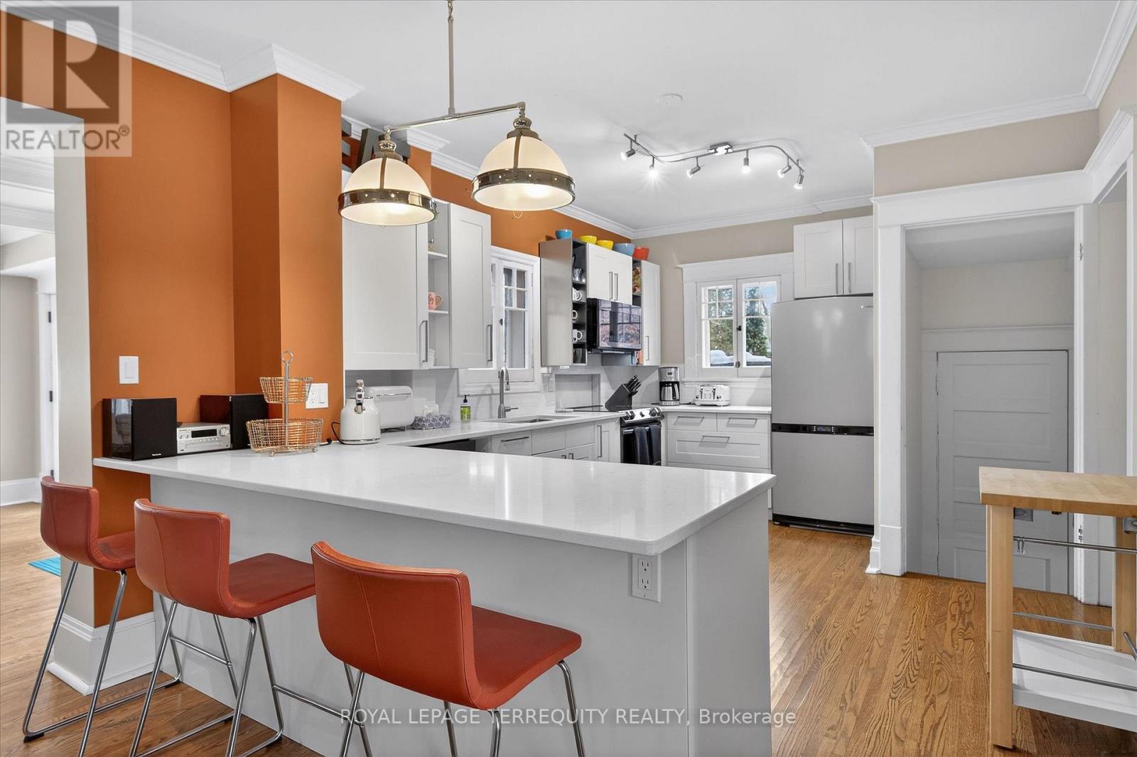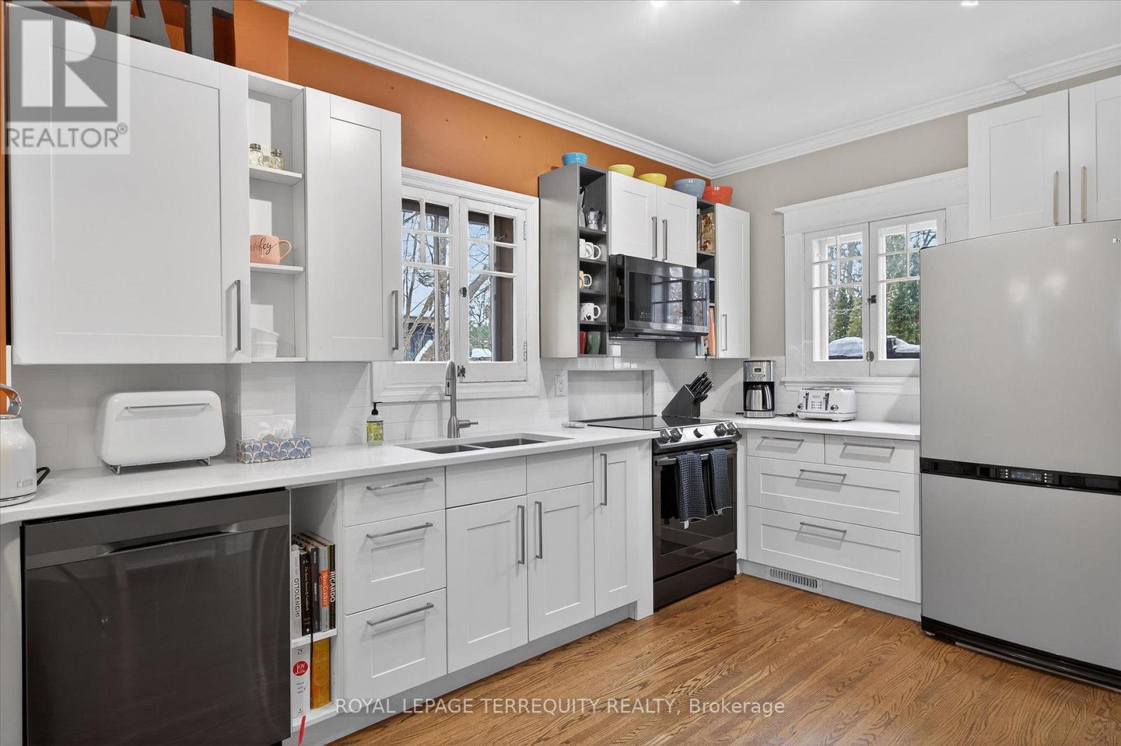 Welcome to this beautiful inviting character home, perfectly situated on a quiet, tree-lined street in the highly sought-after Teachers College neighbourhood of Peterborough. This prime location offers the rare combination of peaceful residential living with the convenience of being able to walk, bus or drive just minutes to downtown amenities. This spacious four-bedroom, three-bathroom home, plus a main floor powder room, blends timeless charm with thoughtful modern updates. The large living room features a wood-burning fireplace, creating a warm welcoming space for relaxing evenings. From here, the home flows seamlessly into an open-concept kitchen, dining and living area, ideal for entertaining family and friends. A standout feature is the 2-storey addition completed in 2015, designed to enhance both comfort and connection to the outdoors. The expansive family room boasts coffered ceilings, built-in cabinetry and shelving, large windows and two walk-out doors leading to a generous patio deck with wide views of the rear property. The home also offers wheel-chair accessibility through the rear entrance and deck adding versatility and thoughtful design. Hardwood flooring extends throughout the home.The primary bedroom retreat offers a spacious walk-in closet and four-piece ensuite bathroom. Enjoy the exceptional lifestyle with the Rotary Trail, Parks, biking paths, and river just steps away. A short walk brings you to downtown Peterborough's restaurants, shopping, hockey and sports facilities. ** This is a linked property.** (id:64974)