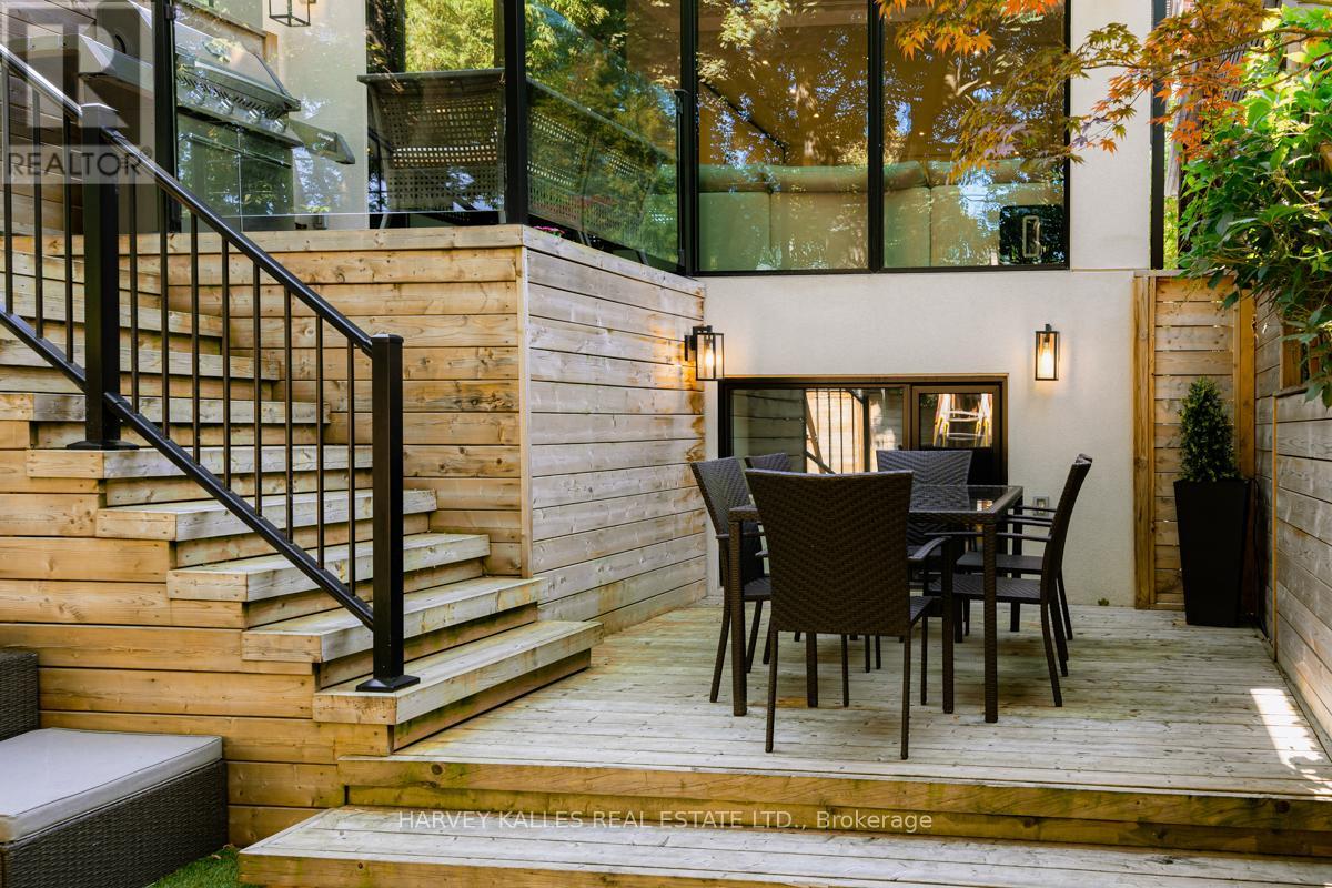 Designed by acclaimed Architect Andrew Laszlo and expertly crafted by Silverado Custom Homes in 2020, this sophisticated residence at 53 Castlewood Road defines modern luxury in the heart of Allenby. This 2,200 + square foot home features 4 + 1 generous bedrooms and 4 impeccably designed bathrooms, showcasing a perfect harmony of architectural vision and superior build quality. Every detail reflects a commitment to excellence, from the precision millwork to the seamless integration of high-efficiency systems.The gourmet kitchen serves as a stunning centerpiece, featuring a massive centre island with sleek stone surfaces and comfortable counter seating for three. This culinary space includes a bright, open eat-in area overlooking and stepping down into a spacious family room. The rear of the home is anchored by dramatic floor-to-ceiling windows that flood the space with natural light and offer a seamless walk-out to a private back deck equipped with a natural gas BBQ hookup. This outdoor oasis is designed for effortless enjoyment, featuring high-quality turf for year-round greenery and dedicated children's play equipment.Boasting an impressive Walk Score of 88, this property offers an unbeatable urban lifestyle steps from the vibrant shops, cafes, and restaurants of Eglinton West and Avenue Road. With its proximity to prestigious schools and the LRT, this architecturally significant home presents a rare opportunity to own a nearly new, luxury masterpiece in one of Toronto's most coveted neighbourhoods. (id:64974)