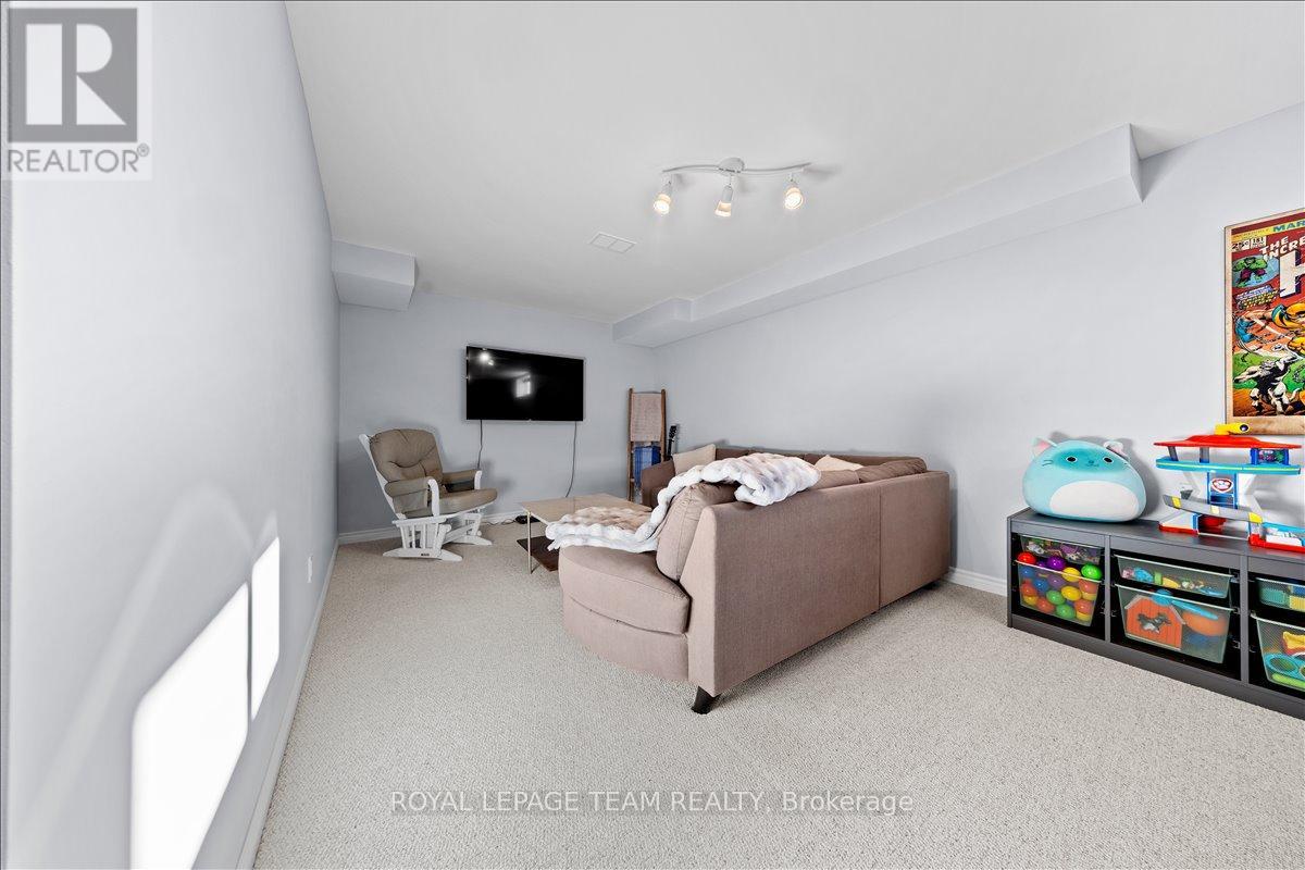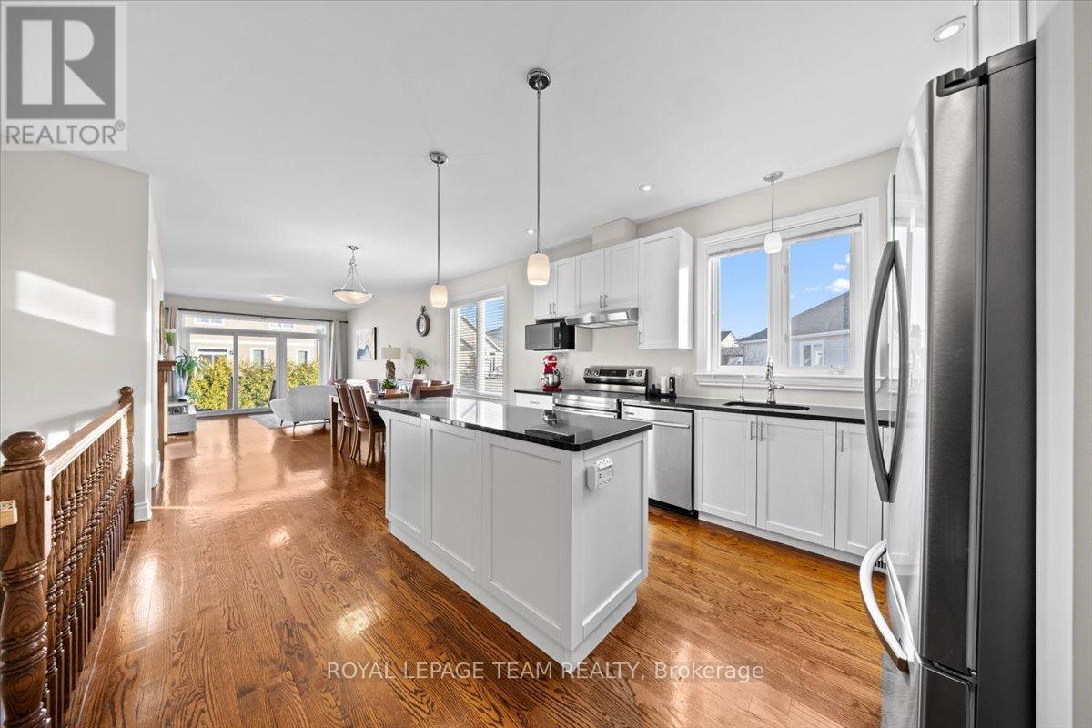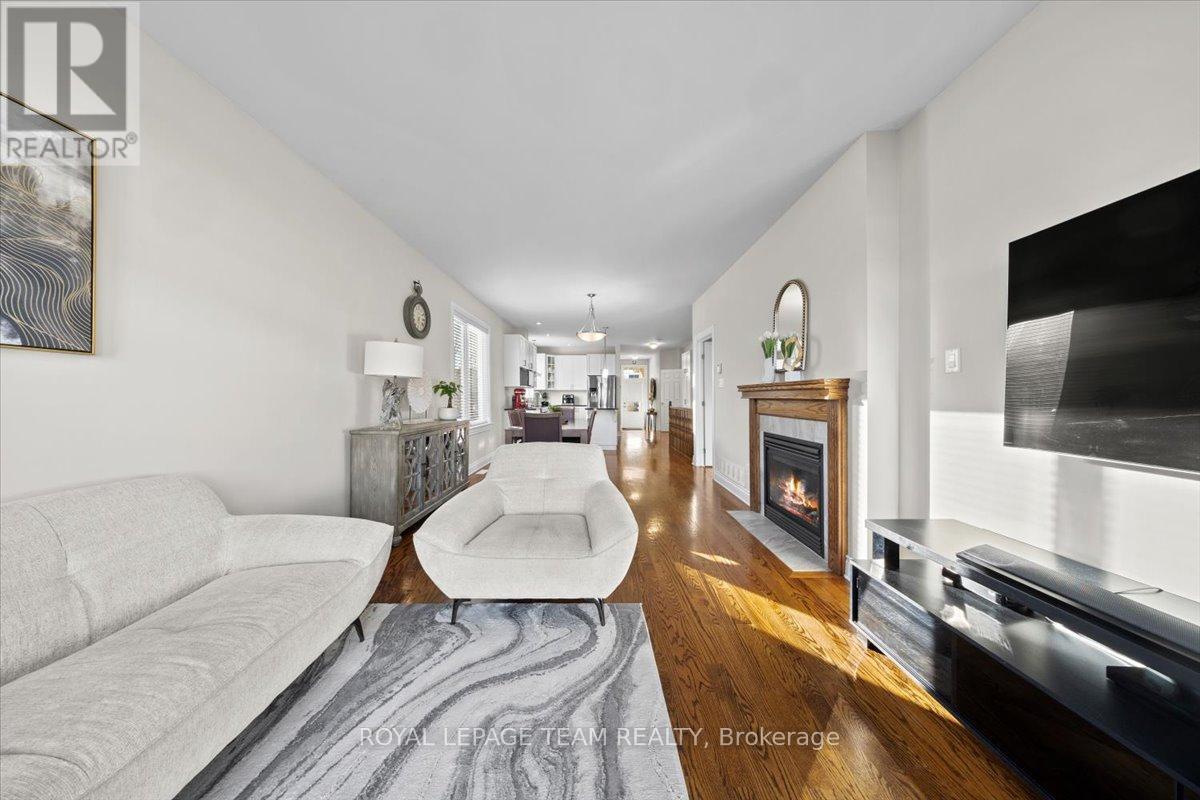 Welcome to 53 Desmond Trudeau Drive, a beautifully maintained end unit bungalow that offers the perfect blend of comfort, functionality, and thoughtful upgrades. From the moment you arrive, the charming covered front porch invites you to slow down and enjoy the setting. Step inside and you're welcomed by a bright, open concept layout filled with natural light, enhanced by the premium end unit exposure. The main living area features rich hardwood flooring and a warm gas fireplace, creating a space that feels both inviting and refined. The kitchen is designed for everyday living and entertaining, complete with quartz countertops, stainless steel appliances, a central island, and ample cabinetry. The main floor offers true bungalow living with a spacious primary bedroom featuring a walk in closet and a private 4 piece ensuite. A second bedroom and full bathroom provide flexibility for guests, family, or a home office. Main floor laundry with inside access to the garage adds to the convenience. The fully finished basement extends your living space with a large recreation room, a third bedroom, and another full bathroom, making it ideal for visiting family, teenagers, or multi generational living. Additional highlights include central air, natural gas heating, electric vehicle charging plug with dedicated breaker, reverse osmosis water filtration system, and a backyard with a wooden shed for extra storage. This is a home that has been exceptionally well cared for and thoughtfully upgraded, offering a low maintenance lifestyle without compromising on space or comfort. A rare opportunity to own a true bungalow end unit in a desirable location. (id:64974)