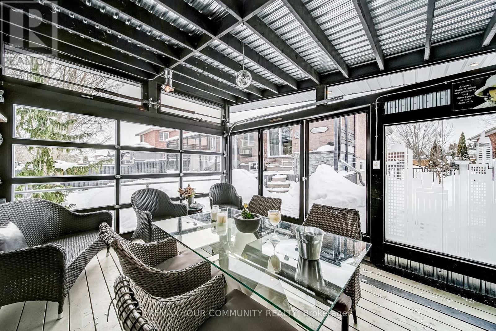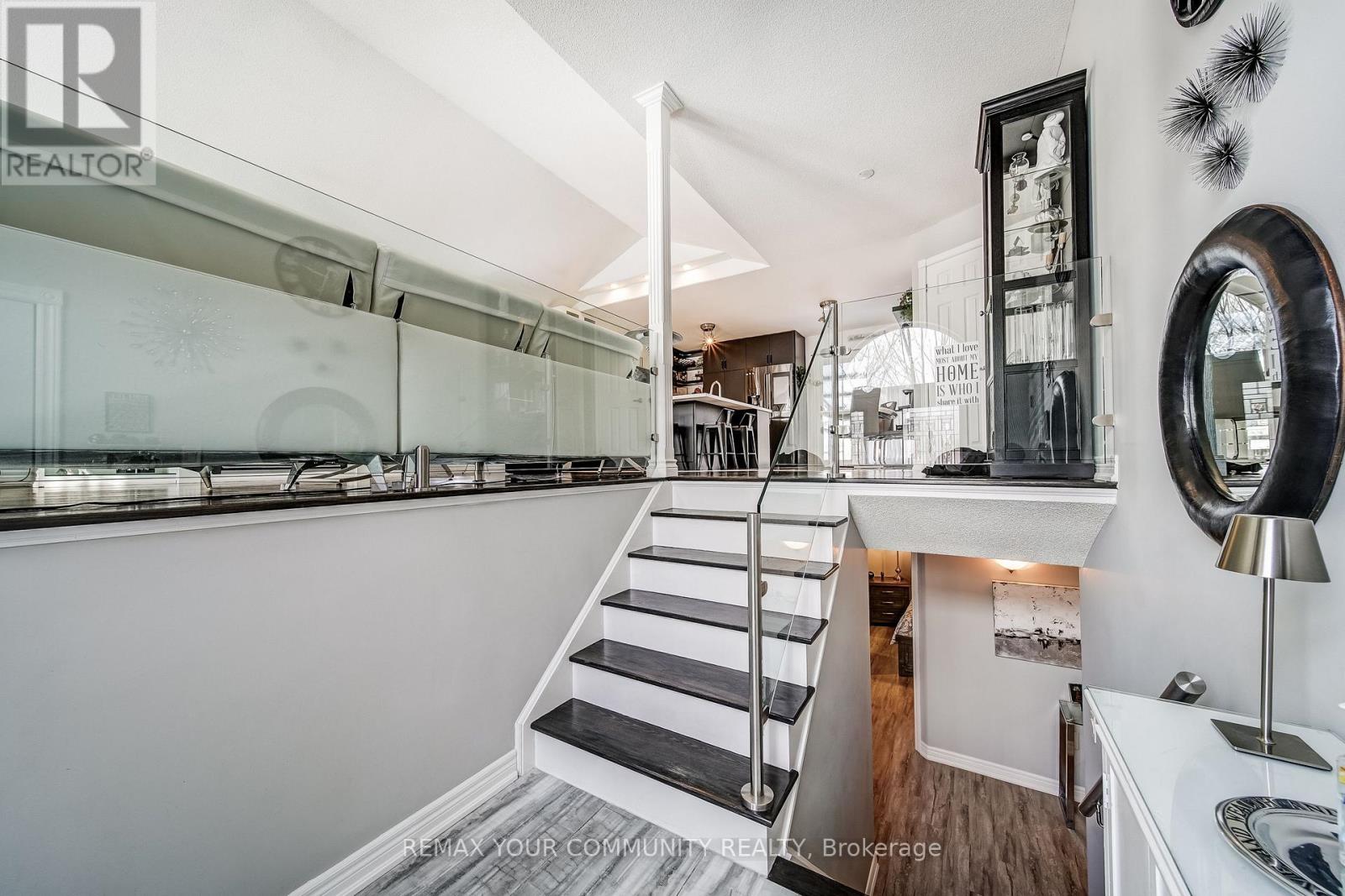 First time offered!! This Ashwood Sunshine model raised bungalow offers over 2,400 sq ft of finished living space with 4 bedrooms and 3 bathrooms, set on a premium fully landscaped 60' x 107' lot with mature trees in sought-after Northdale Heights. A stamped concrete walkway leads to a custom front door with phantom screen. The open-concept main living area features hardwood floors, modern glass railings, a gas fireplace with custom cabinetry surround, and a large west-facing window that fills the space with natural light. The modern eat-in kitchen is designed for both function and style, showcasing ceiling-height cabinetry, a large pantry, quartz countertops, and a central island. The main floor primary suite includes a walk-in closet and a 4-piece ensuite with an oversized soaker tub. Three additional spacious bedrooms offer large closets and abundant natural light .The fully finished lower level provides bright, versatile living and entertaining space with large windows, a gas fireplace, and a wet bar. The lower-level bathroom features a modern curbless shower with full-body shower column and dual niches, offering both accessibility and contemporary design. Step outside to a private backyard retreat ideal for entertaining or relaxing. Enjoy the covered deck with outdoor kitchen, including built-in gas BBQ, side burner, refrigerator, and a 6-person hot tub. A separate 3-season lounge features a glass garage door and 3-piece door system for open-air enjoyment. The fully fenced backyard is landscaped with mature gardens and stone interlock for low-maintenance living. The oversized 2-car garage offers interior access, a separate gas heater, storage loft, golf locker, and shelving. The driveway accommodates 4-5 vehicles with no sidewalk. A rare opportunity to own a modern, upgraded home close to golf, Lake Simcoe, schools, and shopping. Move in and enjoy. (id:64974)