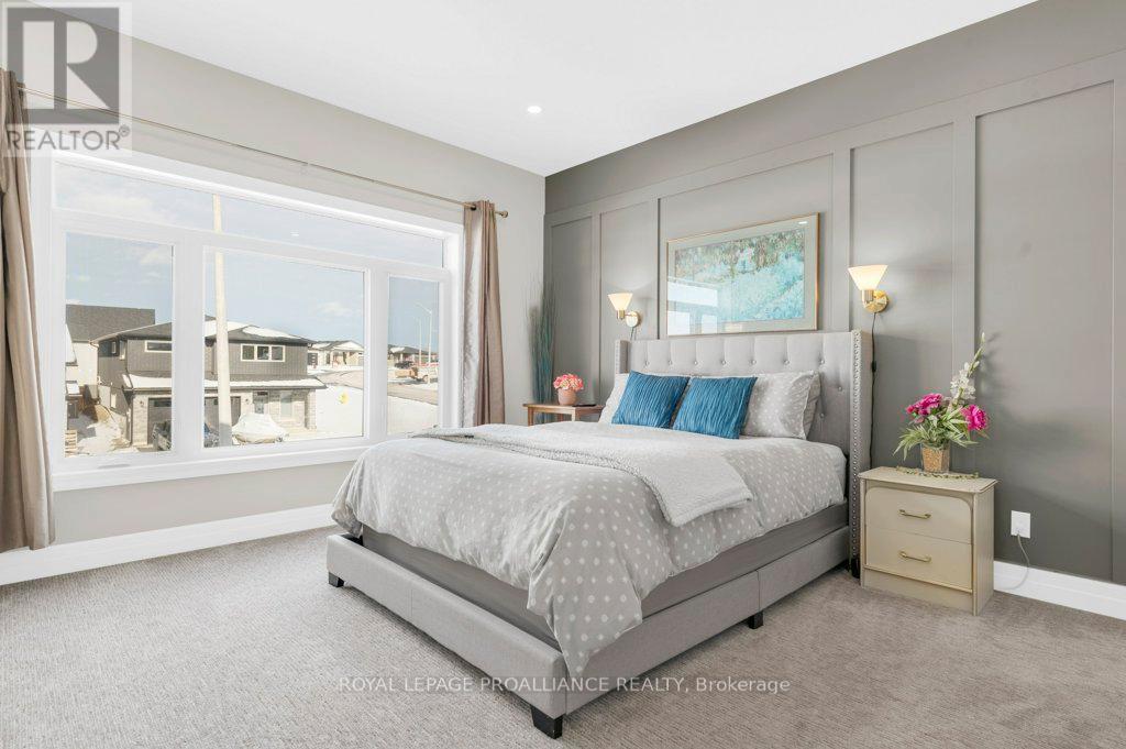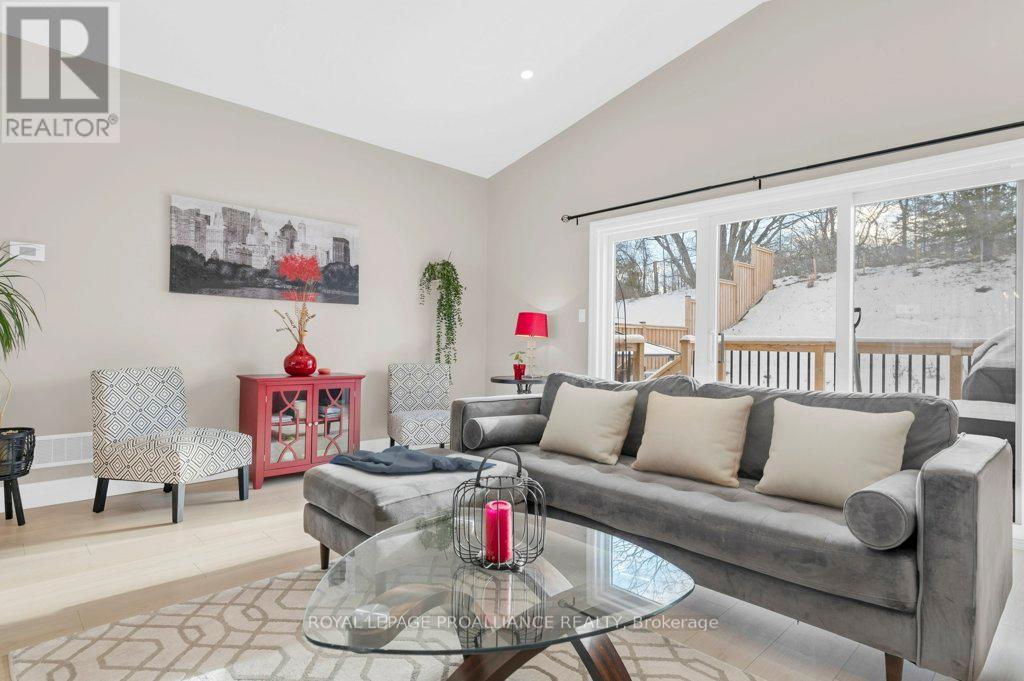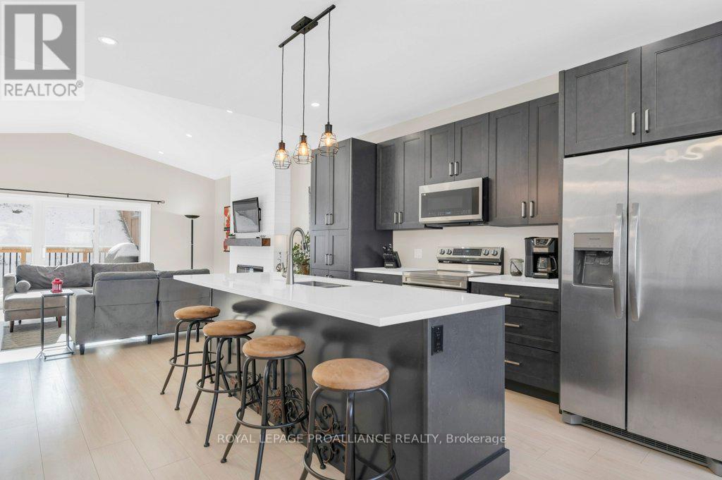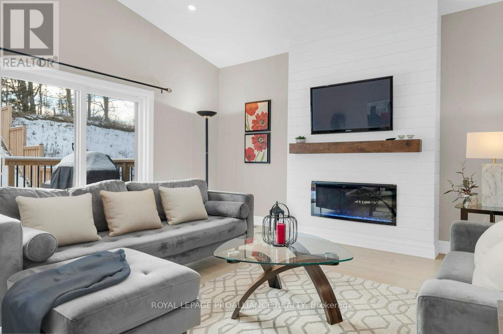 Welcome to 53 Meagan Lane-an executive 2023 residence that elevates the standard of a modern new build, featuring over $25,000 in upgrades. This turnkey luxury home is perfectly located with quick access to the 401, Belleville, and CFB Trenton. Within 2 km, enjoy downtown Frankford, the Frankford Tourist Park and Beach, the Trent River, golf, trails, playgrounds, shops, restaurants, and essential amenities-everything that makes this community so loved.Inside, bright sophistication defines the space with 9-foot ceilings, a stunning vaulted living room, and a seamless open-concept layout designed for both everyday living and entertaining. The gourmet kitchen showcases an impressive 8-foot quartz island and a striking full wall of glass-front cabinetry-perfect for hosting gatherings while staying connected with family and guests. The living area offers warmth and character with a beautiful shiplap-framed fireplace that creates a cozy focal point during cooler months. Main-floor laundry and a 200-amp service add convenience and functionality. Includes 6 high end appliances.The primary suite is a peaceful retreat with a walk-in closet and a spa-inspired ensuite featuring a custom glass shower and premium finishes.Step outside to a private outdoor oasis designed with entertaining in mind. An 8-foot patio door leads to a spacious deck and lower patio area, creating a seamless indoor-outdoor flow that is perfect for summer barbecues, evening cocktails, and gatherings with friends and family. The professionally landscaped, fully fenced yard offers exceptional privacy with no rear neighbors and beautiful backyard views of the Trent River. Perennial gardens and mature greenery enhance the peaceful setting, while the all-season gazebo provides a comfortable outdoor living space to relax or entertain throughout the warmer months. The built-in natural gas barbecue hook-up makes hosting effortless, and an elegant interlocking walkway further enhances the home's curb appeal. (id:64974)