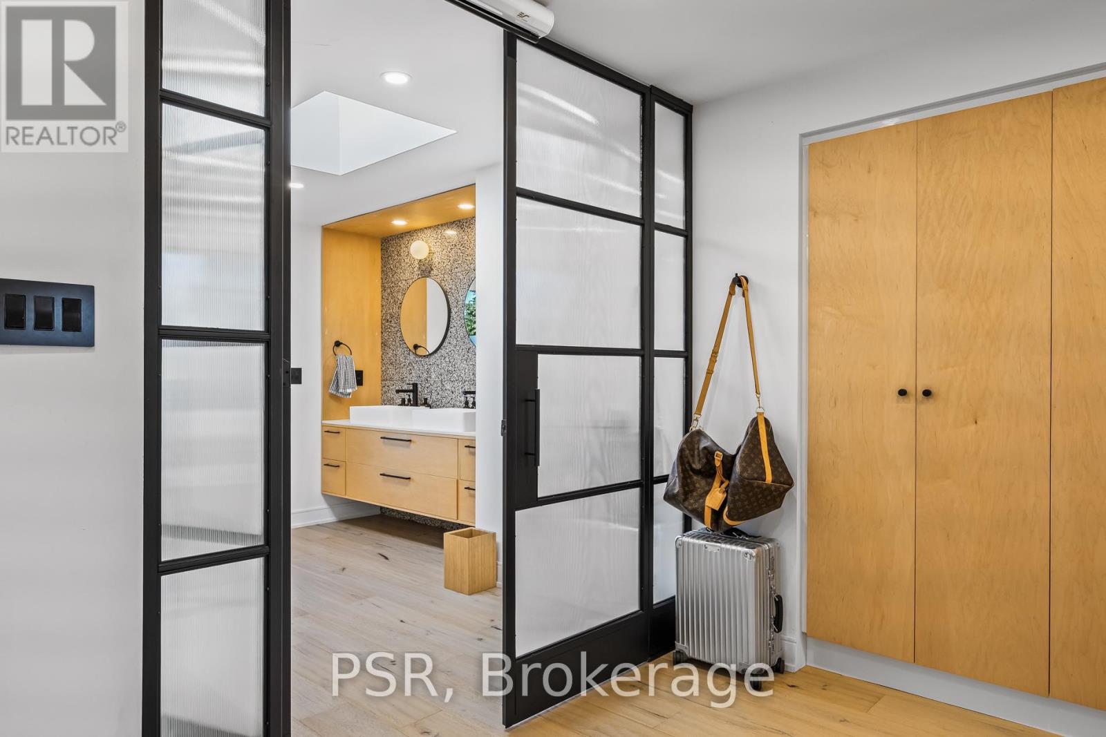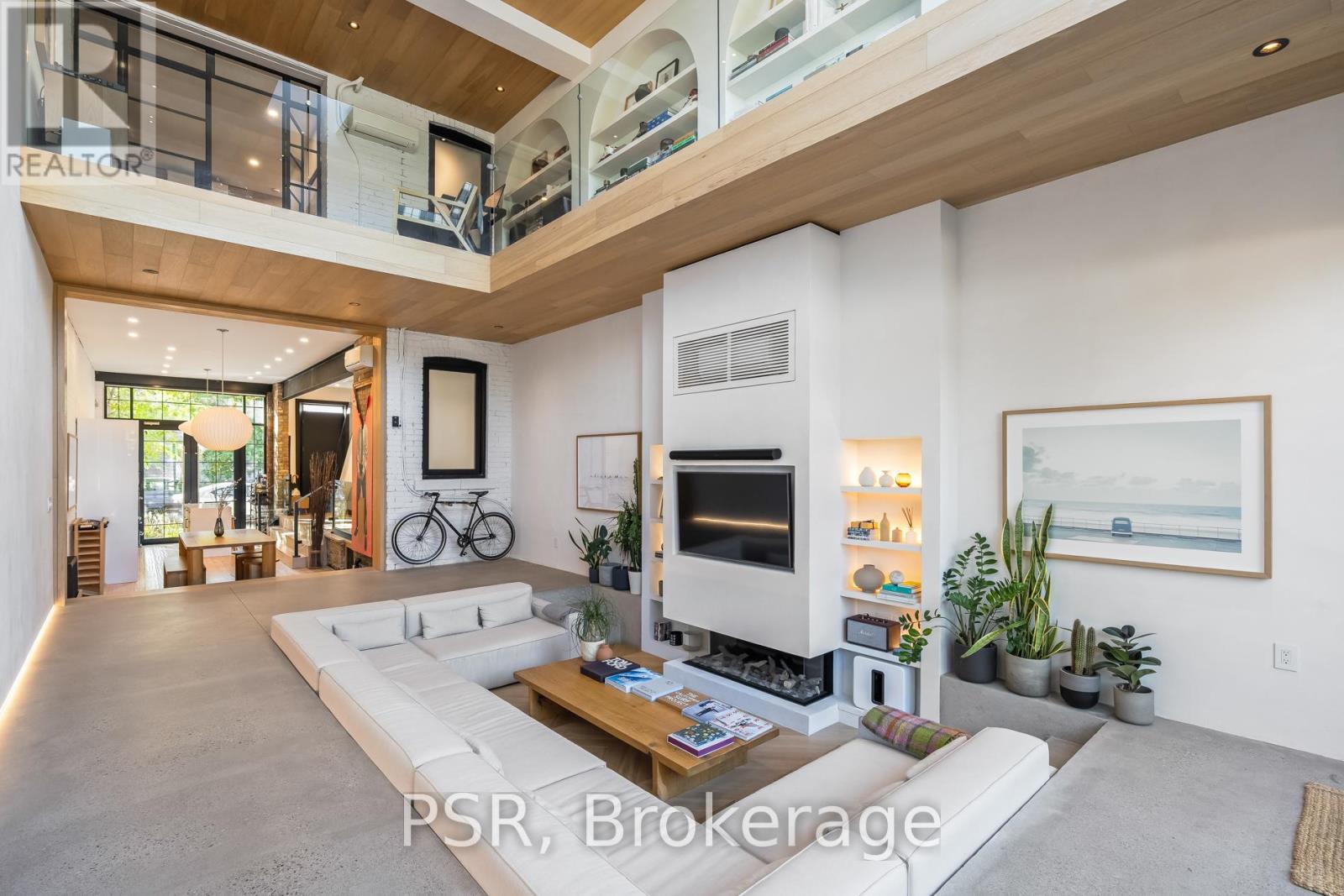 Discover an extraordinary architectural residence on Palmerston Avenue, one of Trinity Bellwoods' most sought-after streets. With history dating back to the 1860s, the home has gone through an extensive transformation, including a remarkable custom addition crafted by Whitaker Construction, a firm widely regarded as one of the city's leading builders, elevating it into a true design landmark. Featured earlier this year in the Toronto Star in an article titled "Is this the coolest living room in Toronto?" the answer is, yes. The main living space showcases striking 20-foot ceilings anchored by a sprawling sunken lounge, designed with a clean aesthetic that blends warmth with modern design. With east and west exposure, the combination of floor-to-ceiling glass and two large skylights allows natural light to pour through the entire home. The property features meticulous millwork in natural oak, micro-cement walls, heated concrete floors, and recessed lighting that together create a sense of calm sophistication. A beautifully designed mezzanine level, part of the custom addition overlooks the main living space and features a serene library with arched custom shelving, creating an inspiring, light-filled vantage point with views of the city skyline. This thoughtfully planned 3-bedroom residence includes an entire third level dedicated to the primary retreat, featuring a spa-like ensuite that extends to an expansive private rooftop terrace, partially covered and perfectly positioned for Toronto skyline and CN Tower views. An oversized double-sided 1.5 car garage provides exceptional functionality, accommodating two smaller vehicles or offering ample additional space. The lower level includes a washroom and a dedicated area ideal for storage. Celebrating craftsmanship and innovation at every turn, every element has been curated with exceptional intention, resulting in a home that is both artful and livable, an inspired piece of architecture rarely found in the city. (id:64974)