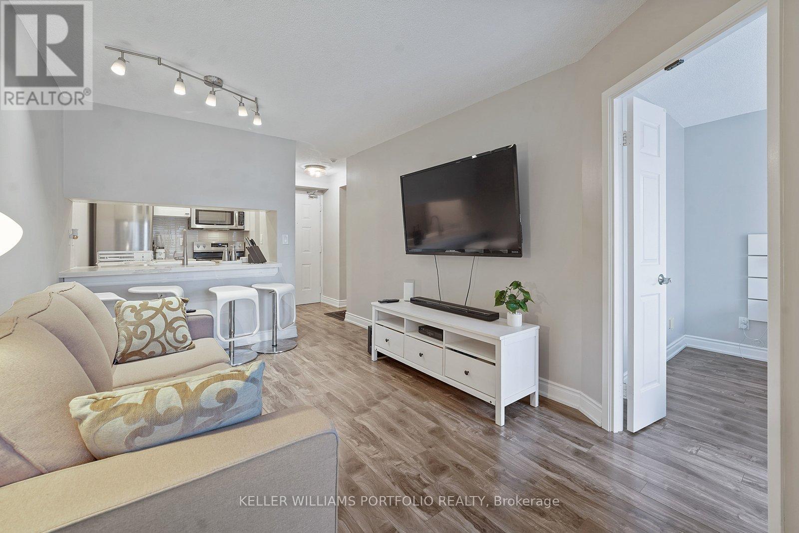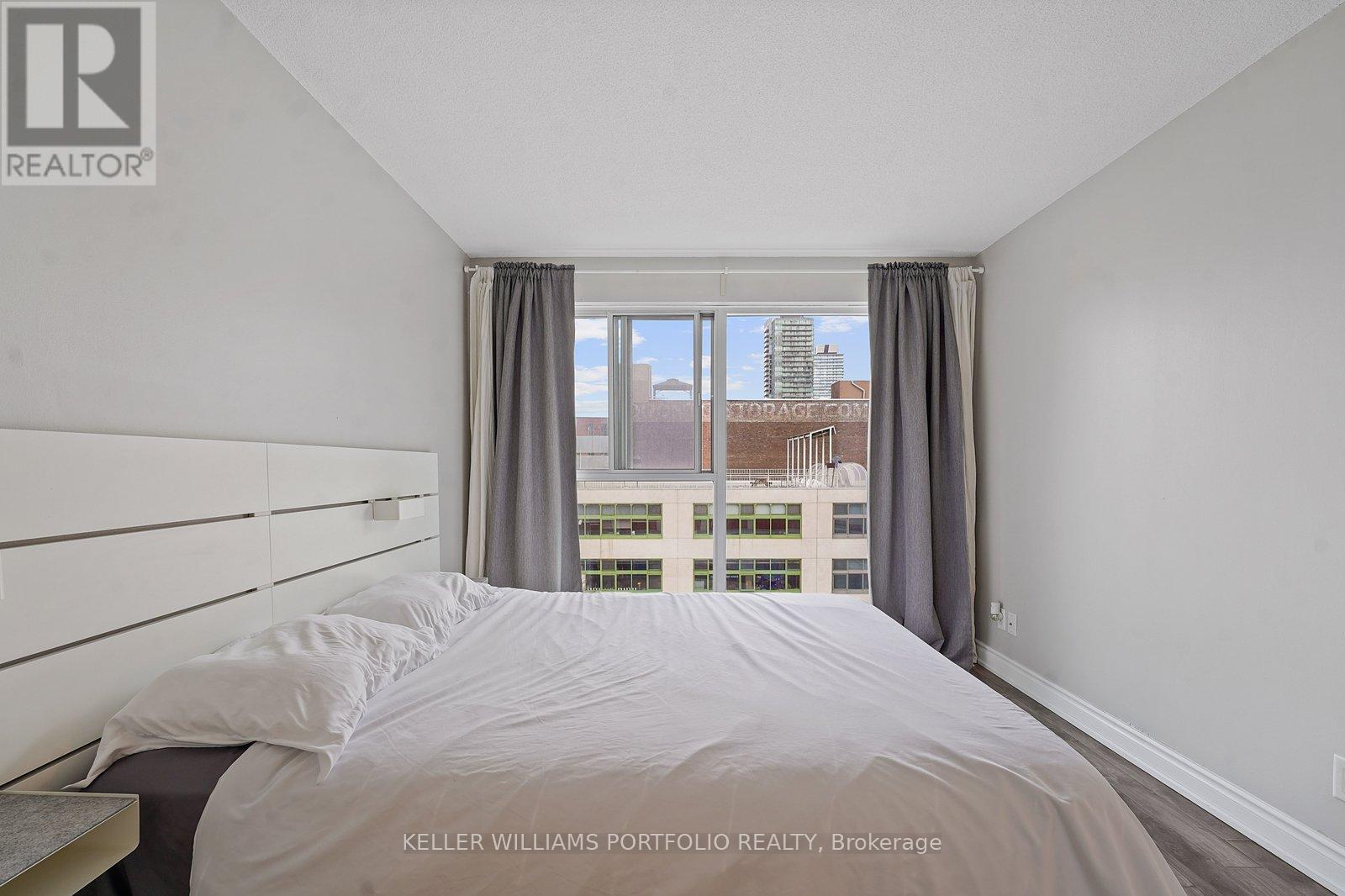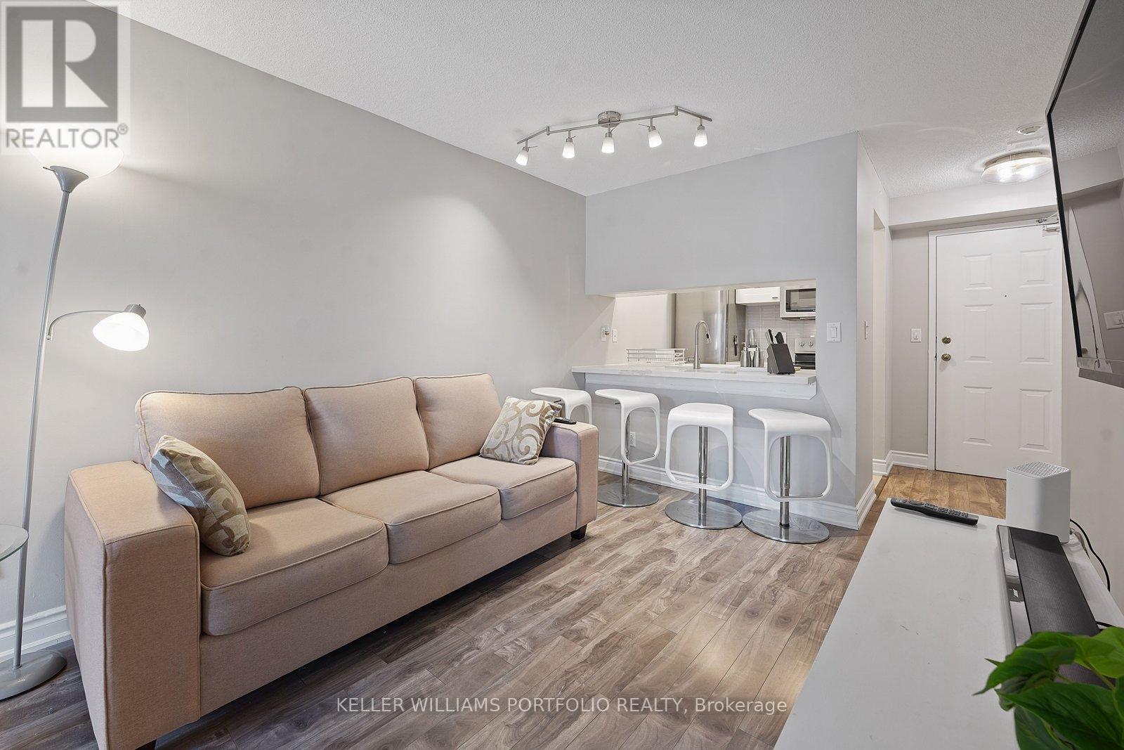 Bright Updated 1+Den condo unit At Yorktown On The Park In The Desirable St. Lawrence Market. Open Concept Layout With Updated Kitchen With Quartz Counter & Breakfast Bar. Large Bedroom W/ Walk-Thru Closet & 4-Pc Semi Ensuite Bathroom. Ensuite Laundry. Building amenties include: Concierge, Gym, Sauna, Rooftop Terrace, Party Rm & Guest Suites. Open Concept. Semi-Ensuite Bth. Condo Fees Cover Utilities. Great location Close To Shops, Cafes, Entertainment, Transportation, St Lawrence Market, & Distillery District. (id:64974)