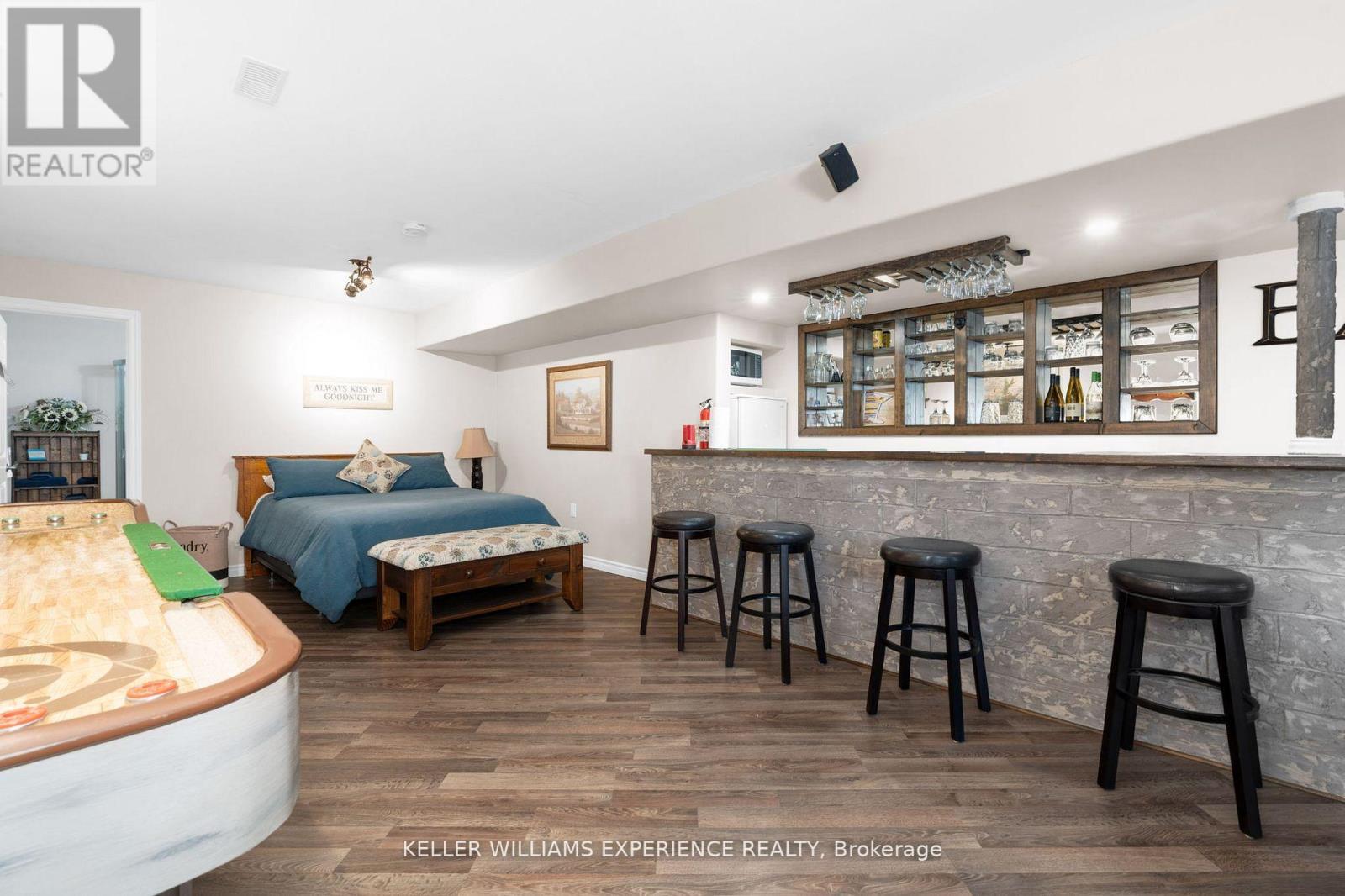 Welcome to this beautifully appointed custom built 3-bedroom bungalow set on over 1.5 acres of private, forested land where peace, privacy, and stunning natural beauty await. Surrounded by mature trees and offering breathtaking views in every season, this is your perfect escape just minutes from Mount St. Louis Moonstone Ski Hill and Highway 400. Step inside to discover a chef-inspired kitchen complete with a large island ideal for cooking, gathering, and entertaining. The open-concept design creates a warm, inviting atmosphere that flows effortlessly through the home. The fully finished basement adds incredible versatility, featuring a cozy gas fireplace, a stylish wet bar, and a walk-up separate entrance perfect for guests, in-laws, or income potential. Outside, enjoy the ultimate backyard experience with multiple gazebos for shaded lounging or outdoor dining, and a custom-built fire pit perfect for evening gatherings under the stars. Whether you're seeking a full-time residence or a year-round retreat, this property combines modern comfort with the tranquility of nature. With ski slopes, trails, and easy highway access just moments away, the lifestyle you've been dreaming of is finally within reach. Come fall in love this is more than a home, it's your sanctuary. (id:64974)