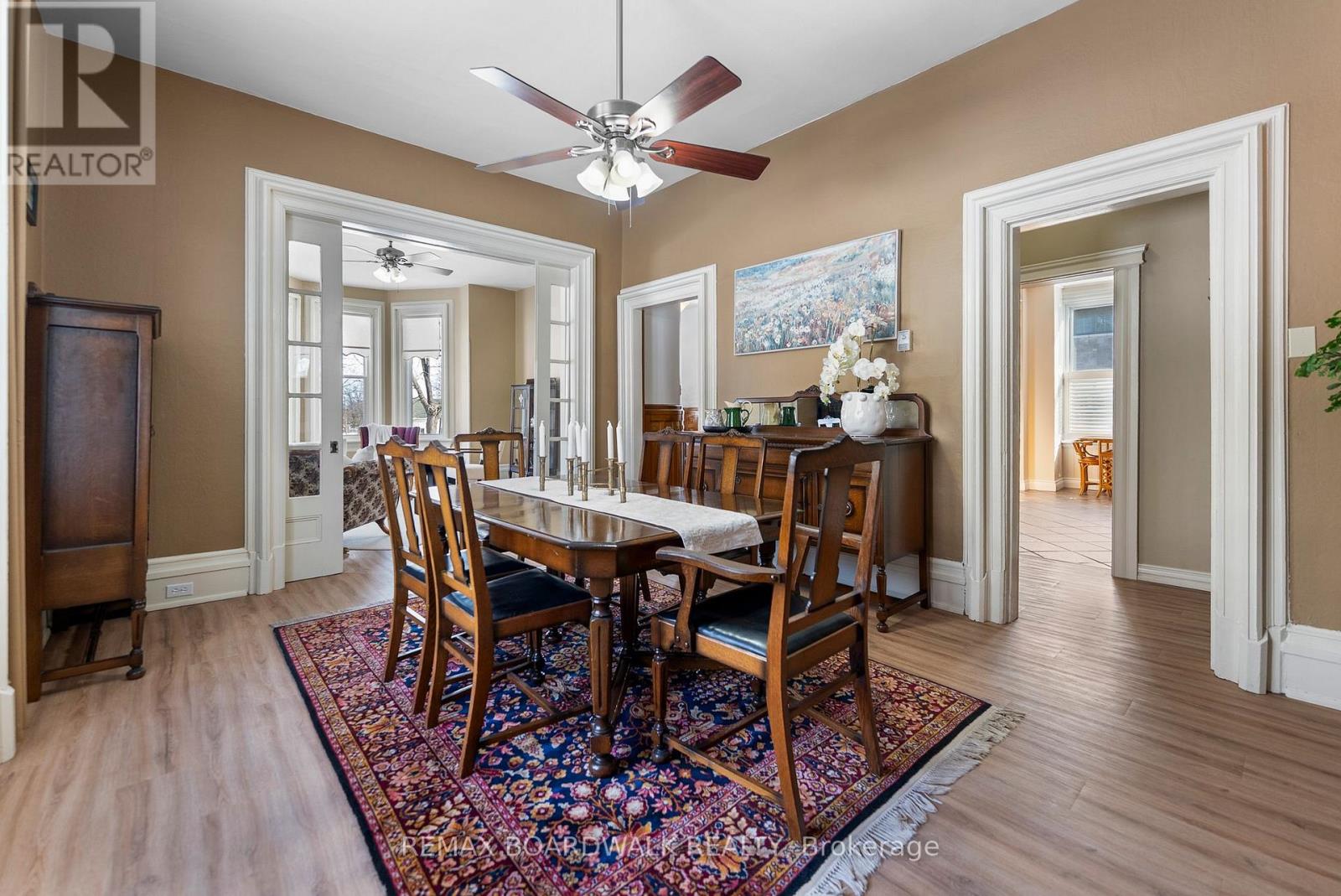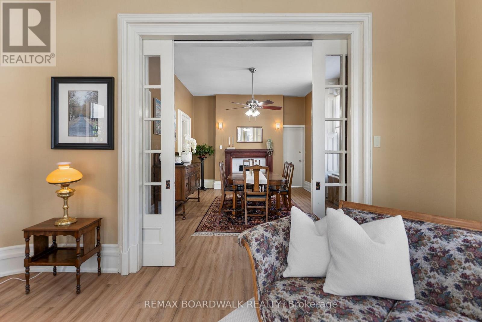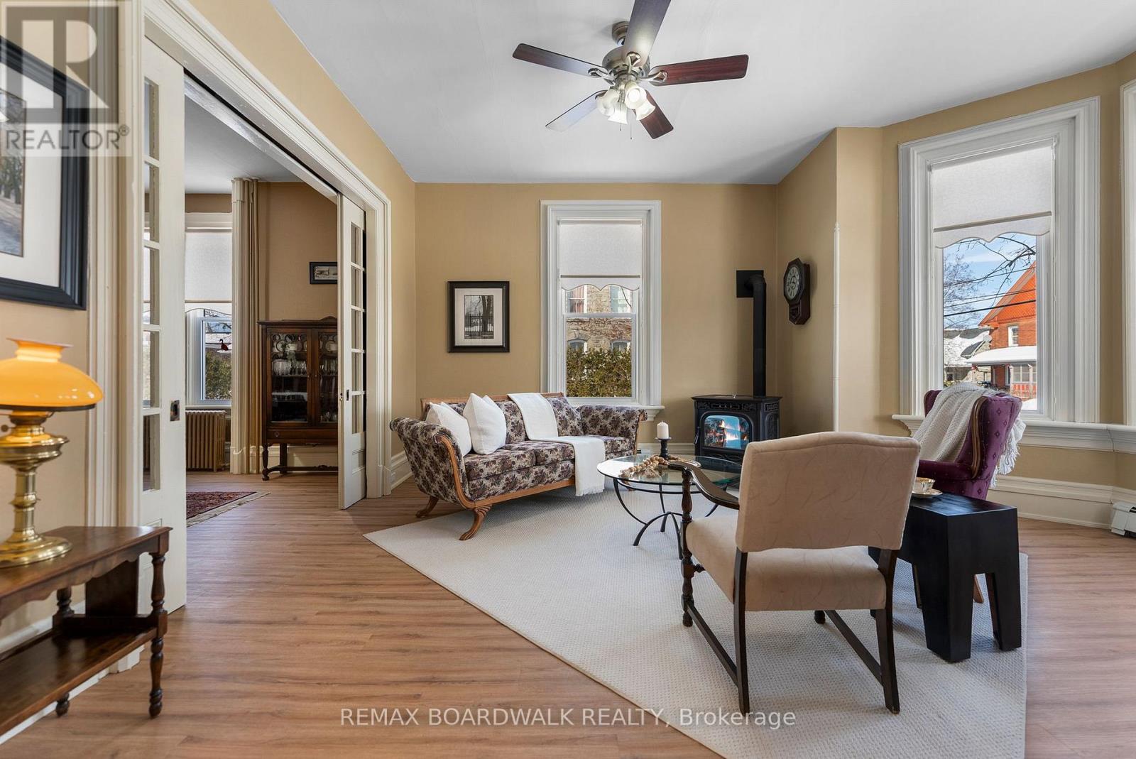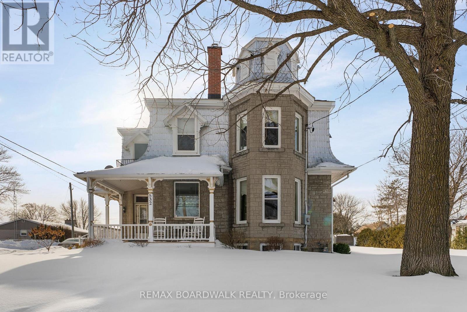 Nestled on a prominent corner lot in the heart of Winchester, this distinguished early-1900s residence offers appx. 4000 sq ft of beautifully preserved character paired with thoughtful modern updates.Originally built for a local doctor, the home reflects a timeless elegance with a stately turret, classic mansard roofline, & inviting front & side porches that enhance its grand curb appeal.Step inside to welcoming rich original wood trim, detailed wainscotting, and craftsmanship that speaks to history. The main level offers an updated kitchen designed for everyday functionality.The formal dining room flows seamlessly from the living room, separated by original pocket doors-perfect for both intimate dinners and larger gatherings A pellet stove anchors the living room, creating a warm and inviting atmosphere.The rear of the home, the doctor's original office has been thoughtfully adapted into a versatile living space featuring a family room w/gas fireplace, 2nd kitchen, updated full bathroom.This additional living quarters ideal for potential in-law suite/rental unit.The 2nd level has original hdwd flooring & wood detail following the main level. One staircase leads to a spacious primary bedroom complete with a comfortable sitting area, two generously sized secondary bedrooms & a den/office space.These rooms share an updated 5 pc bathroom that blends modern convenience with classic style. From the den, a large room presently used as storage that lead to an expansive bonus room above the double car garage.Whether envisioned as a home theatre, fitness studio, games room, or creative workspace, the possibilities here are truly endless! A 2nd staircase on this side of the home leads to a bright laundry room at the rear of the home. Set on a large, beautifully positioned corner lot, this property offers both presence and privacy. With its distinctive architectural features, substantial living space, & rare combination of history & versatility, you will be proud to call home. (id:64974)