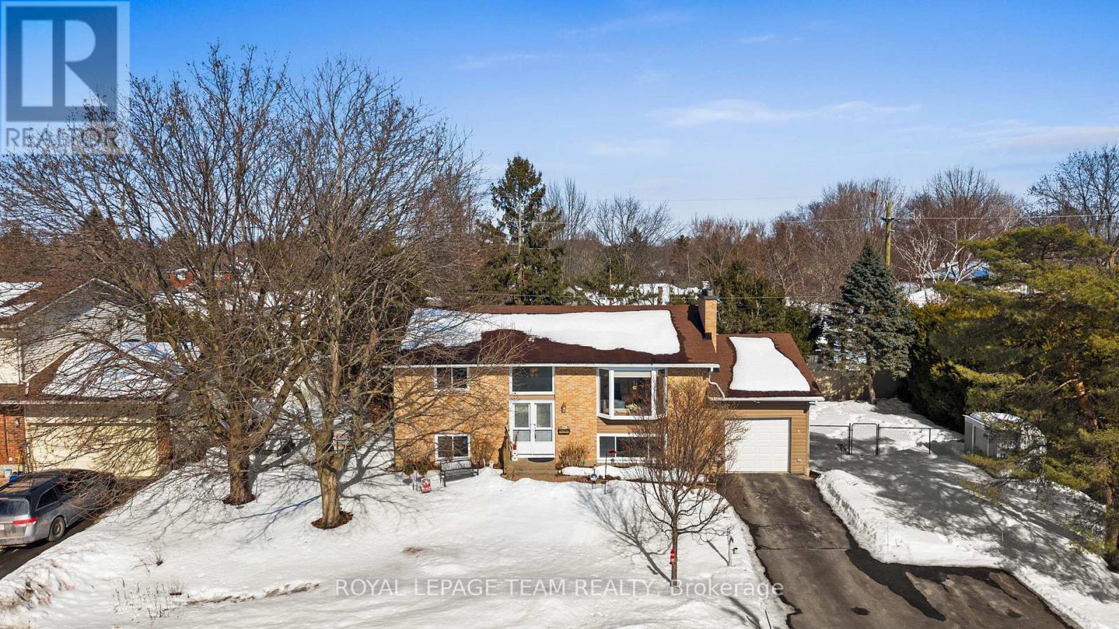 This charming property is nestled in a desirable part of Manotick's North Island, just steps from the Rideau River, scenic trails, parks, and schools, with unique shops and restaurants close by. Filled with natural light, the main level features a sunlit living room with a cozy fireplace and bay window overlooking the quiet, family-oriented front streetscape. The dining area flows seamlessly into the kitchen, featuring neutral white cabinetry and ample workspace. Two bedrooms and a four-piece bathroom complete the main level. The finished lower level offers a recreation room with a fireplace, two additional bedrooms, and a full bathroom, providing versatile space for relaxing or entertaining. Outside, enjoy a private backyard with mature greenery and a sprawling deck, perfect for outdoor living. With its welcoming village atmosphere and inviting neighbourhood, this location offers the perfect blend of peaceful living and everyday convenience. Additional benefits include City Water and Sewer services. Some photographs have been virtually staged/digitally altered. (id:64974)