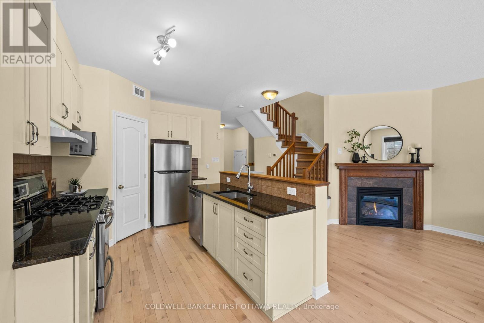 Tucked into the family friendly and sought after Jackson Trails community of Stittsville, this 3 bed 3 bath townhome offers both comfort and space, PLUS the convenience of options. Surrounded by parks (literally right beside one with a rink/soccer field, and the other park with a splash pad is a few minutes walk), scenic pathways, schools, restaurants (Napolis anybody?), cafes, and everyday conveniences like Farm Boy, Loblaws and Home Hardware. The main level showcases a big foyer with handy powder room, new hardwood flooring, granite counters, SS appliances including a gas stove, a pantry (YES A REAL PANTRY!), a cozy gas fireplace and big bright windows looking out onto the back deck and fenced yard. The second level features three generously sized bedrooms, including a large primary with walk-in closet and 4pc ensuite with both a soaker tub and a separate shower you can actually comfortably fit in. Don't forget the upstairs laundry room for added convenience either! The finished lower level is a versatile space with large windows and plenty of room for whatever your heart desires - home gym? gaming area? home theatre? home brewing area? Your call! 534 Cherokee Way is a wonderful opportunity in a fantastic neighbourhood! (id:64974)