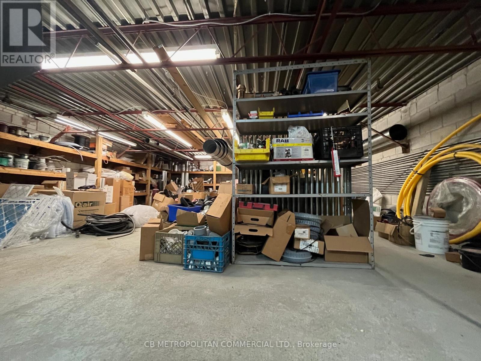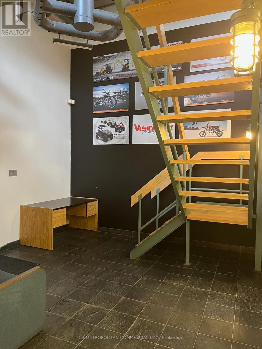 This industrial condominium features a professionally designed interior with upgraded office improvements, including full HVAC, enhanced electrical infrastructure, solid 9' interior doors, four private offices, four washrooms, and four skylights that provide abundant natural light throughout the workspace. Steel structure mezzanine provides additional workstation space. The property is also listed for sale with vendor financing available. (id:64974)