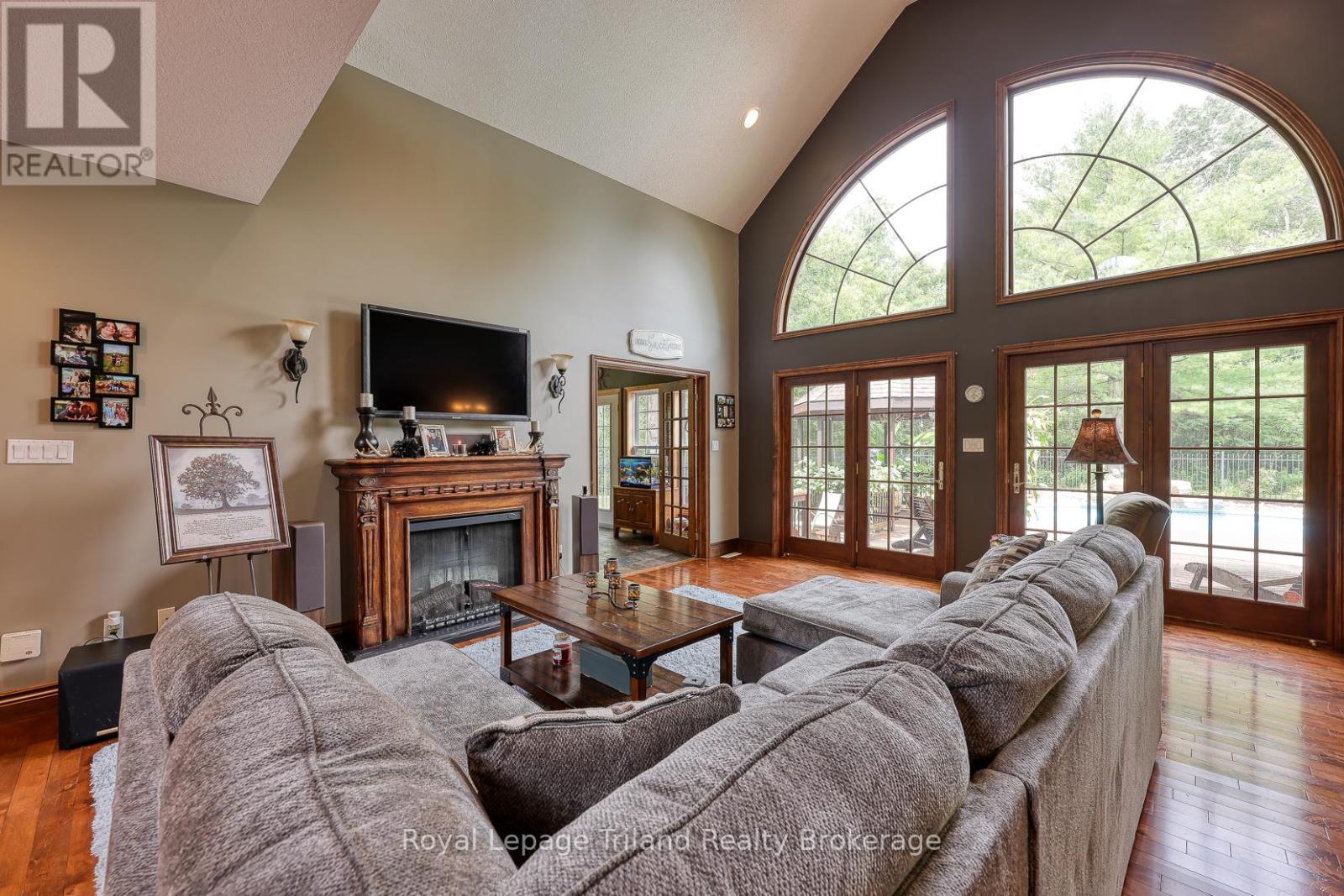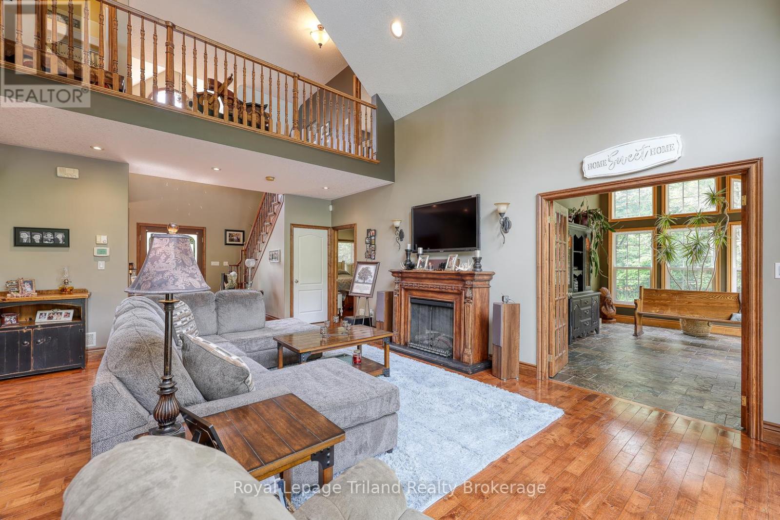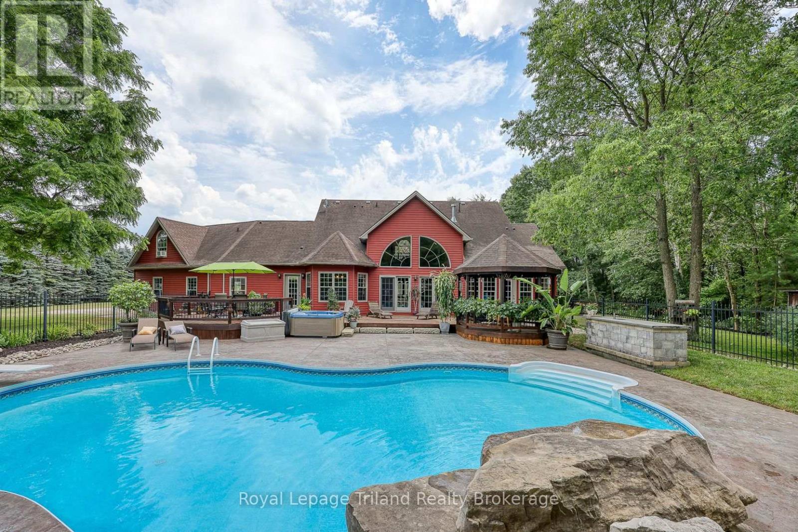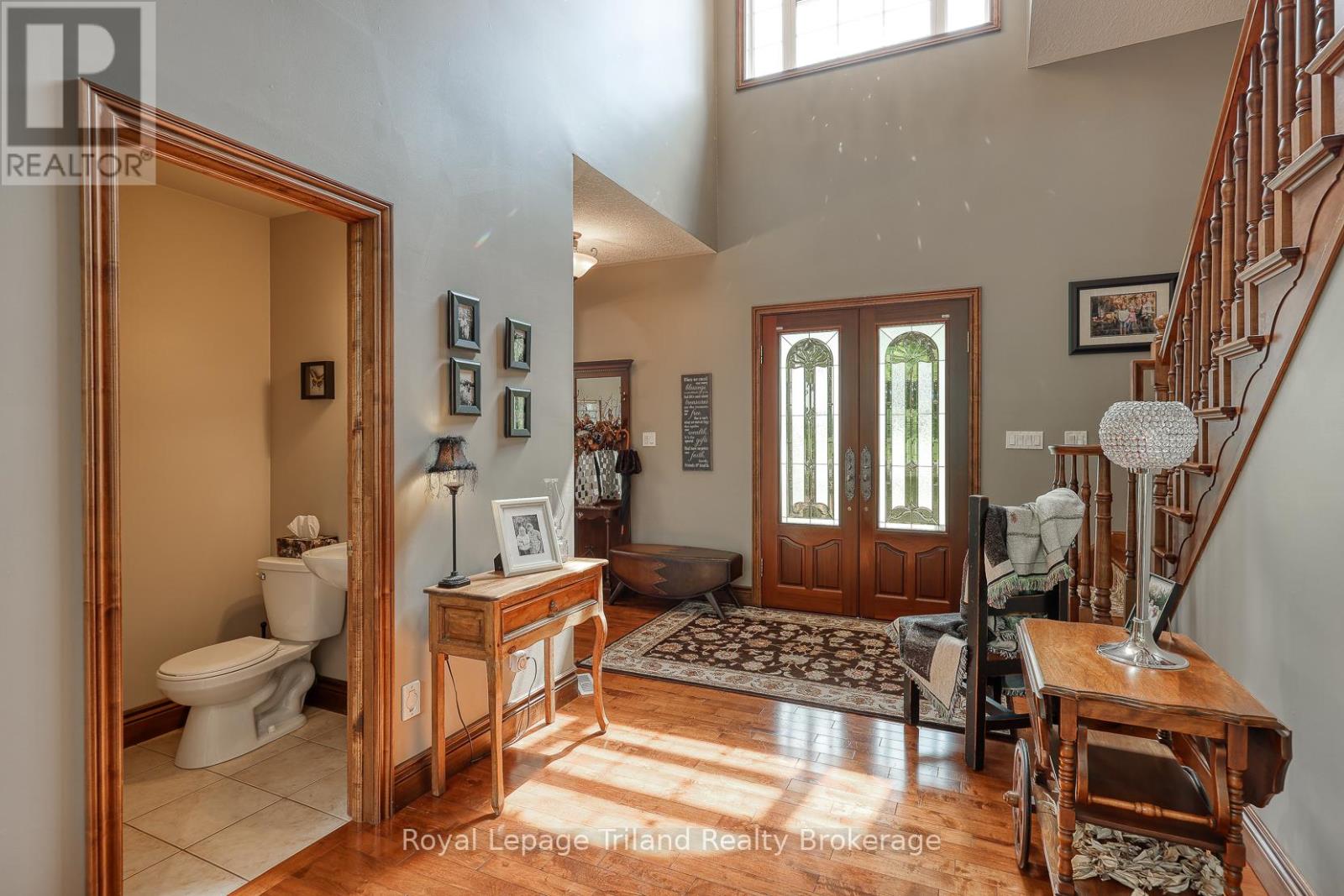 Experience the perfect blend of comfort, sophistication and serenity! Step into this country sanctuary just a few minutes south of Tillsonburg and rest assured you've found your "Home Sweet Home". With a sprawling 1.8 acres, rural panoramic views, a generous covered south facing front porch, mature landscaping, an outdoor oasis and an executive 4 bedroom home with over 3,000 square feet of finished space. Upon entry through the extra tall double doors you are consumed of love from the open concept plan that exudes timeless elegance. Any chef will be impressed by the well designed kitchen accented with granite counters, breakfast nook and a huge island w/ breakfast bar trimmed with modern arches. The Formal Dining Room is adjacent to the Kitchen and large enough for that 8 person farm table you've always wanted and there is already a fireplace present for you! The Great Room is adorned with a fireplace, hardwood flooring and a wall of windows facing your backyard oasis. A sunroom is accessorized with slate flooring, double door entry and access to the backyard. The Primary Suite is complete with a 5pc ensuite consisting of a jetted tub, corner glass shower, double vanity with solid wood cabinetry, a private water closet room and WI closet. Tucked behind the Kitchen is a laundry room with sink, storage & access to the dbl attached garage. A second staircase leads up to a private loft (second) Primary Suite with a 3pc bath. The main staircase welcomes you to the 3rd & 4th bedrooms, a 4pc bath and hallway overlooking the Great Room, Foyer and backyard view! The outdoor oasis must be seen - 18x36 inground salt water pool with rock waterfall (new pool liner September 2025), hot tub, gazebo, flagstone patio, expansive deck, outdoor stone wet bar plus there is lots of grass area, fire pit & a garden shed. This home offers endless opportunities for hosting gatherings or simply unwinding in its peaceful, mature country surroundings! (id:64974)