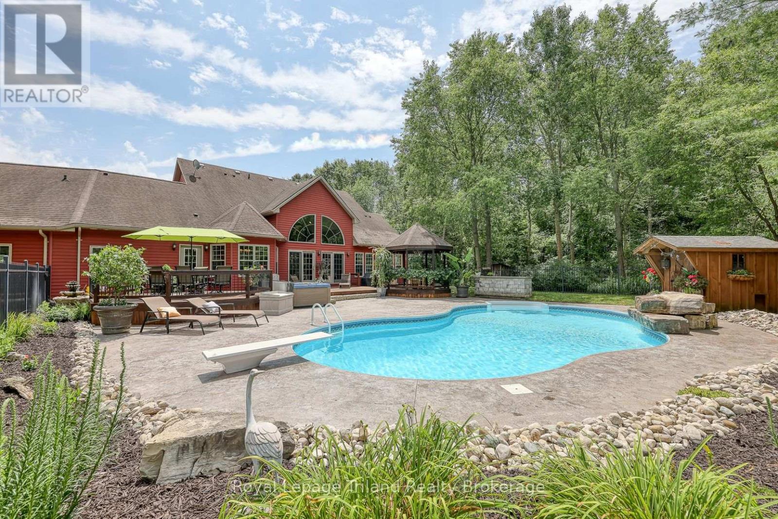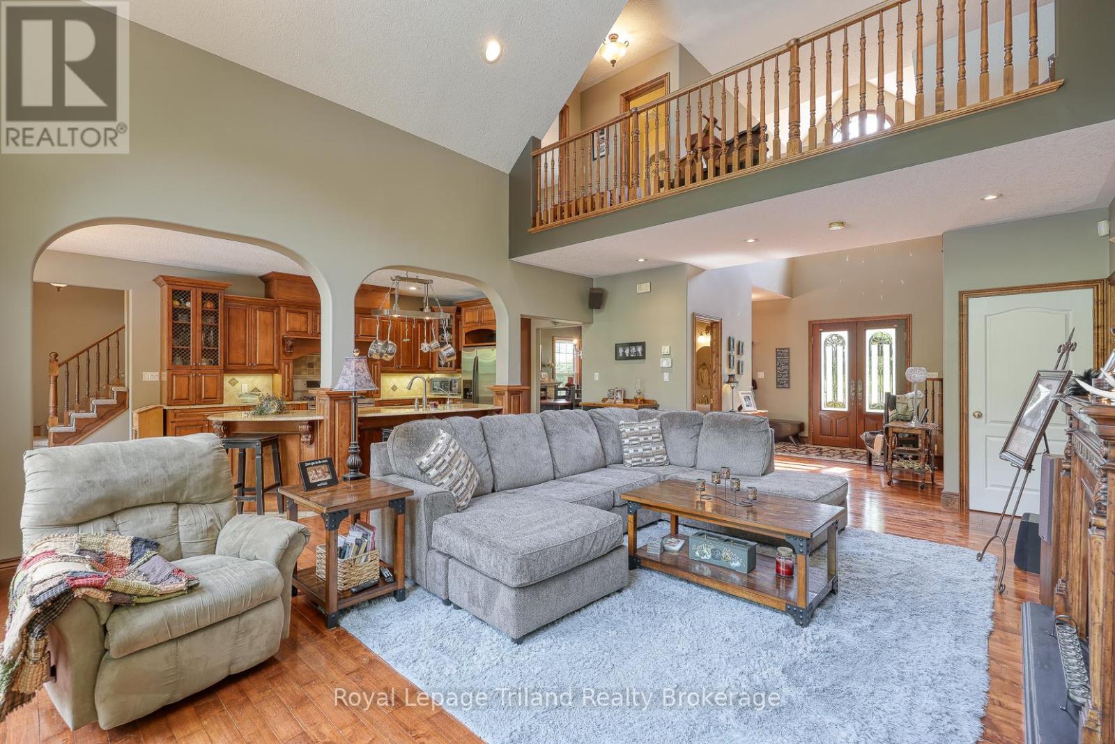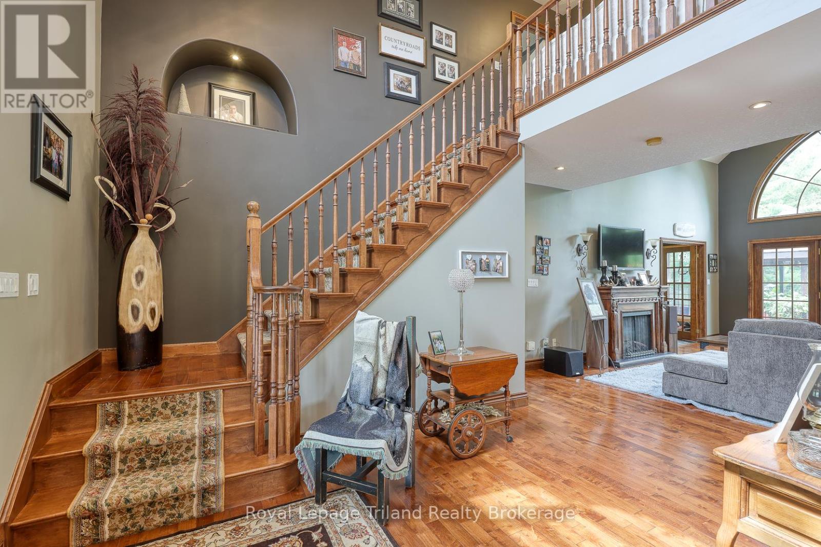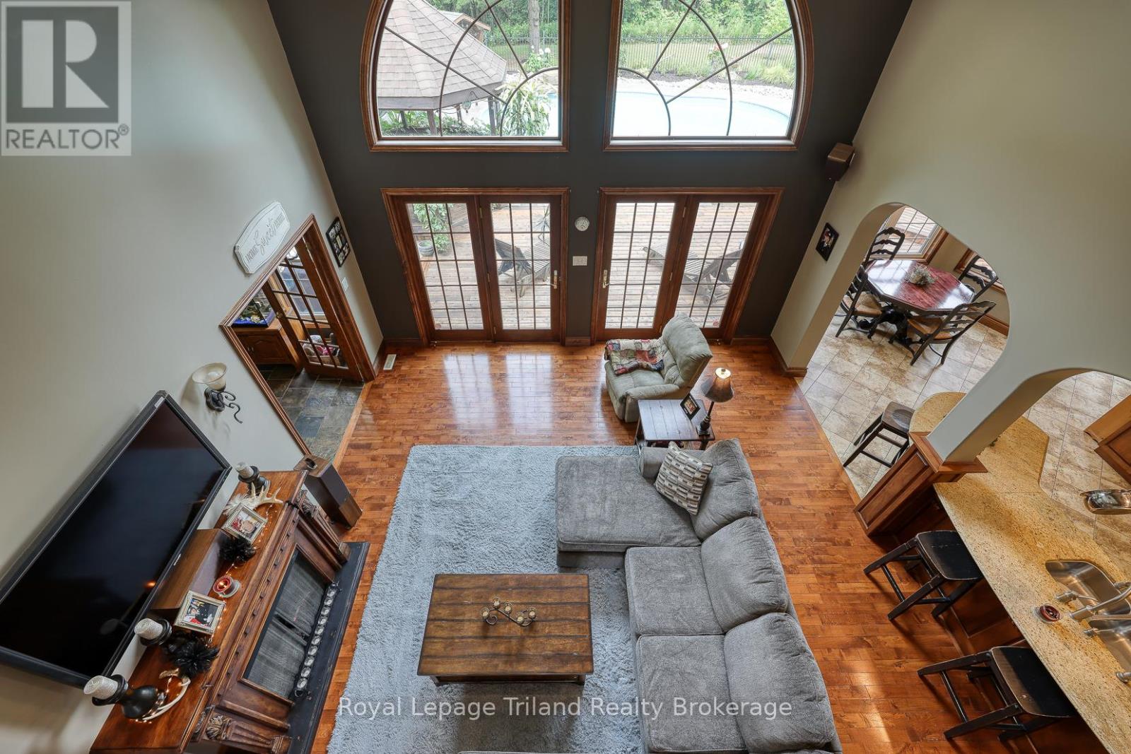 Experience the perfect blend of comfort, sophistication and serenity! Step into this country sanctuary just a few minutes south of Tillsonburg and rest assured you've found your "Home Sweet Home". With a sprawling 1.8 acres, rural panoramic views, a generous covered south facing front porch, mature landscaping, an outdoor oasis and an executive 4 bedroom home with over 3,000 square feet of finished space. Upon entry through the extra tall double doors you are consumed of love from the open concept plan that exudes timeless elegance. Any chef will be impressed by the well designed kitchen accented with granite counters, breakfast nook and a huge island w/ breakfast bar trimmed with modern arches. The Formal Dining Room is adjacent to the Kitchen and large enough for that 8 person farm table you've always wanted and there is already a fireplace present for you! The Great Room is adorned with a fireplace, hardwood flooring and a wall of windows facing your backyard oasis. A sunroom is accessorized with slate flooring, double door entry and access to the backyard. The Primary Suite is complete with a 5pc ensuite consisting of a jetted tub, corner glass shower, double vanity with solid wood cabinetry, a private water closet room and WI closet. Tucked behind the Kitchen is a laundry room with sink, storage & access to the dbl attached garage. A second staircase leads up to a private loft (second) Primary Suite with a 3pc bath. The main staircase welcomes you to the 3rd & 4th bedrooms, a 4pc bath and hallway overlooking the Great Room, Foyer and backyard view! The outdoor oasis must be seen - 18x36 inground salt water pool with rock waterfall (new pool liner September 2025), hot tub, gazebo, flagstone patio, expansive deck, outdoor stone wet bar plus there is lots of grass area, fire pit & a garden shed. This home offers endless opportunities for hosting gatherings or simply unwinding in its peaceful, mature country surroundings! (id:64974)