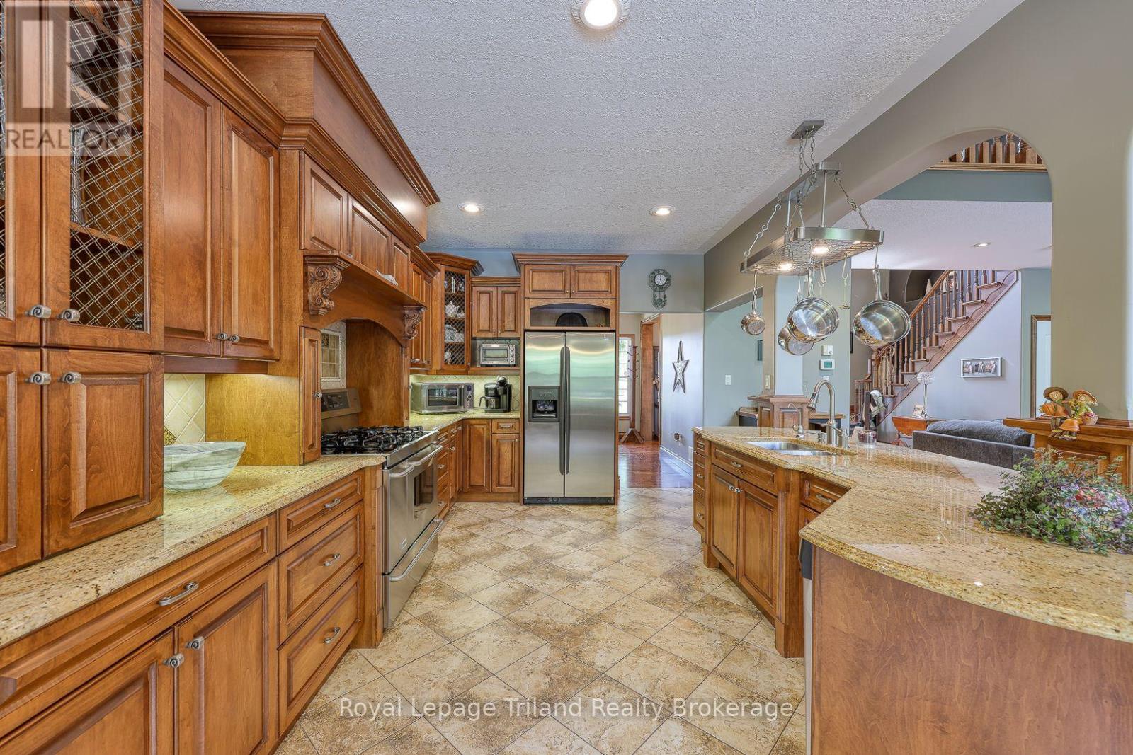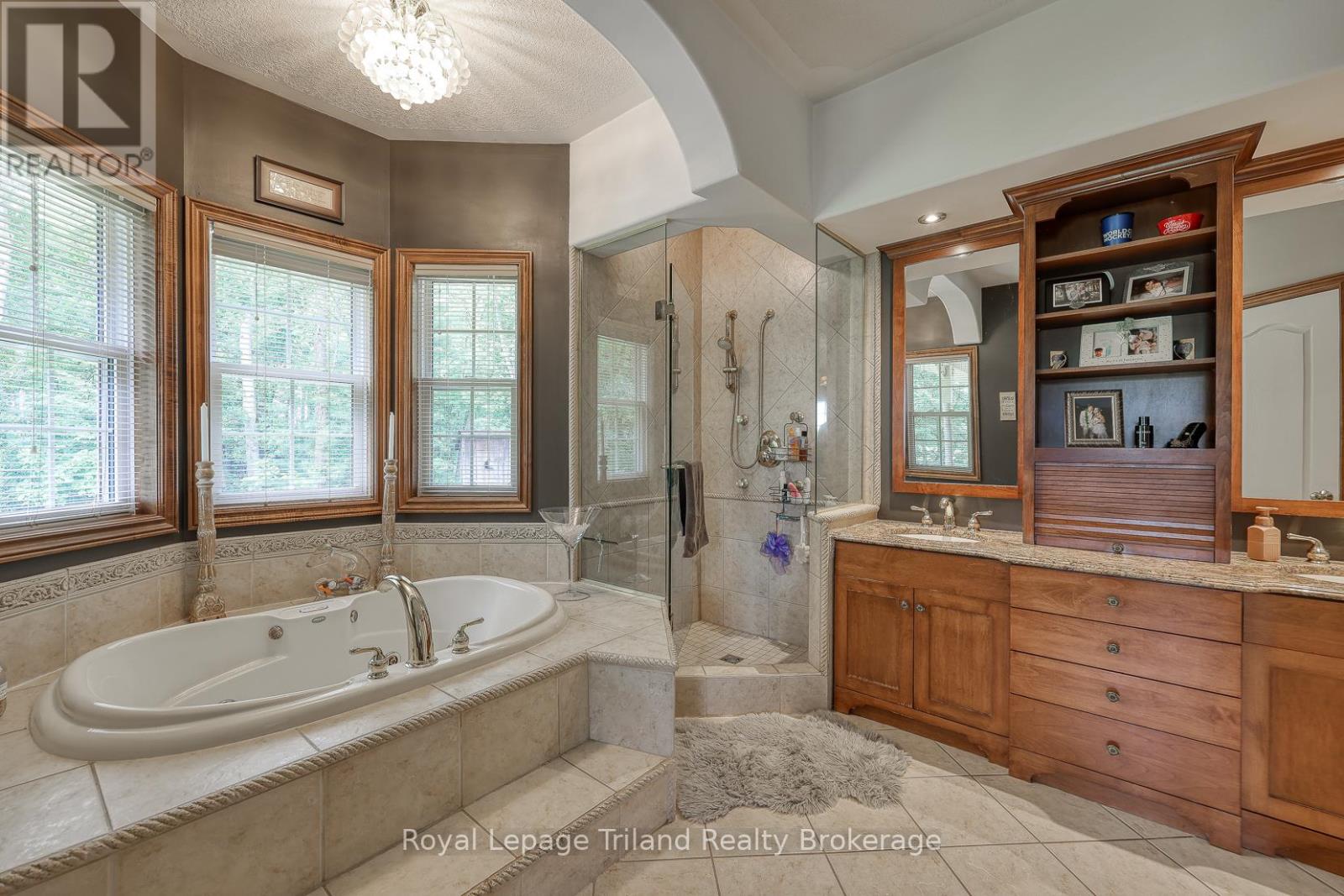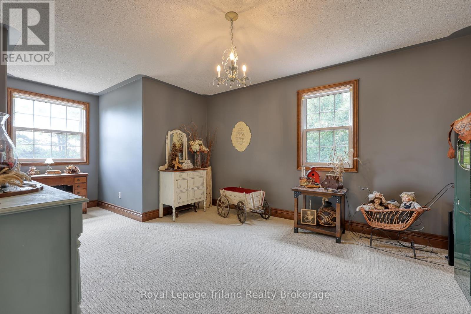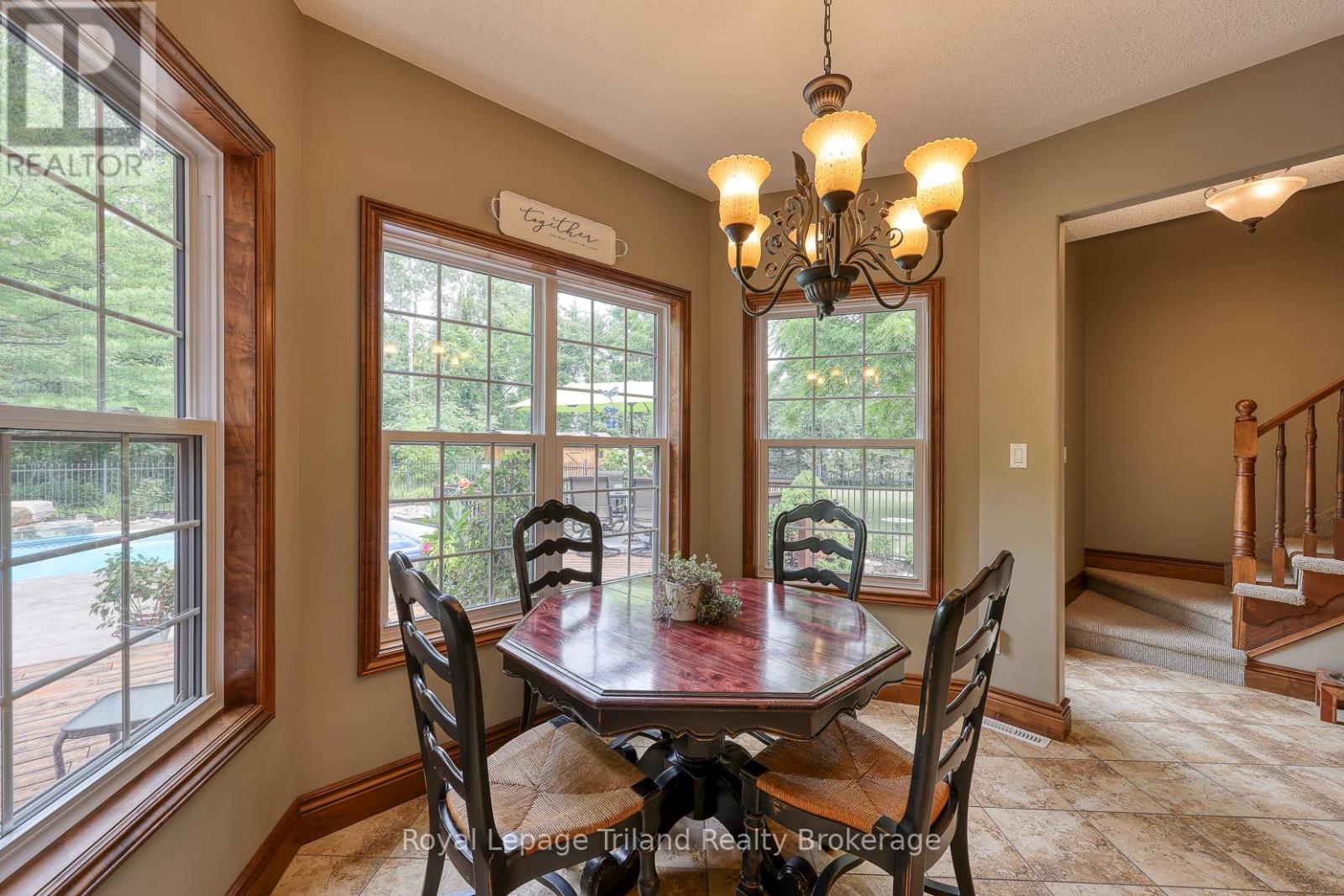 Experience the perfect blend of comfort, sophistication and serenity! Step into this country sanctuary just a few minutes south of Tillsonburg and rest assured you've found your "Home Sweet Home". With a sprawling 1.8 acres, rural panoramic views, a generous covered south facing front porch, mature landscaping, an outdoor oasis and an executive 4 bedroom home with over 3,000 square feet of finished space. Upon entry through the extra tall double doors you are consumed of love from the open concept plan that exudes timeless elegance. Any chef will be impressed by the well designed kitchen accented with granite counters, breakfast nook and a huge island w/ breakfast bar trimmed with modern arches. The Formal Dining Room is adjacent to the Kitchen and large enough for that 8 person farm table you've always wanted and there is already a fireplace present for you! The Great Room is adorned with a fireplace, hardwood flooring and a wall of windows facing your backyard oasis. A sunroom is accessorized with slate flooring, double door entry and access to the backyard. The Primary Suite is complete with a 5pc ensuite consisting of a jetted tub, corner glass shower, double vanity with solid wood cabinetry, a private water closet room and WI closet. Tucked behind the Kitchen is a laundry room with sink, storage & access to the dbl attached garage. A second staircase leads up to a private loft (second) Primary Suite with a 3pc bath. The main staircase welcomes you to the 3rd & 4th bedrooms, a 4pc bath and hallway overlooking the Great Room, Foyer and backyard view! The outdoor oasis must be seen - 18x36 inground salt water pool with rock waterfall (new pool liner September 2025), hot tub, gazebo, flagstone patio, expansive deck, outdoor stone wet bar plus there is lots of grass area, fire pit & a garden shed. This home offers endless opportunities for hosting gatherings or simply unwinding in its peaceful, mature country surroundings! (id:64974)