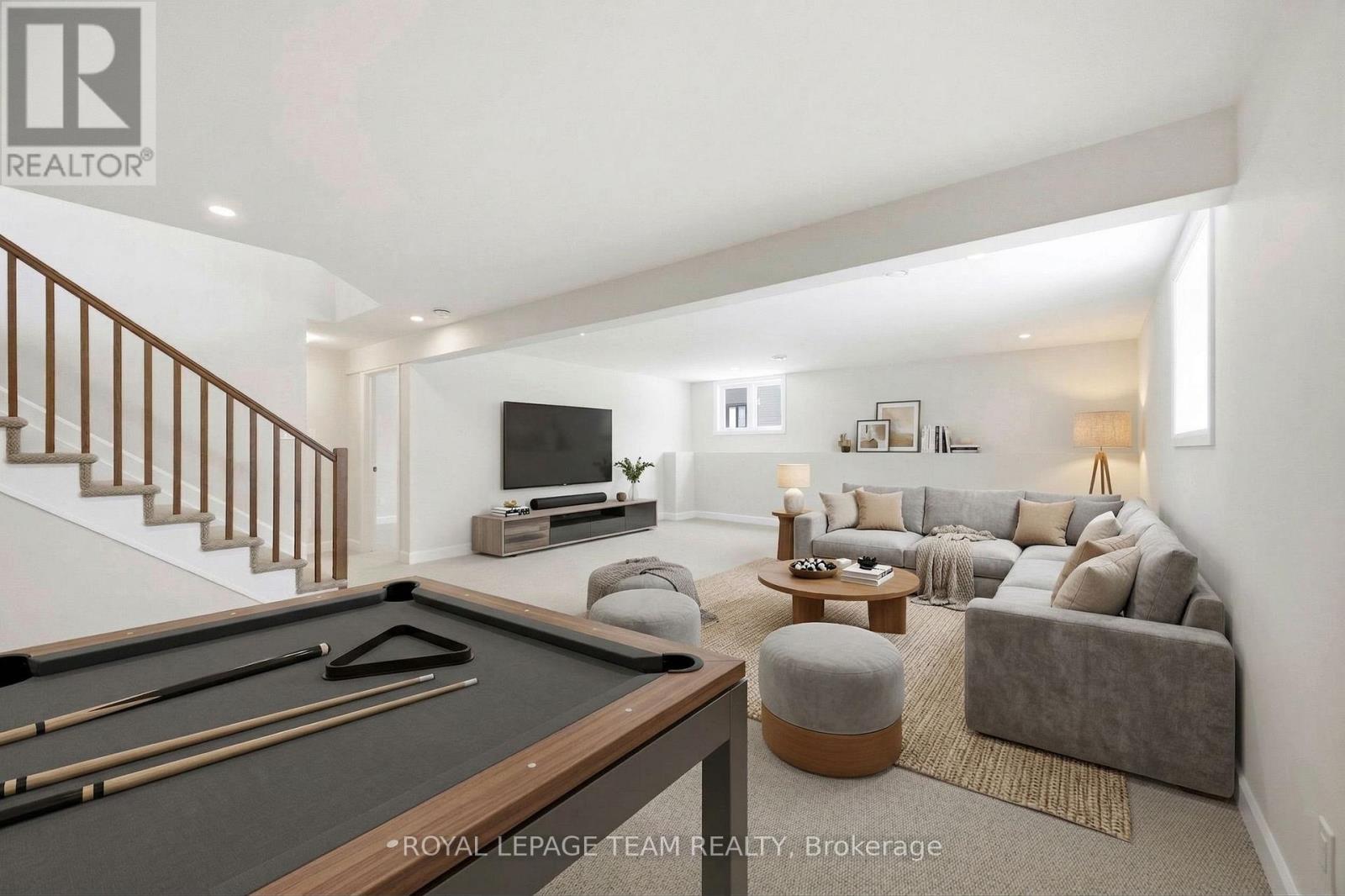 Welcome to the Sawgrass Model by EQ Homes, where thoughtful design meets elevated living in the heart of the sought-after eQuinelle community. This beautifully appointed bungalow offers approximately 2,226 sq ft of finished living space, crafted with quality craftsmanship, refined finishes, and lasting comfort in mind. The main level features a bright, open-concept layout anchored by a stunning great room with vaulted ceilings and a cozy gas fireplace, an inviting space for both everyday living and effortless entertaining. A well-designed kitchen with quartz countertops, chimney hood-fan undermount sinks, and upgraded finishes flows seamlessly into the dining area, creating a space that is as functional as it is stylish. A versatile front den provides the perfect space for a home office or quiet retreat. The private primary suite offers a walk-in closet and a well-appointed ensuite, while a second bedroom and full bath complete the main floor. The welcoming front porch extends across the home, adding charm and curb appeal, offering a charming place to unwind, while the double car garage adds everyday convenience. The finished lower level expands your living space with a large recreation room, third bedroom, and an additional full bathroom, ideal for guests, extended family, or flexible living arrangements. Set within eQuinelle, a master-planned golf course community known for its exceptional lifestyle, residents enjoy access to scenic walking trails, preserved green space, and a vibrant Residents Club featuring fitness facilities, gathering spaces, and year-round social opportunities. With its strong sense of community, beautifully maintained surroundings, and proximity to Kemptville's amenities and Ottawa, eQuinelle offers a lifestyle that is both active and refined. A quality-built home in a community designed for connection, comfort, and effortless living. (id:64974)