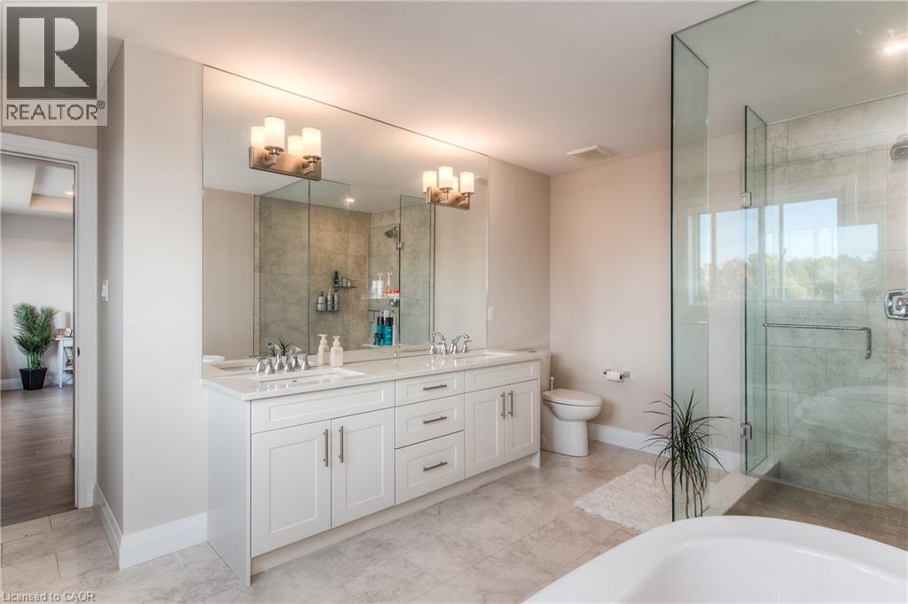 Executive 2 yr old home with loads of upgrades in the sought after Steeple Chase subdivision by Cook Homes in Upper Beechwood, Waterloo. This double car garage Model boosts open concept layout with luxurious finishes including 9' ceiling, carpet free main level with spacious mud room off the garage, spacious living room with gas fireplace, bright windows & gleaming engineered flooring. The kitchen is equipped with SS appliances including built in Oven/Microwave, gas cooktop, modern range exhaust, double side fridge, large centre island with double sinks, amble cabinets, stunning backsplash & quartz counter tops. Upgraded hardwood staircase with beautiful hardwood banisters & high quality runner leading to 2nd level beautiful family room meant for work from home designated area or late night gathering. The M/bedroom with tray ceiling, large bright & cheerful windows has stunning luxurious ensuite bath with 2-person glass enclosed shower, free stand tub and his & hers sinks with quartz countertop. 2 extra bedrooms with a serving spacious main bath. Laundry is on 2nd level equipped with high quality SS washer/dryer. Basement is a separate unit leased separately Near schools (walking distance to KW Bilingual School), Restaurants, medical centre, shopping, movie theatre & all amenities. Shows AAA and ready for occupancy. (id:64974)