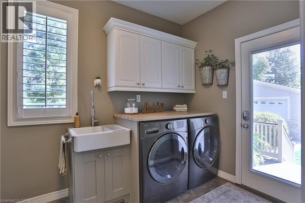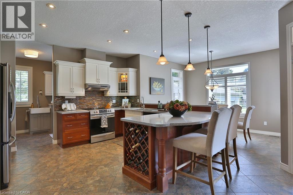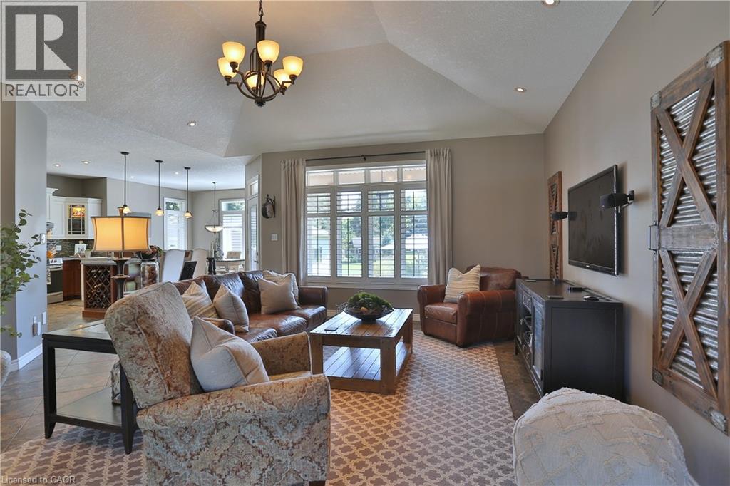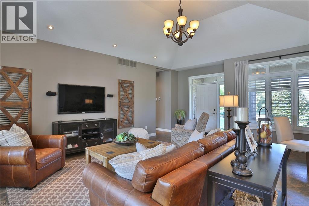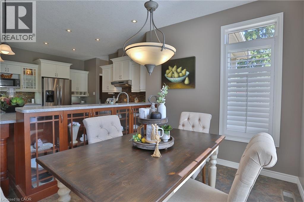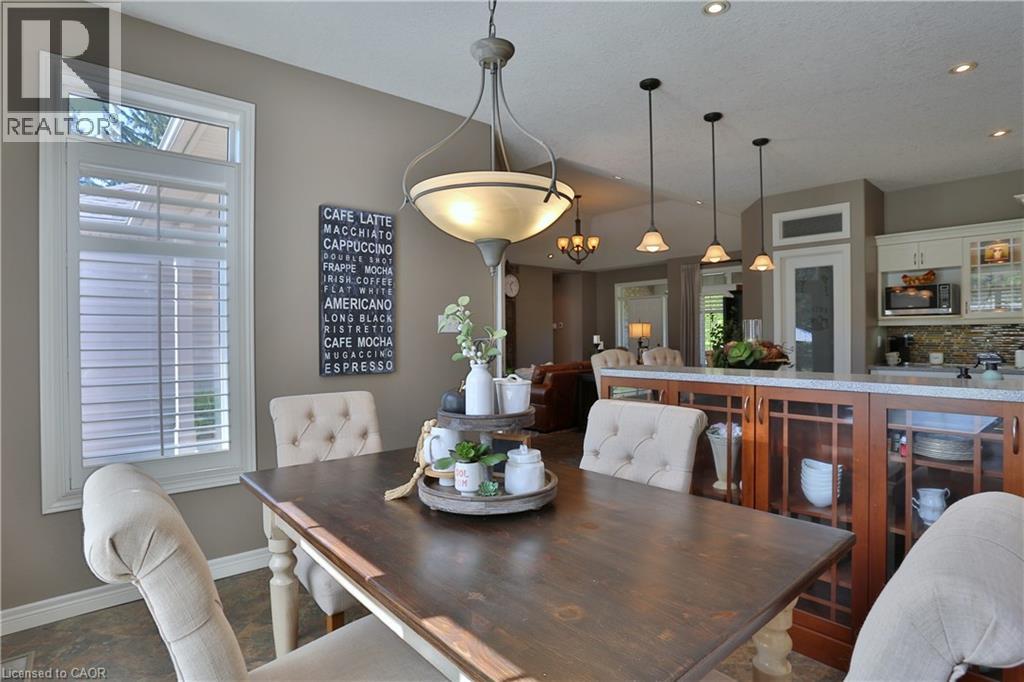 Welcome to this beautifully maintained Bungalow in the charming village of Glen Morris, offering the perfect blend of space, comfort, and versatility for modern living. Set on just over half an acre, this property is surrounded by mature trees and features a newly paved driveway with ample parking, along with both a 2-car attached garage and an impressive 24' x 40' drive-through detached garage with heated floors—ideal for hobbyists, contractors, or extra storage. The main floor offers a bright and spacious layout with 9’ ceilings and a stunning vaulted ceiling in the living room, enhanced by elegant transom windows that fill the space with natural light. You’ll find 3 generously sized bedrooms, including a large primary suite complete with a walk-in closet and private en-suite bathroom featuring heated floors for added comfort. Step outside to enjoy the private backyard retreat, featuring a deck and ground level interlocking patio—perfect for entertaining or relaxing while taking in the peaceful surroundings. The fully finished basement is exceptionally well-suited for extended family or multi-generational living, offering a direct walk up entrance, 3 additional bedrooms, bathroom, and a kitchenette. Located in a quiet, family-friendly community with a small-town feel, this property offers the space you want with the flexibility you need with over 3500 finished SqFt. A rare opportunity to enjoy country-style living with all the conveniences of a thoughtfully designed home. (id:64974)