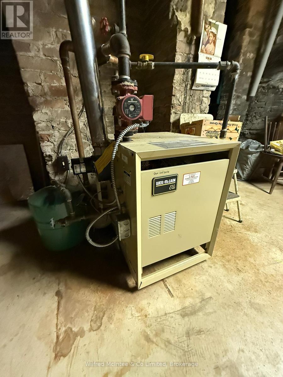 This incredible Victorian home is filled with history showcasing stunning architecture, regal finishes & details throughout, including 4 original marble fireplace showpieces! The majestic solid brick home was built in 1880 and welcomes you into it's grand foyer with soaring, 11.5' ceilings and a beautiful staircase, the traditional parlour and part of what once was a lavish ballroom, now used for formal dining. Beyond that, the back living quarters houses the home's kitchen, a main floor bedroom, den, office & 4pc.bath which could easily be converted into a sizeable in law suite. Ideally set up for it's previous vocation as a beautiful bed & breakfast, the second floor provides an additional 4 bedrooms, 2 with their own ensuites, and a spacious 4 pc. bath, while the third floor offers a private and fully functional loft with yet another spacious bedroom and 3 pc. ensuite, and a sitting room overlooking the south side of the property, reminiscent of a turret in castle. The unfinished, yet dry, full basement offers a cold room, workbench and endless storage with possibilities for a games room and more! Outside, this impressive 1.45 acre property features a huge 52' x 62' shop with attached carriage house and endless possibilities and a long, paved driveway with tons of parking availability. The yard is beautifully treed providing privacy and shade as well as room to roam and enjoy!! Surrounded by the peaceful village of Paisley where the Saugeen & Teeswater Rivers meet, kayaking, trails and unique shops invite you to be a tourist in your own hometown, you will not want to miss your chance for this incredible, historical property. Historical designation not in place. Central vac, Generac generator, natural gas boiler, radiant heat, water softener & water heater owned. (id:64974)