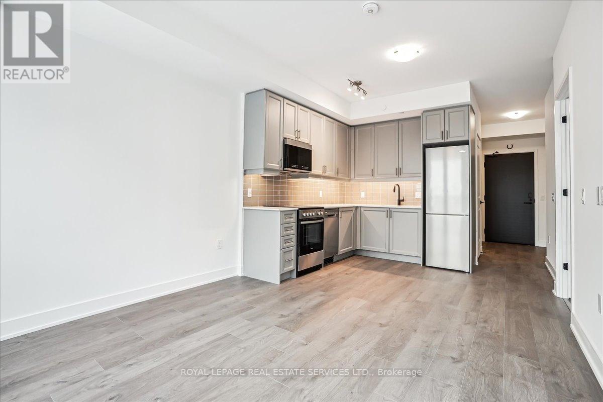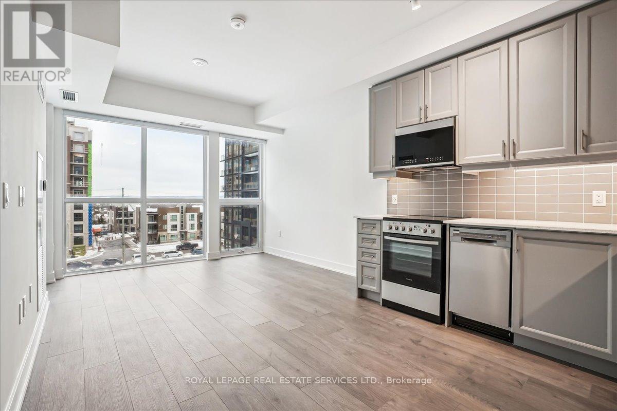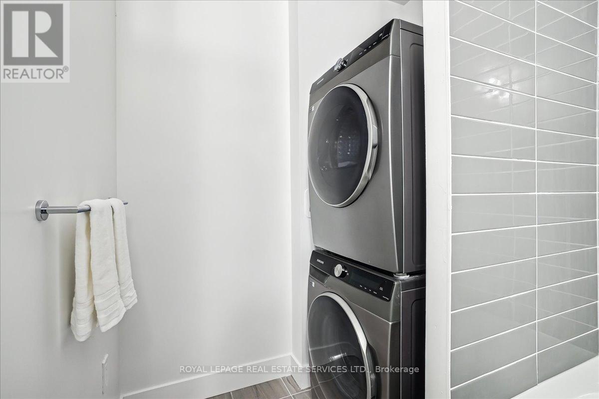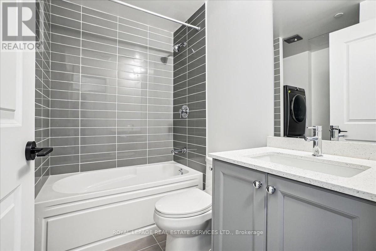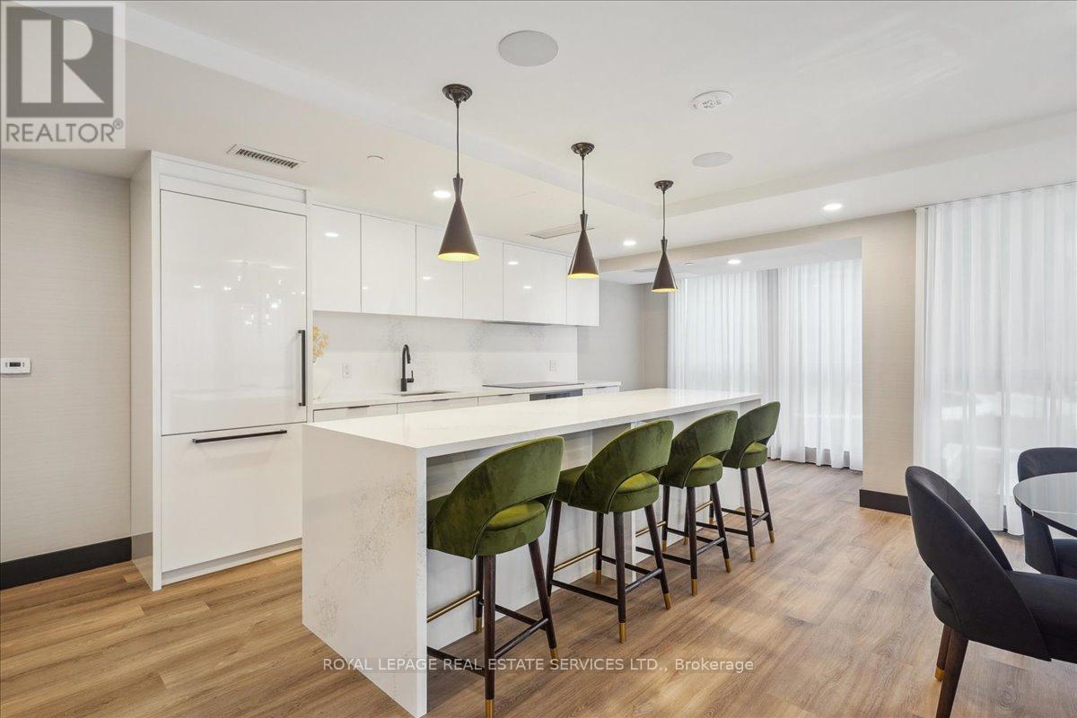 Welcome to Fernbrook Resort-Style NUVO Condo with a superior balcony view! Step into luxury w this extensively updated, 1-bedroom + DEN, 2-bathroom condo! Approx. 600 sq. ft., this stunning unit features high-end finishes, incl 9' smooth ceilings, wide plank laminate flooring, matte black hardware, & 5" baseboards. The open-concept great room & kitchen offer a perfect space for both relaxing & entertaining. Step out onto your private west-facing balcony overlooking the beautifully landscaped condo greenery. An ideal spot to enjoy your morning coffee or the sunset views. Chef's Kitchen boasts grey-toned cabinetry w extended uppers, Under valance lighting, Gorgeous stone countertops & subway tile backsplash, 4 high-end stainless steel appliances incl fridge, stove, dishwasher, microwave. Bedroom w/ large windows for natural light & Private 3-pc ensuite featuring stone countertops & a sleek glass shower. Large versatile den w frosted glass sliding doors, perfect as an office/additional bedroom. 4-pc main bathroom w stone countertops, tile floors, & in-suite washer/dryer. Smart home technology w keyless entry, Ecobee Smart Thermostat w built-in Alexa. 1 parking spot & 1 locker. Resort-Style Amenities incl Rooftop social lounge w stunning views, Resistance pool for a relaxing swim, Party & media room, ideal for gatherings & events, Fully-equipped fitness center w Peloton bikes, Putting green, basketball, & pickleball courts, Community gardens, bike, & pet washing stations & a Car wash station for your convenience. Prime location close to top-rated schools, shopping, dining, Oakville Hospital, Sixteen Mile Complex, & public transit. Easy access to major highways & scenic hiking trails. AAA tenants. Tenant Requirements incl Credit check, Proof of income (pay stubs, T4, letter of employment, etc.), Rental application, References required. Non-smokers (id:64974)