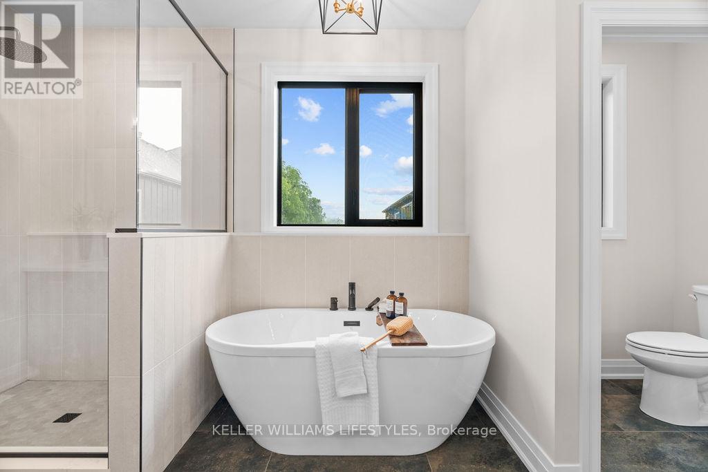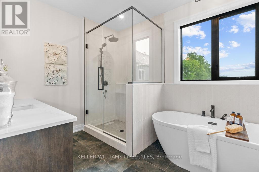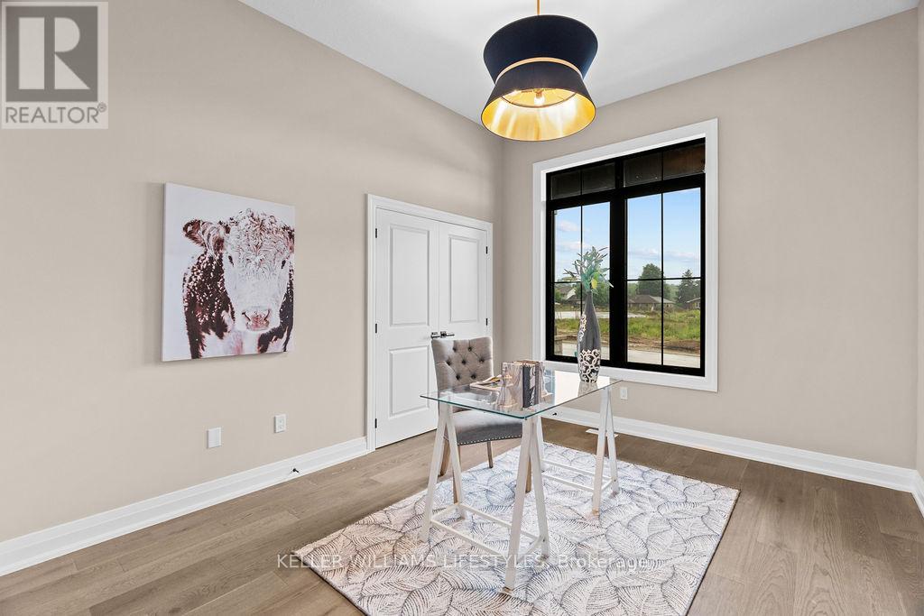 Step into the Rivera, a 2,462 sqft bungalow in Crossfield Estates that combines modern elegance with everyday comfort. Designed for functionality & style, this home offers 4 beds, including a flexible space for a home office, and 2.5 baths. The heart of the home is the expansive great room, featuring soaring ceilings, custom built-ins, and a cozy gas fireplace. The gourmet kitchen is a chefs dream, with quartz countertops, a walk-in pantry, and a breakfast bar. Retreat to the luxurious primary suite with a spa-inspired ensuite featuring a freestanding tub, glass shower, and walk-in closet. Thoughtful details like a laundry/mudroom and oversized garage add to its practicality. Outdoor living is easy with covered porches, ideal for relaxing or entertaining. With high-end finishes, the Rivera offers sophistication and everyday ease. Other models and lots available. Price includes HST. Property tax & assessment not set. Hot water tank is a rental. To be built, being sold from floor plans. (id:64974)