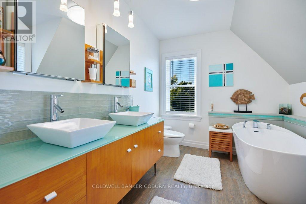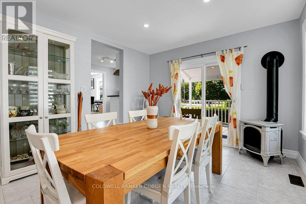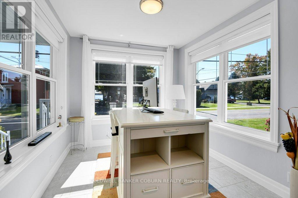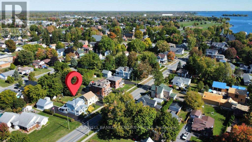 54 Lakeshore Drive - This beautifully restored Edwardian home, built in 1910, has been thoughtfully updated with exceptional attention to detail while preserving its period charm. The main floor offers a modern kitchen, a dining room/sunroom with access to a spacious covered Trex porch, a three-piece bath, a west-facing den, a second sunroom with river views, and a bright living room. Both the dining/sunroom and living room feature gas fireplaces, creating warm and inviting gathering spaces. The upper level includes three bedrooms, an open gallery, and a four-piece bath. The renovated basement is warm, dry, and highly functional-ideal for exercise, hobbies, or additional storage. Exterior of home features Hardie siding, updated windows & doors as well as roof shingles. Outdoors, a newly constructed, period-appropriate two-car garage includes a storage loft. The expansive driveway accommodates up to eight vehicles and is finished with paving-stone edging. The lower deck features a retractable awning, natural-gas BBQ hookup, hot tub, and a 240-volt outlet. A garden shed provides extra storage, while a Wi-Fi-controlled irrigation system keeps the lawn lush throughout the summer. Smart-home features include a Nest thermostat, Dekco security cameras, discreet exterior lighting, and extensive Bluetooth/Wi-Fi control of lighting, HVAC, and irrigation. Located in the historic village of Morrisburg-one of the St. Lawrence River's early Loyalist settlements-this home enjoys a setting known for its rich heritage, riverside beauty, and welcoming community. The river, shopping, banks, restaurants, parks, beach, boat launch and dock, medical and dental clinics, golf, curling club, arena, library, and the Upper Canada Playhouse are all within a short walk or bike ride. Explore the virtual tour, photos, drone imagery, and floor plans to fully appreciate this exceptional property. (id:64974)
