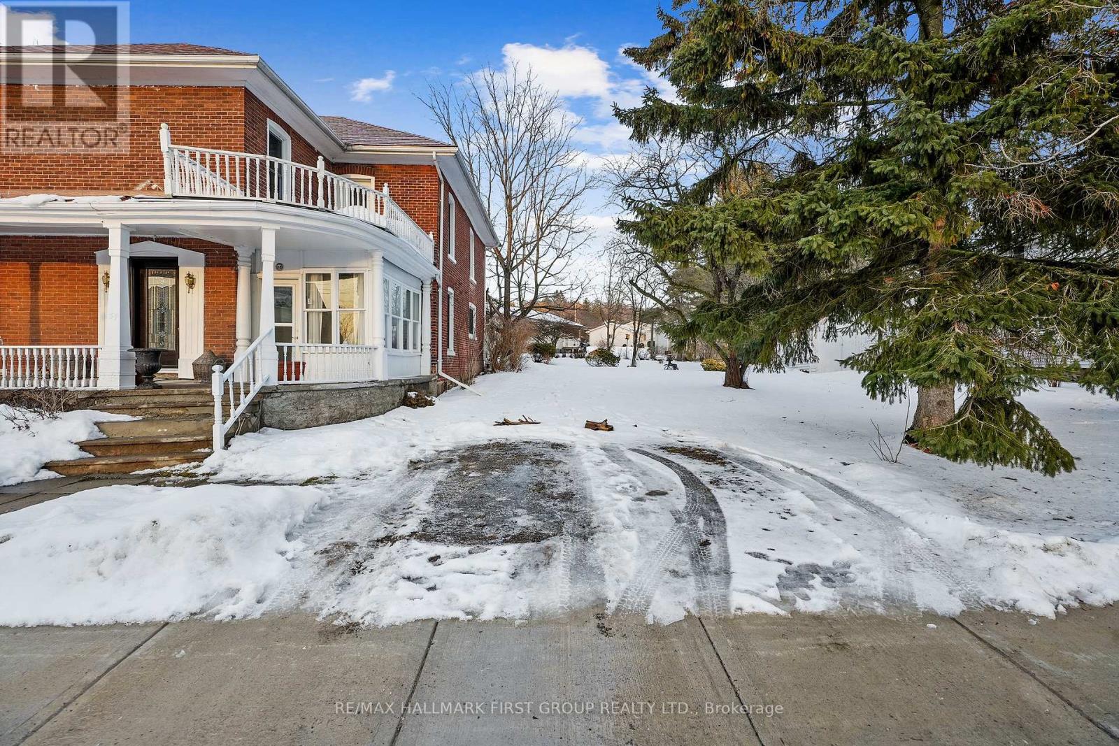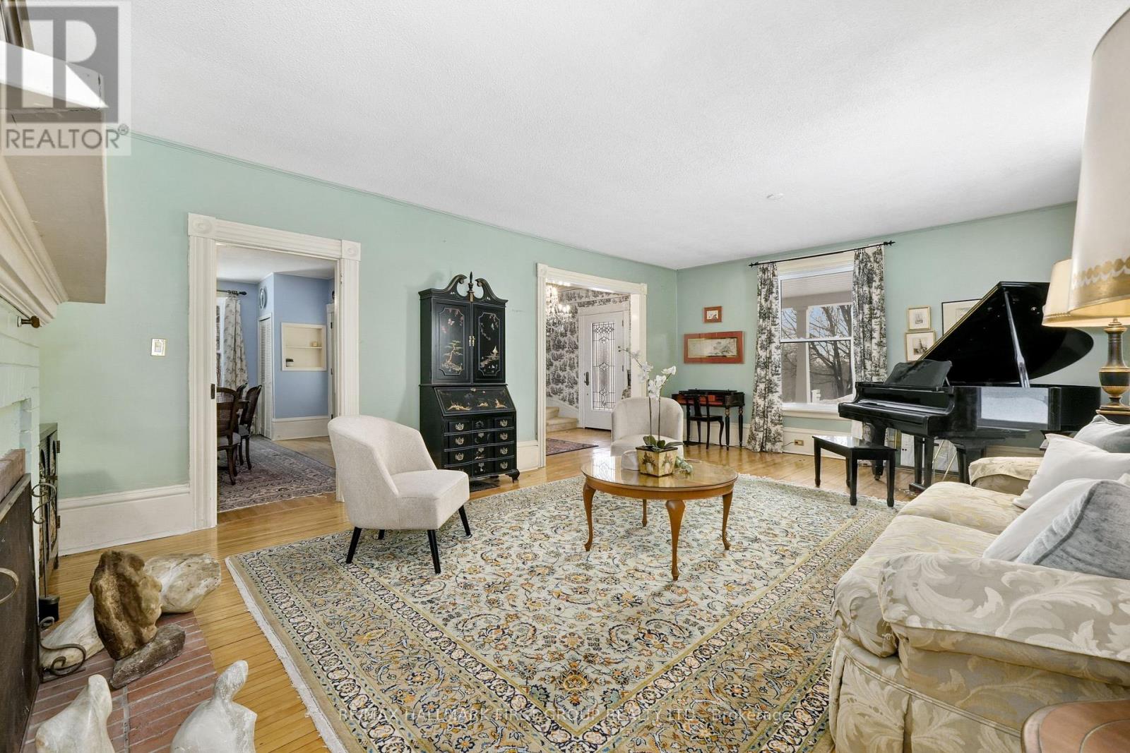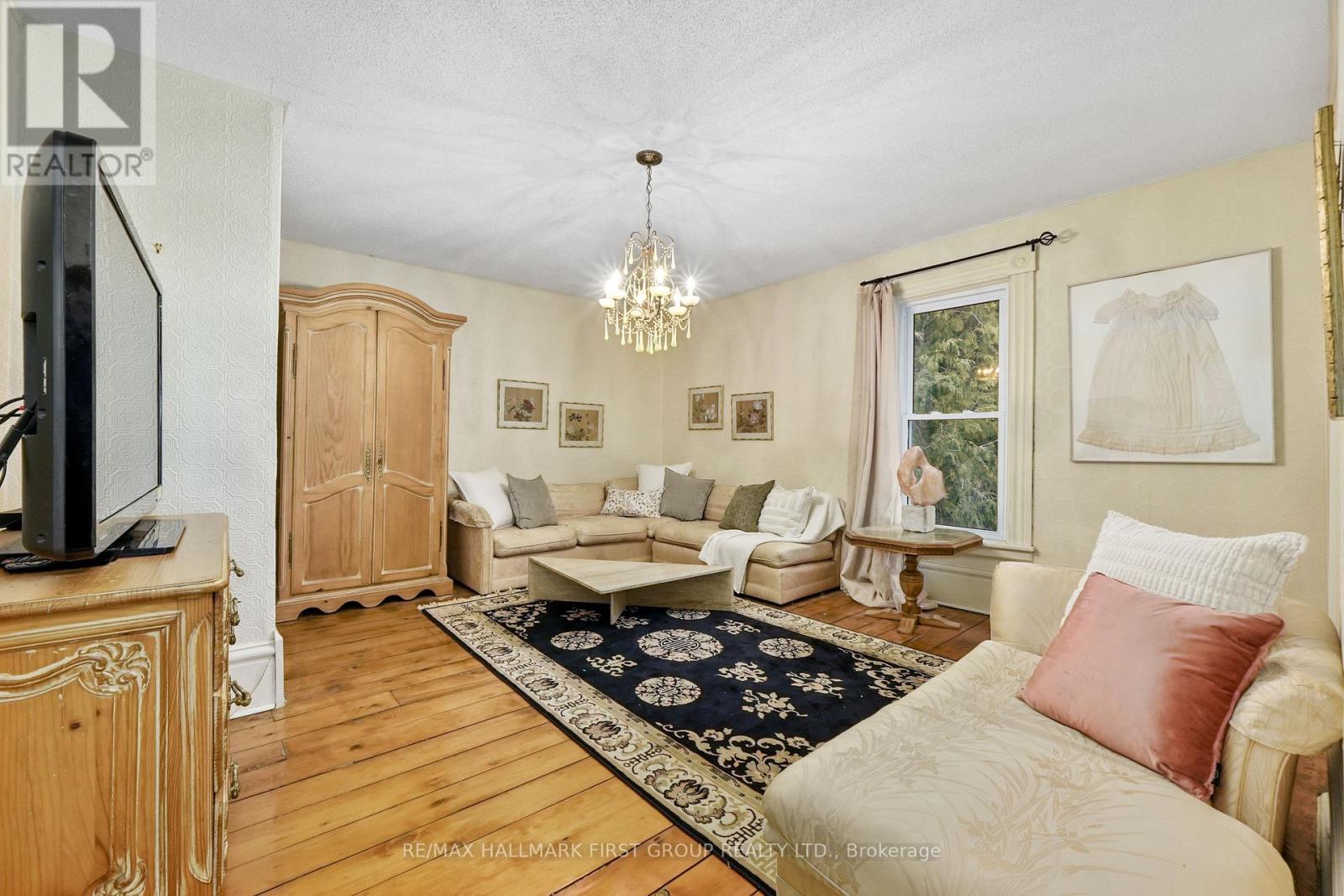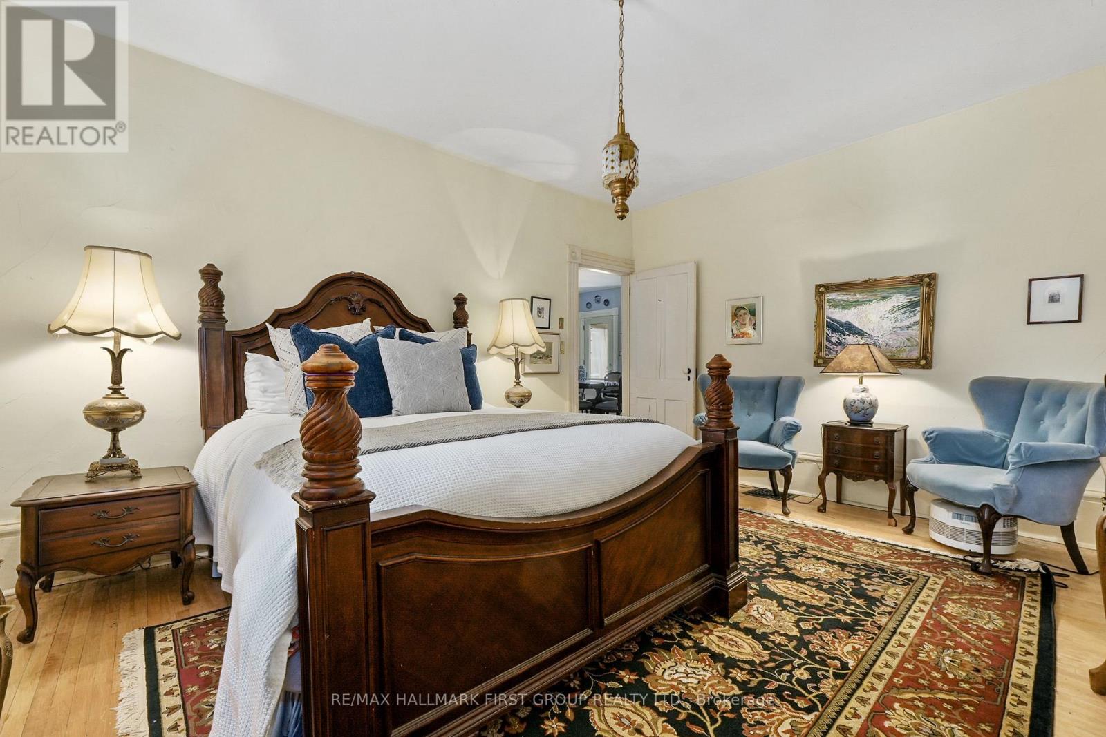 Full of character and timeless appeal, this brick home sits in the heart of Cramahe and blends period charm with thoughtful modern updates. An expansive front veranda sets the tone, leading into a spacious front foyer where classic craftsmanship is immediately on display. The inviting living room features extra-high baseboards, hardwood floors, and a fireplace, creating a warm and elegant space to relax or entertain. The dining room easily accommodates large gatherings and offers a walkout to the sunroom, an ideal spot to enjoy a quiet morning coffee or unwind at the end of the day. The kitchen delivers modern convenience with a tile backsplash, ample counter and cabinet space, an island with breakfast bar, and stainless steel appliances. The main level is completed by a guest bedroom, a bathroom, and the added convenience of main-floor laundry. Upstairs, the sun-soaked primary bedroom offers dual closets and access to a spacious bathroom, along with three additional well-sized bedrooms to suit family, guests, or home office needs. Outside, the sprawling property is surrounded by mature trees and features a covered back porch, perfect for outdoor enjoyment. Ideally located close to amenities with direct access to the 401, this home offers space, charm, and convenience. (id:64974)