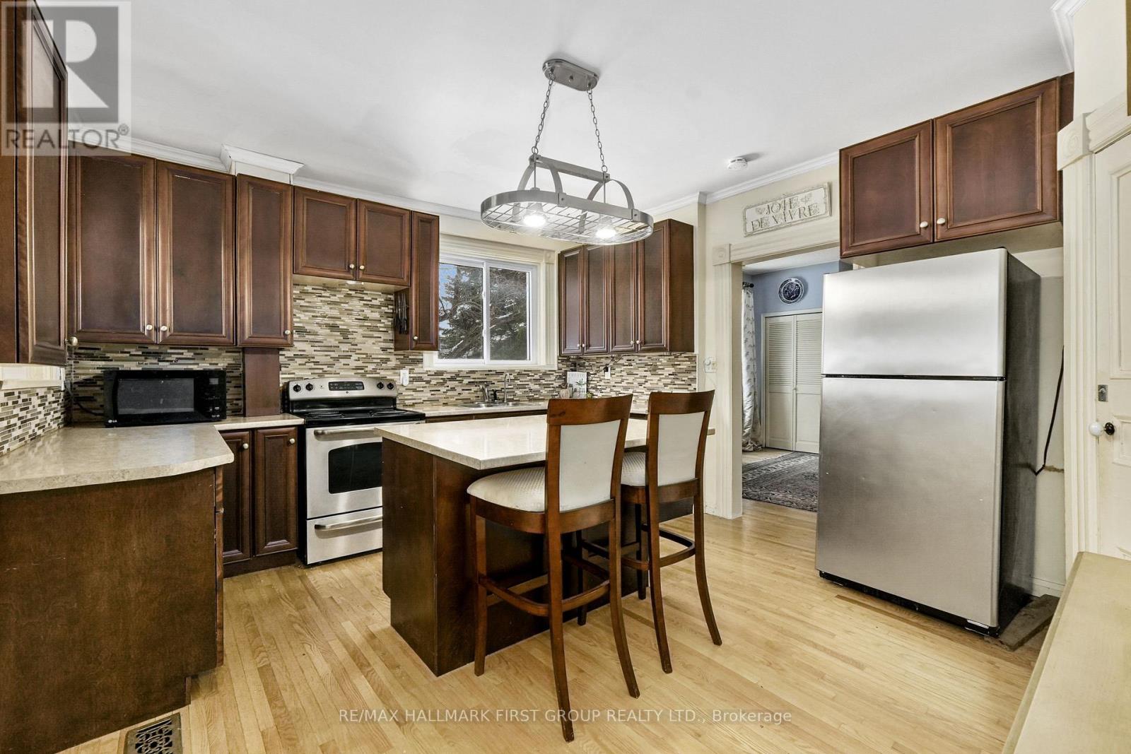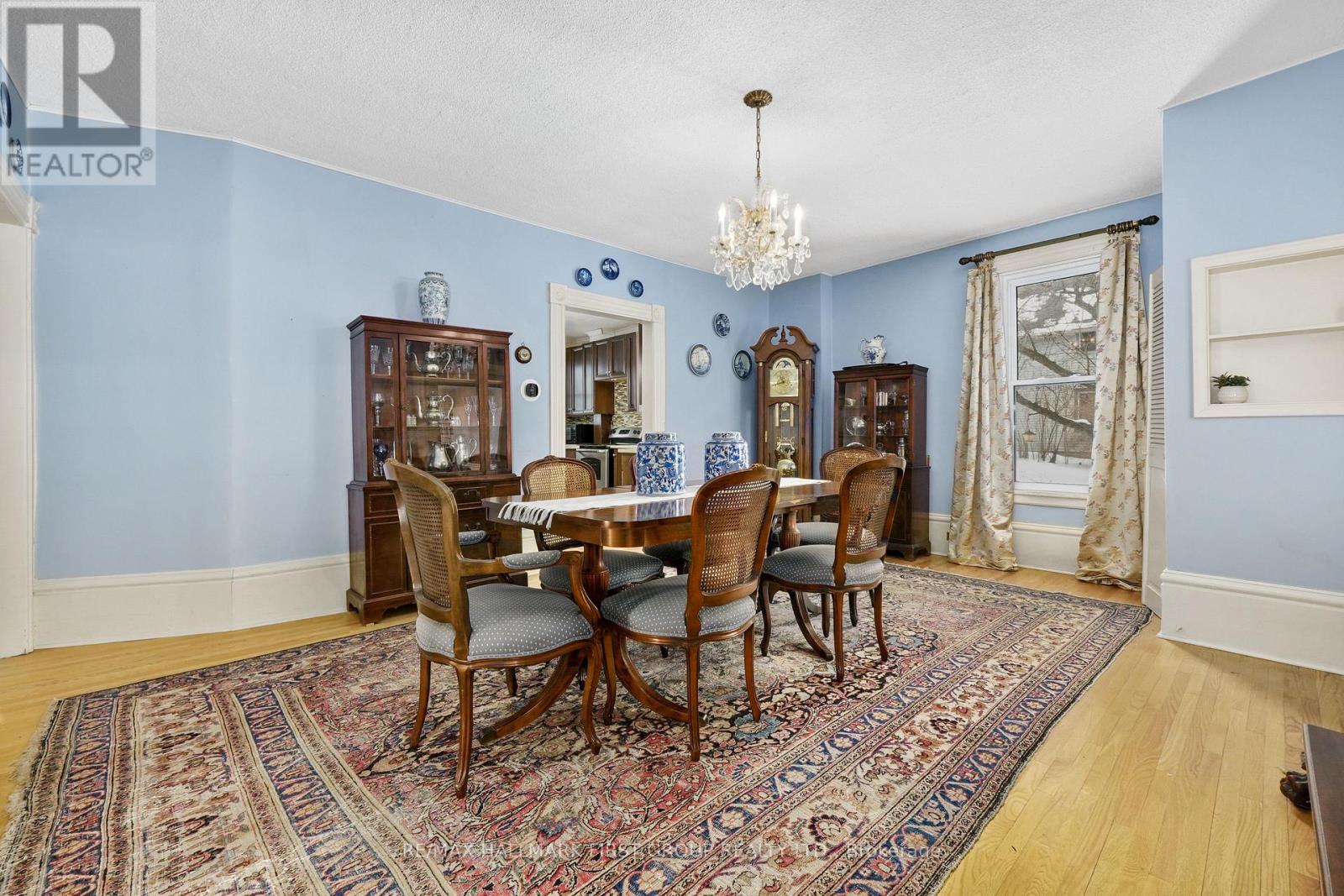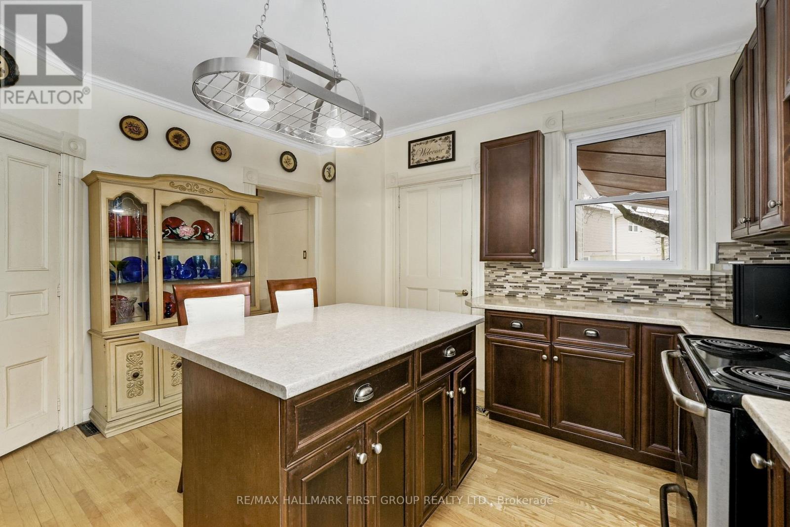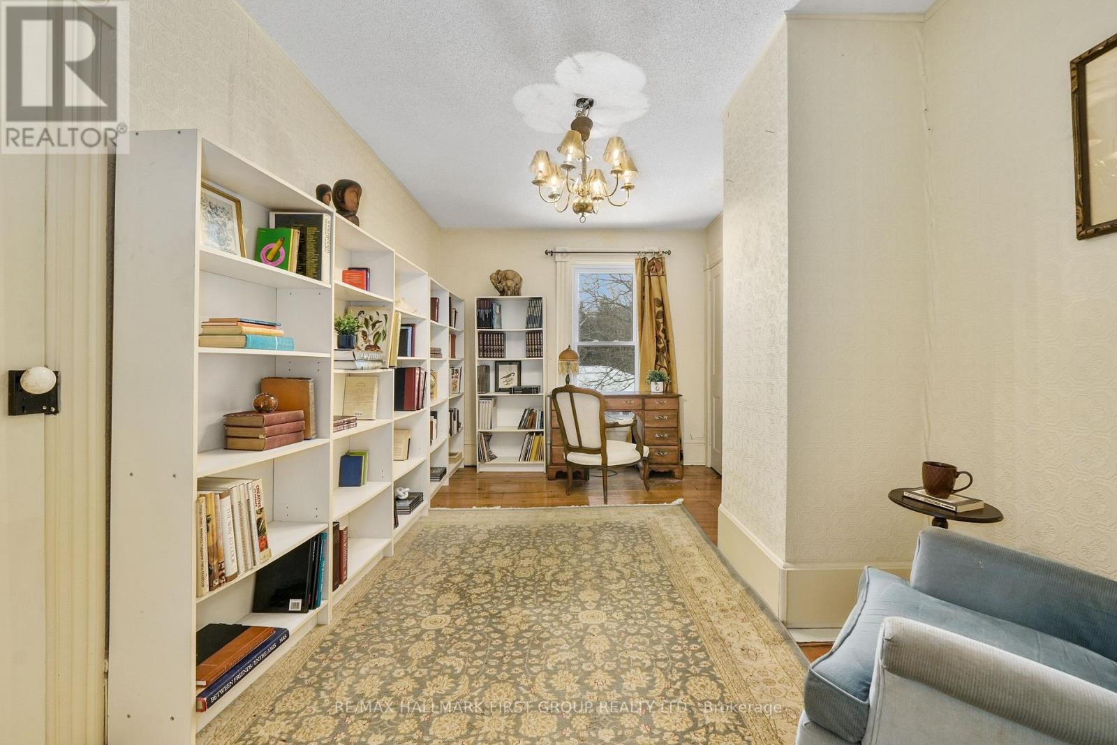 Full of character and timeless appeal, this brick home sits in the heart of Cramahe and blends period charm with thoughtful modern updates. An expansive front veranda sets the tone, leading into a spacious front foyer where classic craftsmanship is immediately on display. The inviting living room features extra-high baseboards, hardwood floors, and a fireplace, creating a warm and elegant space to relax or entertain. The dining room easily accommodates large gatherings and offers a walkout to the sunroom, an ideal spot to enjoy a quiet morning coffee or unwind at the end of the day. The kitchen delivers modern convenience with a tile backsplash, ample counter and cabinet space, an island with breakfast bar, and stainless steel appliances. The main level is completed by a guest bedroom, a bathroom, and the added convenience of main-floor laundry. Upstairs, the sun-soaked primary bedroom offers dual closets and access to a spacious bathroom, along with three additional well-sized bedrooms to suit family, guests, or home office needs. Outside, the sprawling property is surrounded by mature trees and features a covered back porch, perfect for outdoor enjoyment. Ideally located close to amenities with direct access to the 401, this home offers space, charm, and convenience. (id:64974)
