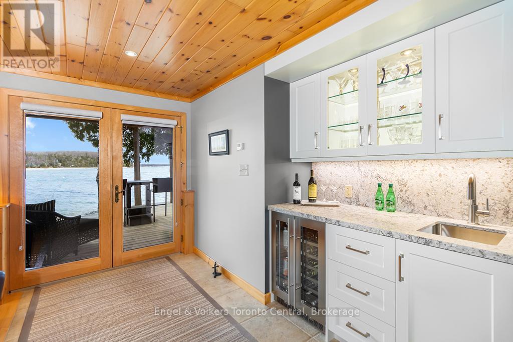 xquisite Waterfront Oasis on Lion's Head Bay - Discover an unparalleled opportunity to own a meticulously crafted waterfront bungalow, ideally situated on the pristine, protected shores of Georgian Bay. This custom-designed residence offers an idyllic escape, just steps from the vibrant marina and the charming village of Lion's Head. From the moment you arrive, the pride of ownership is immediately evident in this impeccably maintained home. Step inside to a thoughtfully laid out bungalow featuring a convenient walk-out lower level, gleaming hardwood flooring, and the inviting warmth of two fireplaces. The unique garage design provides exceptional functionality, boasting a dedicated lower-level workshop and ample storage, perfect for the discerning hobbyist or water sports enthusiast.This is not just a home; it's a lifestyle. Enjoy the ease of a friendly, gentle entrance to the water, perfect for swimming, paddleboarding, or simply dipping your toes in the clear bay. The incredible location on a quiet, no-through street with minimal traffic ensures tranquility and privacy, while offering direct access to the myriad activities the Bruce Peninsula is renowned for. Imagine weekends filled with hiking the Bruce Trail, exploring local caves, or simply unwinding by the water. Lion's Head offers a vibrant community spirit and endless recreational opportunities. Unlike any other lake house you've encountered, this property truly sets itself apart with its exceptional features and prime location. Welcome to the ultimate in lakefront living your private retreat awaits. (id:64974)