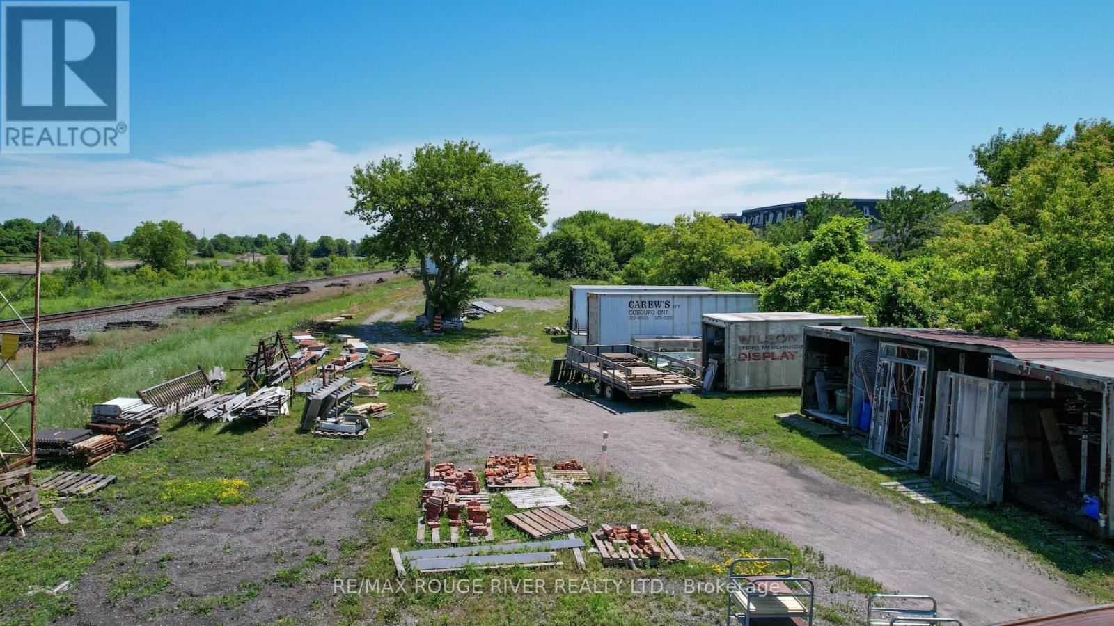 Exceptional opportunity to acquire a 3.5-acre light manufacturing property in the Town of Cobourg. Featuring 122 feet of frontage and an existing 4500 sf building formerly operating as a building supply outlet (continued use permitted). This property offers immediate functionality for contractors, trades, equipment operators, or yard-based businesses. Light manufacturing zoning allows for a wide range of permitted uses. Due to the parcel's configuration and setback parameters, the site is ideally suited for compound-style operations including outdoor storage, fleet staging, contractor yards, mini storage units, equipment sales, or hybrid yard + shop configurations. Backing onto the CN rail corridor, the property benefits from industrial separation and no rear residential neighbors. Large yard component provides significant operational flexibility. Opportunities of this scale in Cobourg's industrial market are increasingly rare. Ideal for owner-operators seeking long-term cost control and asset ownership versus rising lease rates. (id:64974)