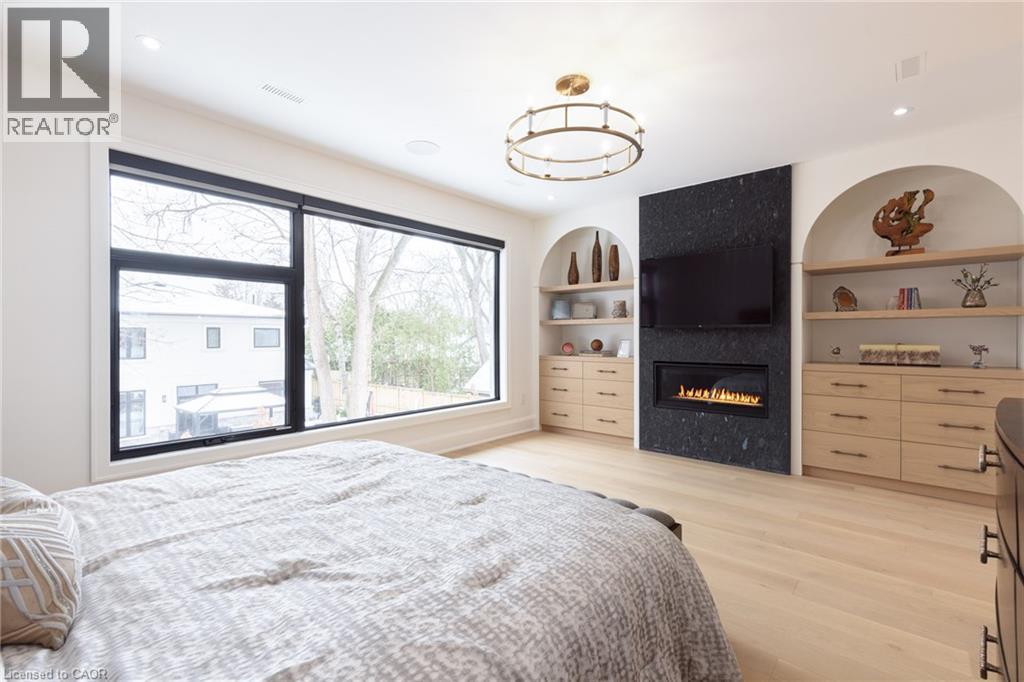 Step into this newly constructed custom residence which showcases bespoke built-in cabinetry fine craftsmanship. Stately nine-foot ceilings on the first and second floors from the wood flooring to the large scale windows you will sense refinement. Cozy in floor heating throughout the basement and all stone floors on the main and second floor includes a decadent heated garage floor, meaning no need to bundle up to access the garage making it a functional space of the home. The property is consistent with creature comforts featuring dedicated upper and lower hvac systems, circulating instant hot water throughout, and three gas fireplaces. Included is a comprehensive security system with cameras. The exterior façade combines elegant stone elements with stunning composite wood features, oversized front landing, 4 season inviting back deck with it’s own gas fireplace. Landscaping includes lighting with the addition of integrated driveway lighting to guide your way home. Luxury certified. (id:64974)