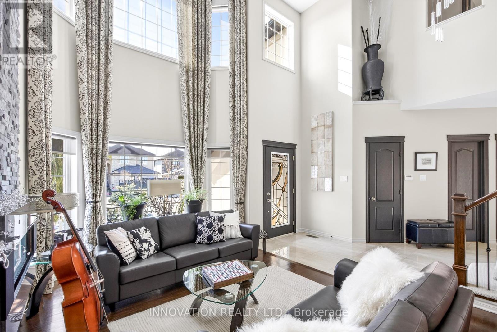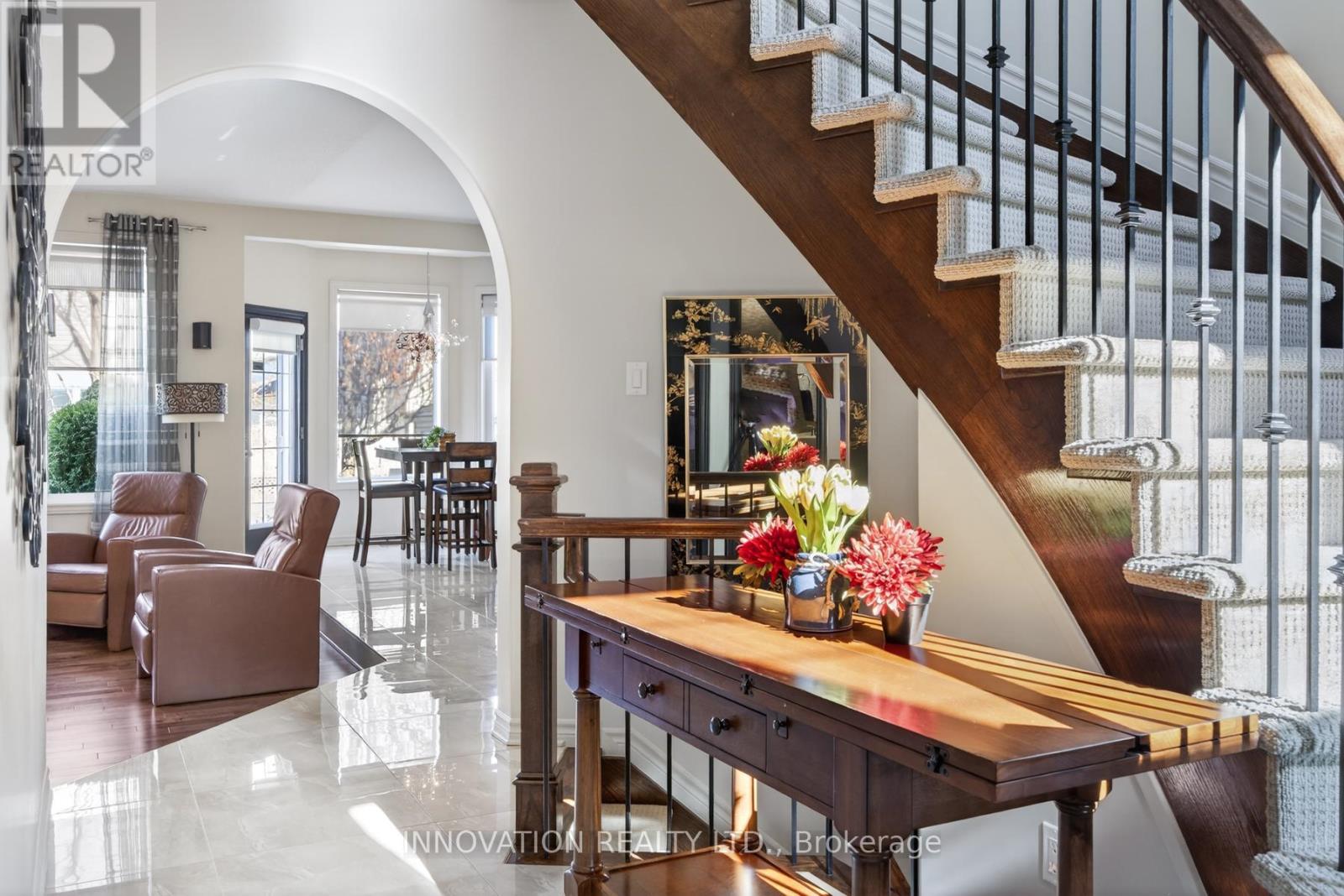 Experience elevated living at 540 Pine Vista Dr, a professionally designed Cardel Balmoral model offering exceptional craftsmanship and high-end finishes throughout, perfectly suited for the discerning executive buyer. Situated in a quiet, family-friendly and highly desirable neighbourhood, this impressive 4-bedroom, 3-bathroom home combines timeless elegance with modern functionality, all within close proximity to parks, schools, shopping, and convenient public transit. A dramatic 25-foot vaulted ceiling in the grand foyer and living room creates a breathtaking first impression, complemented by a tastefully decorated electric fireplace with accent wall and an awe-inspiring curved staircase. The main floor also features a private professional office, ideal for working from home, while hardwood and marble floors, along with custom blinds and window coverings, in addition to the various arched doorways, elevate the home's refined aesthetic and Mediterranean feel. At the heart of the home, a stunning chef's kitchen showcases granite countertops, a spacious pantry, and dual refrigerators, offering both grand appeal and everyday practicality. The expansive primary suite is a true retreat, complete with a private bay window sitting area, a luxurious 5-piece ensuite with granite counters, jet soaker tub, and a generous walk-in closet. Additional bedrooms are well-appointed, while the main bathroom also features a jet soaker tub for added comfort. Step outside to a professionally landscaped, private backyard oasis with mature trees and a sunken gazebo-perfect for relaxing or entertaining. This remarkable residence seamlessly blends sophistication, comfort, and convenience in one exceptional offering. (id:64974)