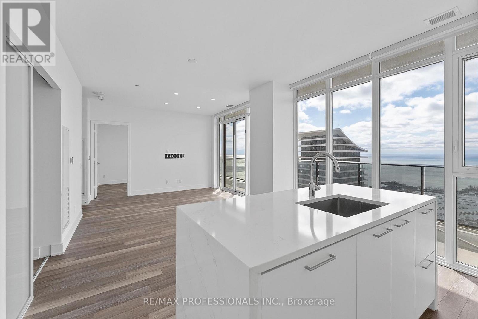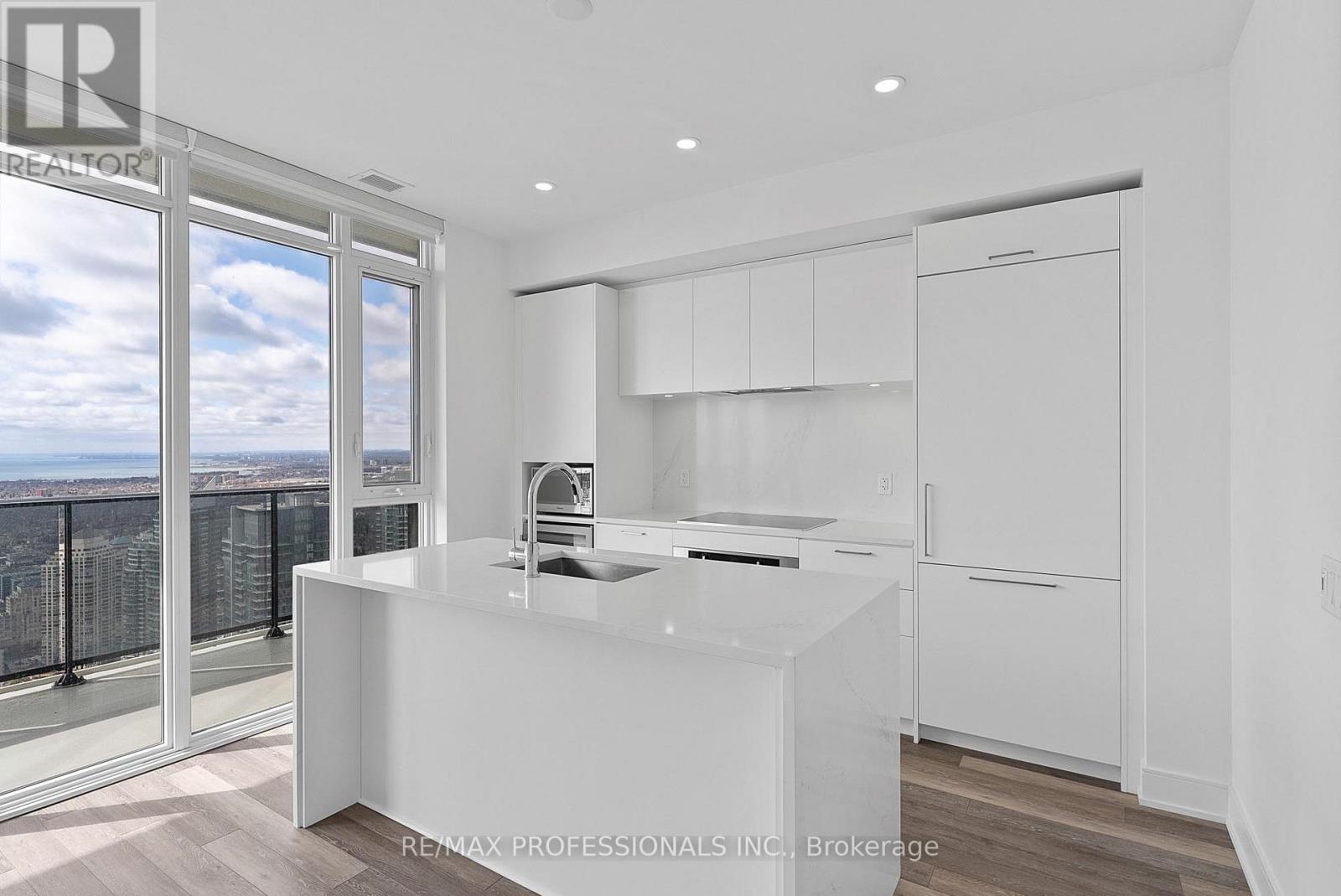Spectacular 54th floor 2 bedroom, 2 bathroom suite with breathtaking lake and skyline views at Vita on the Lake, 70 Annie Craig Drive #5406 in the heart of Humber Bay Shores. Perched high above the waterfront, this beautifully finished suite offers ~1,049 sq ft of combined interior and exterior living space with breathtaking unobstructed views over Lake Ontario and the Toronto skyline stretching across the waterfront, framed by expansive floor-to-ceiling windows that fill the space with natural light. The suite showcases an open concept living and dining area with walkout to a south-facing balcony, a stylish kitchen with stainless steel and cabinet front appliances including a built-in wine cooler, quartz countertops and matching backsplash and a large island perfect for cooking and entertaining, a spacious primary bedroom with a walk-in closet, private ensuite and walkout to the balcony, a second bedroom ideal for guests or a home office, two luxurious full bathrooms, convenient ensuite laundry, wide-plank laminate flooring, pot lights, motorized blinds and premium finishes. Rare tandem parking and a storage locker included. Located in Vita on the Lake, a recently completed luxury tower by Mattamy Homes, residents enjoy outstanding amenities including 24-hour concierge, outdoor pool with sundeck and BBQ terrace, fitness centre with cardio, weights, yoga studio and sauna, party room with bar and private dining room, billiard room, guest suites, underground car wash, pet wash station and ample visitor parking. Incredible Humber Bay Shores location just steps to the Martin Goodman Trail, waterfront parks and beaches, a vibrant dining and patio scene, Metro, Shoppers Drug Mart, LCBO and major banks. TTC at your door with quick access to downtown and the Gardiner Expressway, with a future GO station planned nearby. Exceptional waterfront living offering breathtaking views, refined finishes and resort-style amenities in Etobicoke's sought-after waterfront community. (id:64974)