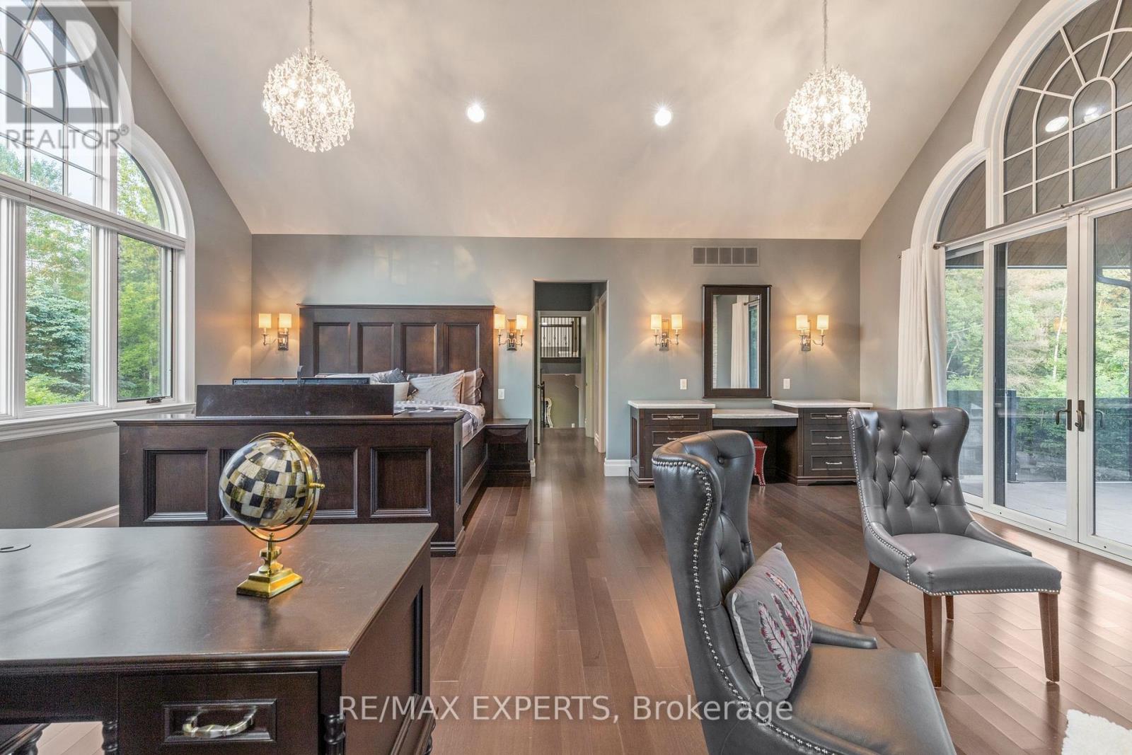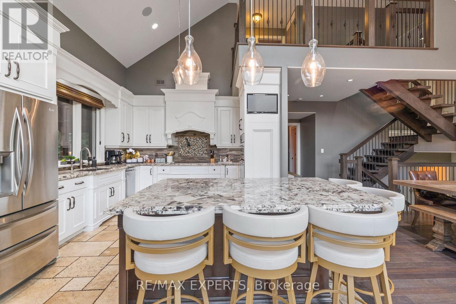 Immerse Yourself In Luxury Living With This Impeccably Designed Residence, Featuring Crestron Home Automation For Effortless Control. This 5- Bedroom, 6-Bathroom Home Boasts A Chef-Inspired Kitchen With Top-Of-The-Line Finishes, Accompanied By A Spacious Muskoka Room And A Built-In Barbecue For Year-Round Entertaining. The Grandeur Continues With A Lower Level Media Room Adorned With Travertine Tile Heated Floors, Creating The Perfect Space For Relaxation And Movie Nights. Revel In The Soaring Vaulted Ceilings That Add To The Inviting Atmosphere Throughout The Home. Step Outside To Discover A Backyard Oasis, Complete With A huge Heated In-Ground salt waterPool, A Fireplace, And A Cabana/Pool Bar, Ideal For Hosting Gatherings With Friends & Family. Additional Features Include An Attached Garage and 1000 Square Feet Of Space. Home Automation,Landscape lighting System, Pool Equipment, Central Vac With Attachments, All Window Coverings, Security Cameras, And hot tub all tv's and remotes. located very close to Bear Creek Golf club and Tangle Creek Golf club. (id:64974)