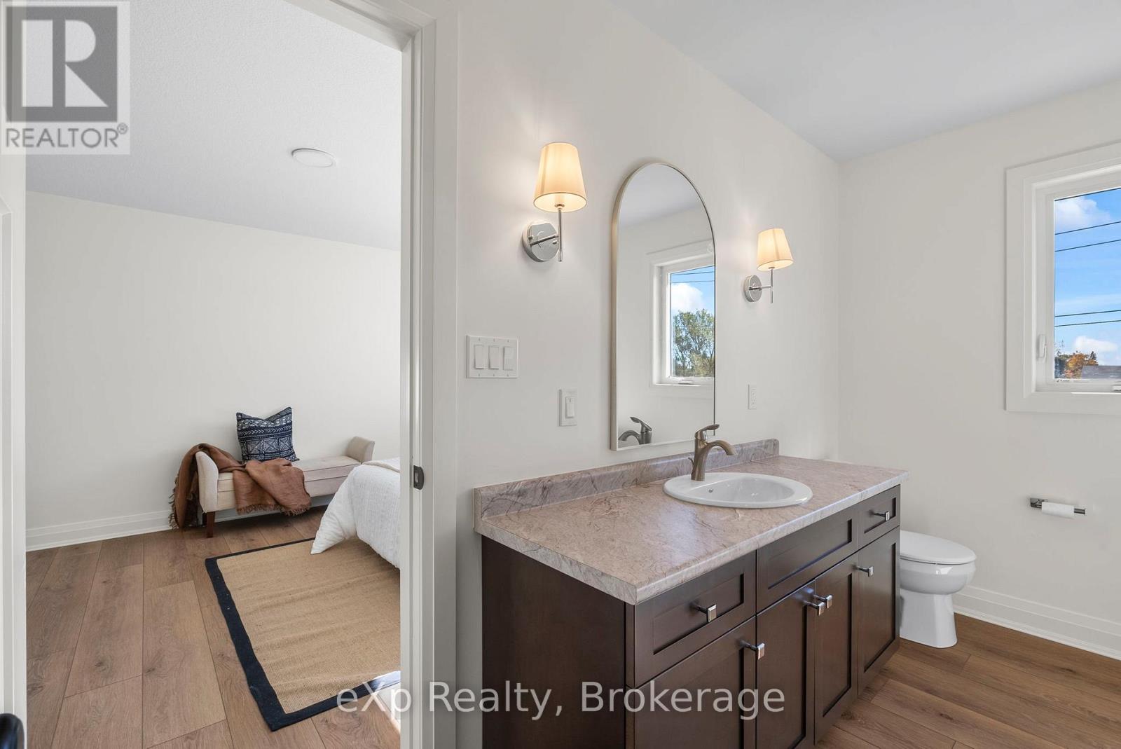 Baseball season is just around the corner, and here, the games are practically in your backyard! Tucked away on a quiet cul-de-sac in Mount Forest, this Marlanna Homes semi-detached new build offers a level of privacy that's hard to find. Connected only by the garage, which is finished in clean Trusscore, you'll enjoy convenient access to both the home and backyard while still feeling nicely set apart. One of the standout features of this property is the view from the back deck, perfect for catching local ball games and soaking in those evening sunsets! Inside, the main floor is open, bright, and thoughtfully designed. A stunning stone fireplace anchors the living room, adding warmth and character. The kitchen is a true highlight, custom-built by Barzotti with quartz countertops, a functional island for extra seating, with all appliances included. Luxury vinyl plank flooring runs seamlessly throughout, creating a cohesive and modern feel. Upstairs is ideal for family living, with three bedrooms and a dedicated laundry room, which means no more hauling baskets up and down stairs! The primary suite offers a peaceful retreat, complete with a walk-in closet and a deep soaker tub. Downstairs, the fully finished basement adds even more versatile living space-perfect for a rec room, home gym, or both, and includes an additional full bathroom. With immediate possession available, Tarion warranty coverage, and a 50-year shingle warranty, this home is truly move-in ready. Modern comfort, quiet surroundings, and no waiting, just unpack and enjoy! (id:64974)
