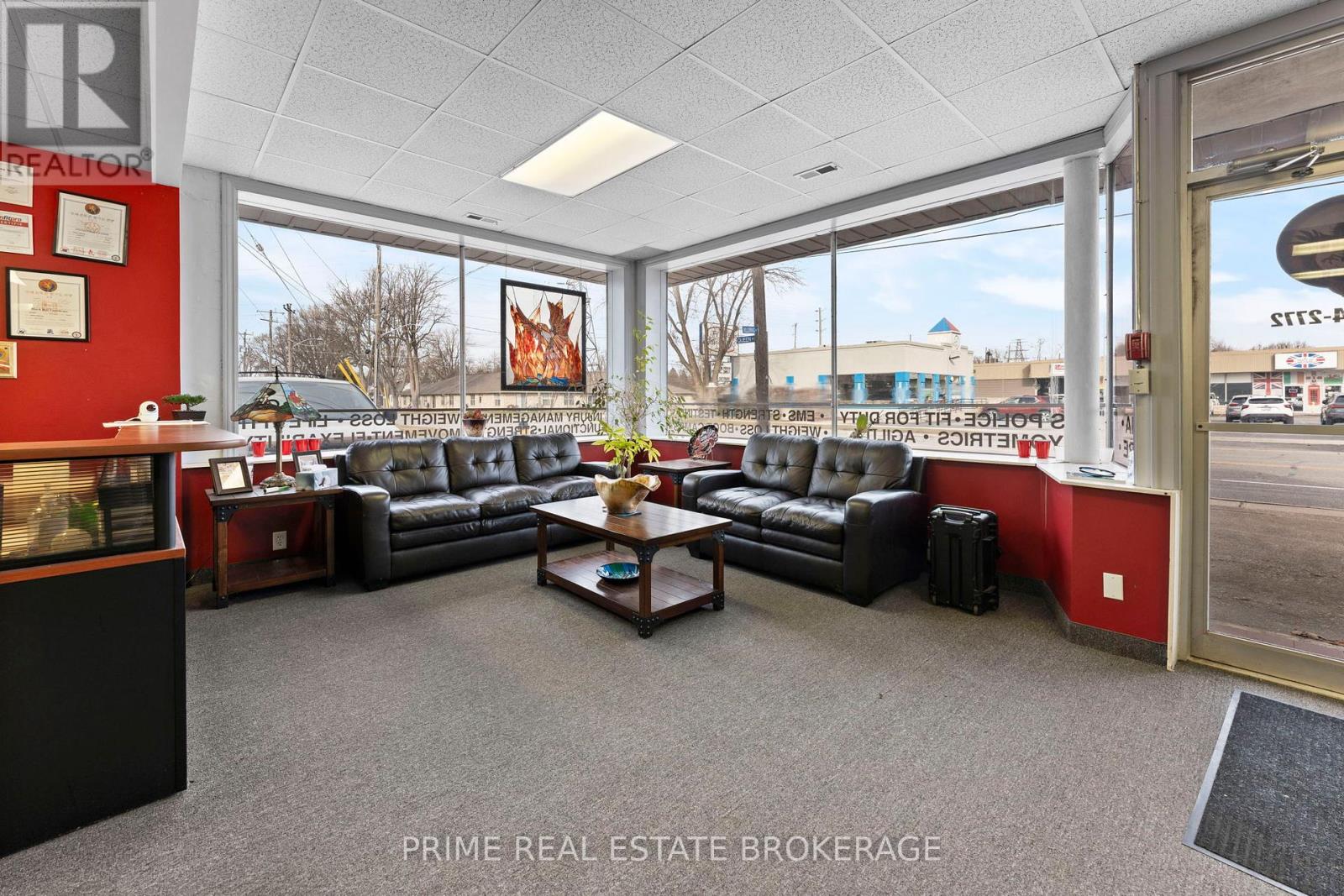 Prime Mixed-Use Investment Opportunity! Exceptional commercial/residential property in the heart of Chatham on high-traffic Queen Street. The spacious main floor boasts two separate street-facing entrances, offering flexibility to operate as one large unit or subdivide into two commercial spaces. The upper level consists of six fully leased residential apartments (4 1-bedroom, 2 2-bedroom), providing stable rental income. Additional highlights include: Full basement spanning the building's footprint with abundant storage potential. Detached single-car garage plus 7 surface parking spaces. Shared coin-operated laundry generating extra income. High visibility, strong cash flow, and multiple revenue streams make this an investment not to be missed! (id:64974)