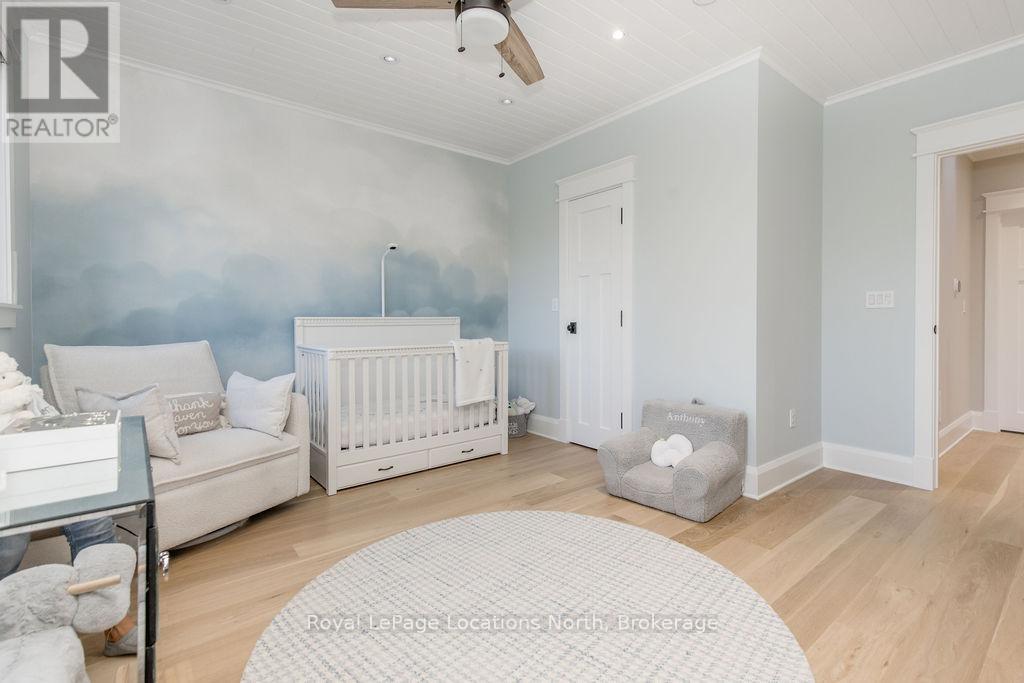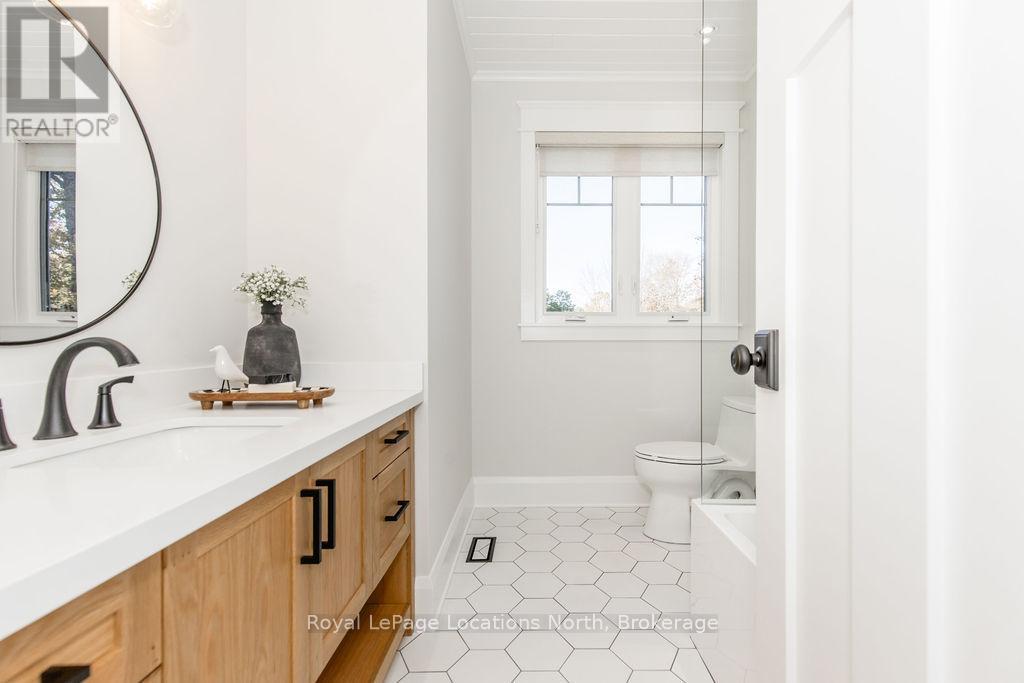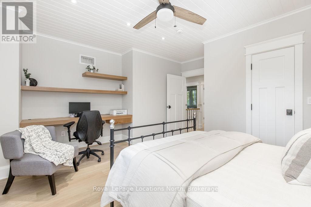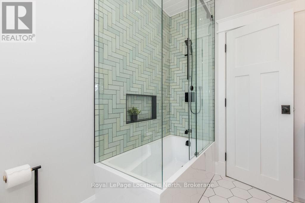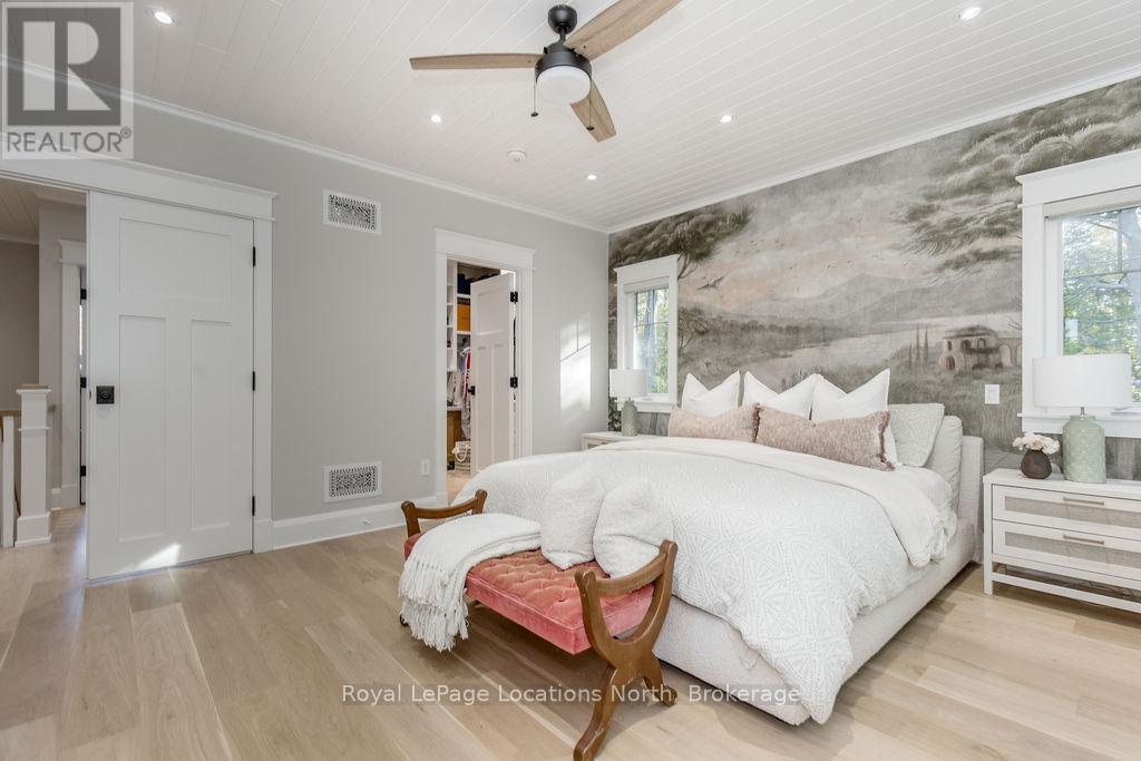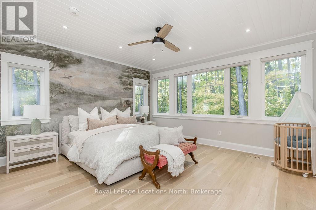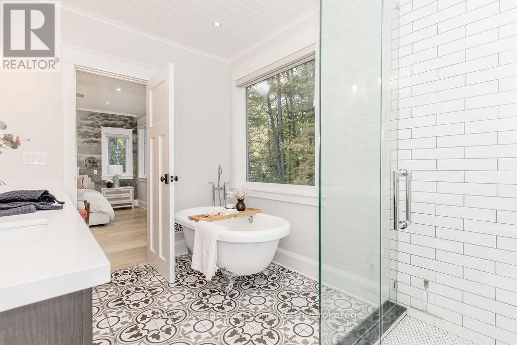 DREAM HOME WITH HEATED DRIVEWAY & WALKWAYS - Welcome to this stunning, custom-built 3 bed, 3 bath home showcasing exceptional craftsmanship, built in 2023, perfectly positioned backing onto protected land & directly across from the river in beautiful Wasaga Beach. Designed w/ a mix of modern luxury & timeless character, this home captures a century-home feel with its large mouldings, custom doors & wood beams w/ a custom-built stone fireplace accenting the main floor. Inside, the bright open-concept layout features wall-to-wall windows overlooking the forest, flooding the space w/ natural light. The custom kitchen is a true showpiece, showcasing a large quartz island, blue & white cabinetry, a mini wine fridge, & a full quartz backsplash. It's finished w/ a high-end signature line of Wi-Fi-enabled appliances, combining elegance & smart convenience for the modern homeowner. The dining area sits beside large windows, while the living room offers aged wood ceiling beams and tongue-and-groove ceilings that bring warmth & texture throughout along w/ the wide-plank white oak hardwood. Upstairs the hardwood stairs, lead to spacious bedrooms, each w/ custom walk-in closets, built-in desks, shiplap ceilings, & designer touches like wallpaper accents & skylights. The primary suite feels like a retreat, featuring a cozy fireplace, luxurious ensuite w/ floating tub, double quartz sinks, black cabinetry, & a walk-in closet w/ custom cabinetry & make up desk perfect for getting ready for the day.Luxury features include- Inside entry to garage with epoxy flooring + custom storage, hydronic in-floor heating, heated driveway & walkways while outdoors, enjoy the built-in BBQ, rubberized surfacing on patios w/ hot tub hook up, sprinkler system, & tranquil forest backdrop w/ cedar trees surround the patio for privacy.Interior features include motorized blinds, smart home system, security cameras, spray-foam insulation, high-efficiency boiler system, & a hard-wired generator. (id:64974)