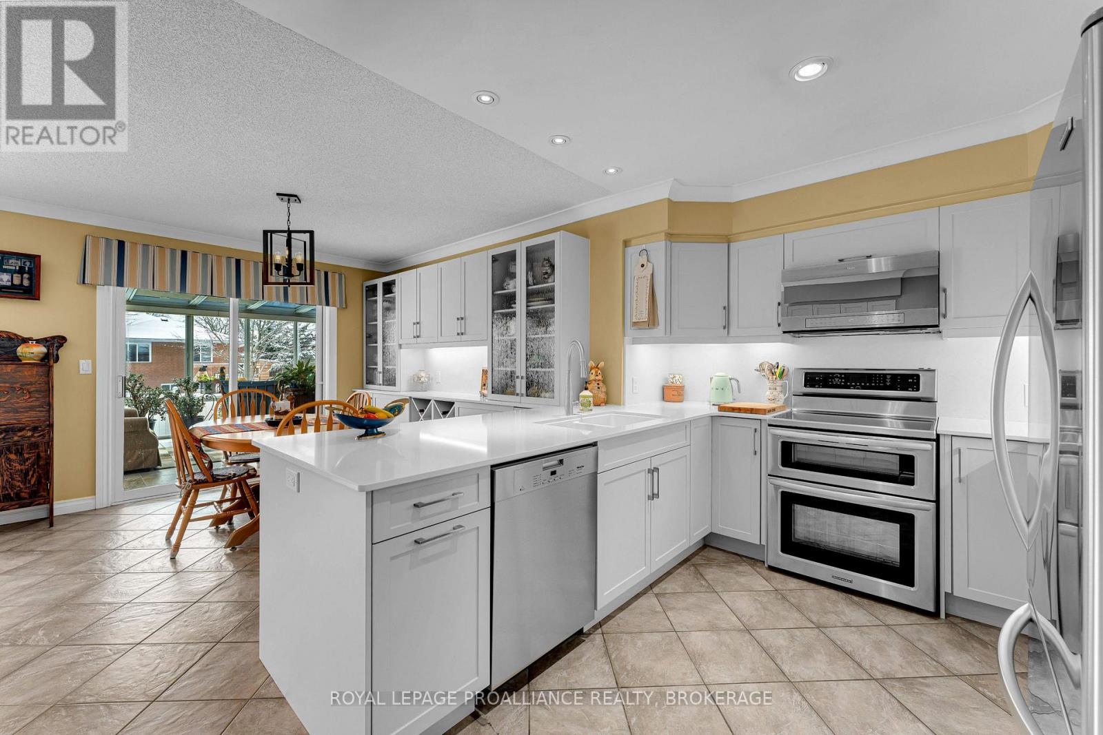 All brick custom bungalow on a private corner lot in desirable Westpark. Extensively renovated over the years with updates to plumbing, kitchen, flooring and all bathrooms, plus major mechanical improvements including furnace, roof, HRV, AC and windows. The main floor offers three bedrooms and bright living spaces, along with a beautiful four-season room off the kitchen. The expansive lower level has been fully renovated, providing exceptional additional living space including a recreation room with a corner gas fireplace, a fourth bedroom, full bathroom and an additional flex space room. Ideally located within walking distance to Lemoines Point, Rotary Park, shopping, and situated in a sought-after school district. Move-in ready in one of Kingston's most desirable west end neighbourhoods. (id:64974)